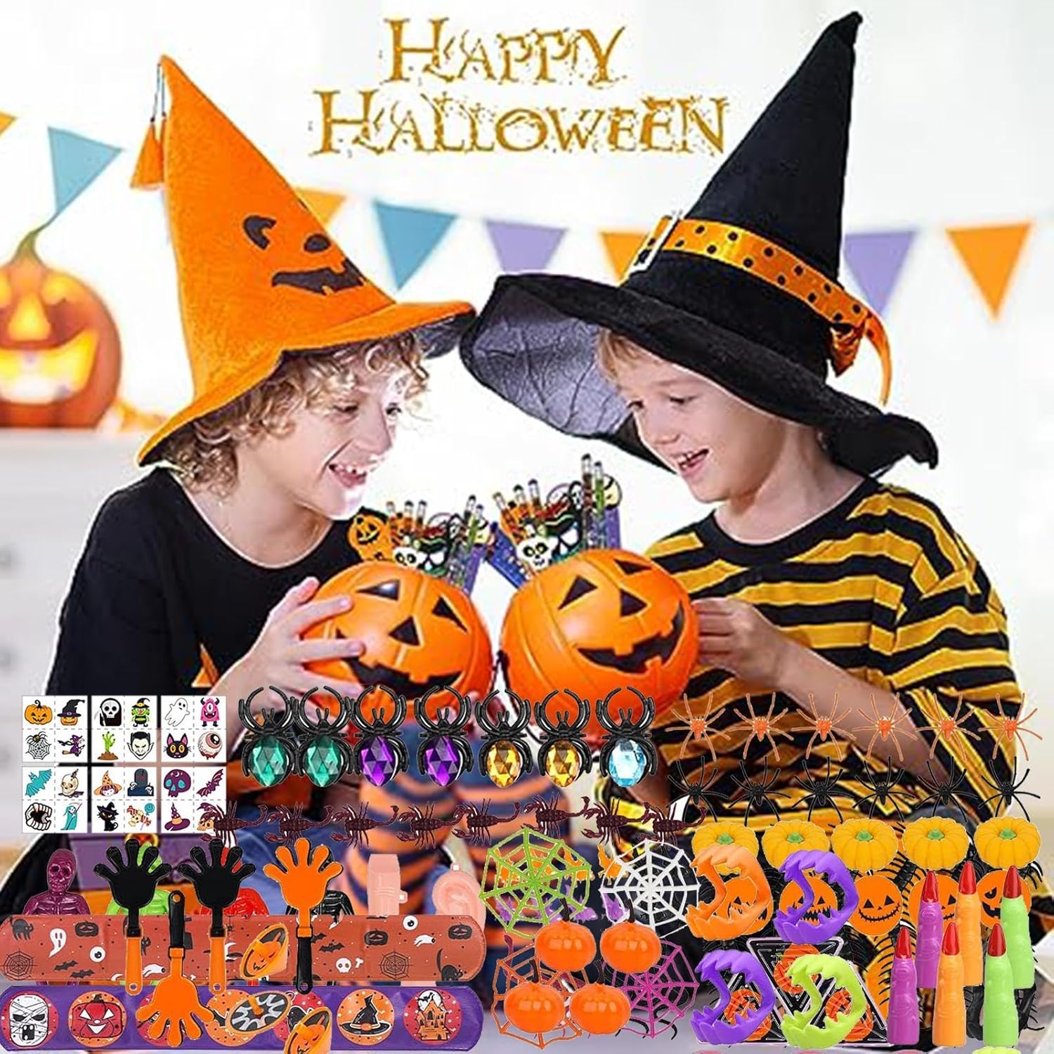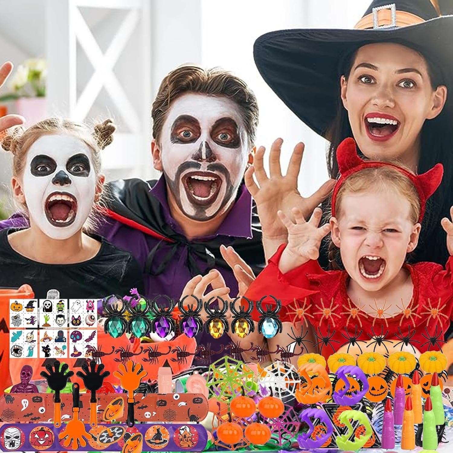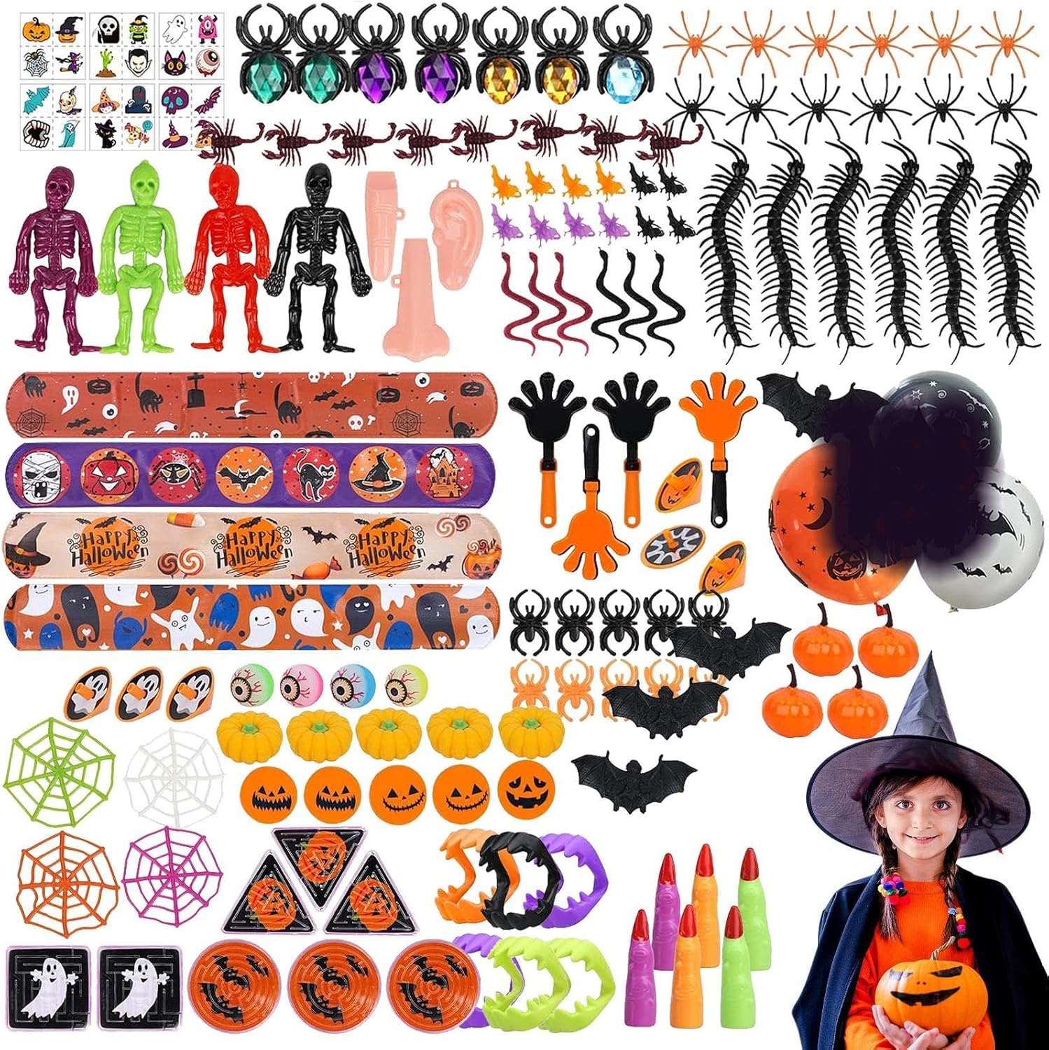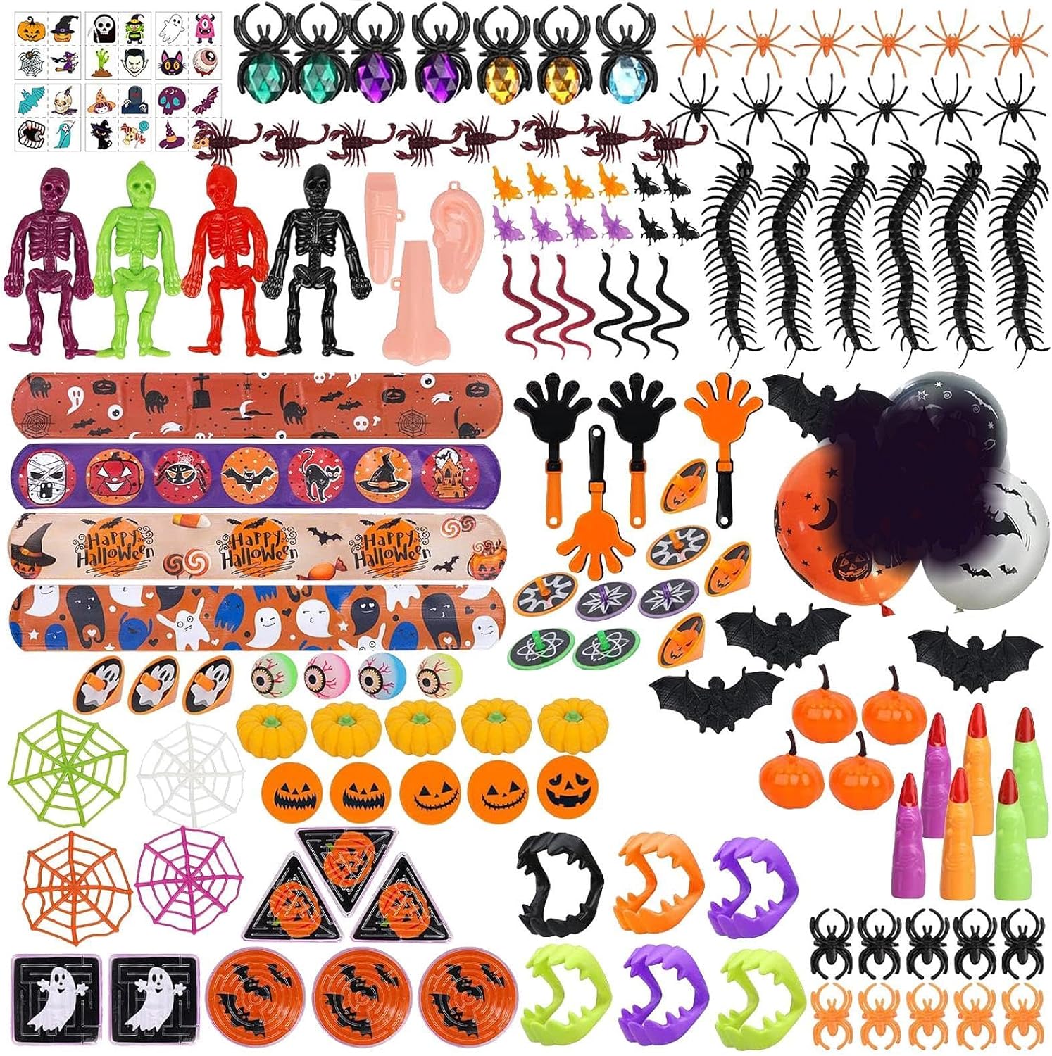 Vari tipi: rendi la tua festa di Halloween indimenticabile con i nostri regali per feste di Halloween da 166 pezzi. Include vari animali di peluche e popolari giocattoli di Halloween, perfetti per realizzare sacchetti di caramelle per i bambini che chiedono caramelle. L'assortimento ricco e vario attira efficacemente l'attenzione dei bambini. Bomboniere di Halloween MULTIUSO: diventa creativo con queste forniture multifunzionali per feste. Questi nuovi giocattoli che si illuminano al buio sono perfetti da inserire nei sacchetti di caramelle o nelle pignatte e aggiungeranno sicuramente un'atmosfera spettrale. Premi ideali per Halloween: scegli il nostro set di giocattoli come premio per le borse di Halloween per stupire gli ospiti. Usare i giocattoli invece delle caramelle è una buona scelta. Ottieni pacchetti premio a tema horror per risolvere tutti i problemi. Colleziona set di giocattoli popolari e risparmia tempo. Migliora l'esperienza di Halloween: migliora la tua festa di Halloween con spettrali regali in silicone. Questi divertenti dolcetti presentano temi di Halloween stampati su materiale siliconico di alta qualità, sicuro e inodore. Sono resistenti all'usura e allo sbiadimento e sono perfetti per qualsiasi premio di classe o giocattolo del tesoro. Sorpresa spettrale: preparati a diventare spettrale con le nostre bomboniere per Halloween. Questi vari articoli sono fantastici regali "dolcetto o scherzetto" e includono giocattoli spettrali, adesivi e altro ancora. Perfetto per bambini, adolescenti e adulti e ideale come riempitivo per il calendario dell'avvento di Halloween.