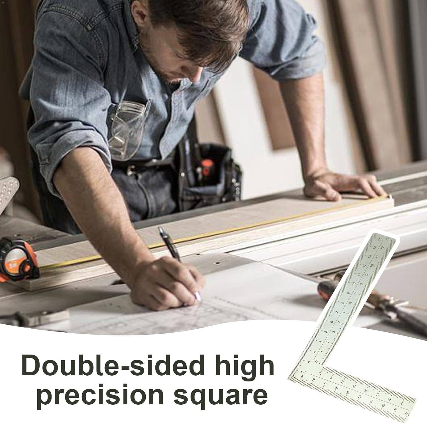 per cornici affidabile: questo righello interamente in metallo vanta un design robusto che resiste a tagli/graffi, aiutandoti a misurare qualsiasi materiale con facilità. Perfetto per le attività di incorniciatura e taglio, garantisce sempre risultati accurati. Un must per la falegnameria: perfetto per misurazioni, layout e modelli, questo quadrato per cornici è un must per qualsiasi progetto di falegnameria. Ideale per misurazioni di planarità, lavori di copertura, design in pelle e come riga. Usalo per lavorare sulle scale e ottieni sempre risultati accurati. Maggiore longevità: realizzata in acciaio di ottima qualità, questa per cornici garantisce prestazioni di lunga durata. Il suo processo di incisione su due lati garantisce che la scala non si usuri, offrendo una precisione affidabile nel . Artigianato di precisione: realizzato da macchine di precisione, il nostro quadrato per cornici fornisce misurazioni precise al millimetro. È dotato di una scala chiara e di facile lettura, che consente una precisione ottimale nella misurazione di angoli e lunghezze. Durevole e affidabile: questo quadrato per incorniciatura è realizzato in lamiera di acciaio inossidabile resistente e robusta, ispessita e forgiata per garantire che non sia facile da piegare e deformare. Ha anche un rivestimento antiruggine che lo protegge dall'usura.