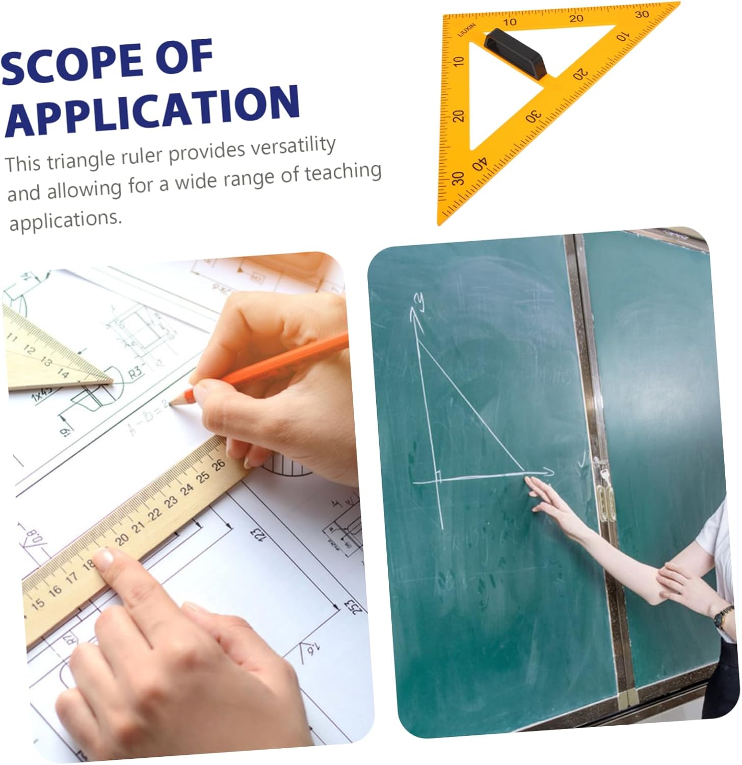 Manico staccabile per un comodo stoccaggio e trasporto: questo righello triangolare è dotato di un manico staccabile, che consente il trasporto, materiale didattico, strumenti didattici Righello didattico: realizzato in materiale plastico resistente, questo righello triangolare è costruito per durare, righello triangolare per l'aula Piastra triangolare didattica: realizzata in materiale plastico resistente, questa tavola e la maniglia staccabile sono progettate per un uso duraturo, righello triangolare da disegno Strumenti di disegno per lavagna: progettati specificamente per l'insegnamento di concetti, offrono versatilità nelle lezioni, strumenti didattici per gli insegnanti Righelli di misurazione: sono indispensabili per gli insegnanti, poiché forniscono un modo pratico ed efficiente per insegnare concetti geometrici e strumenti di disegno
