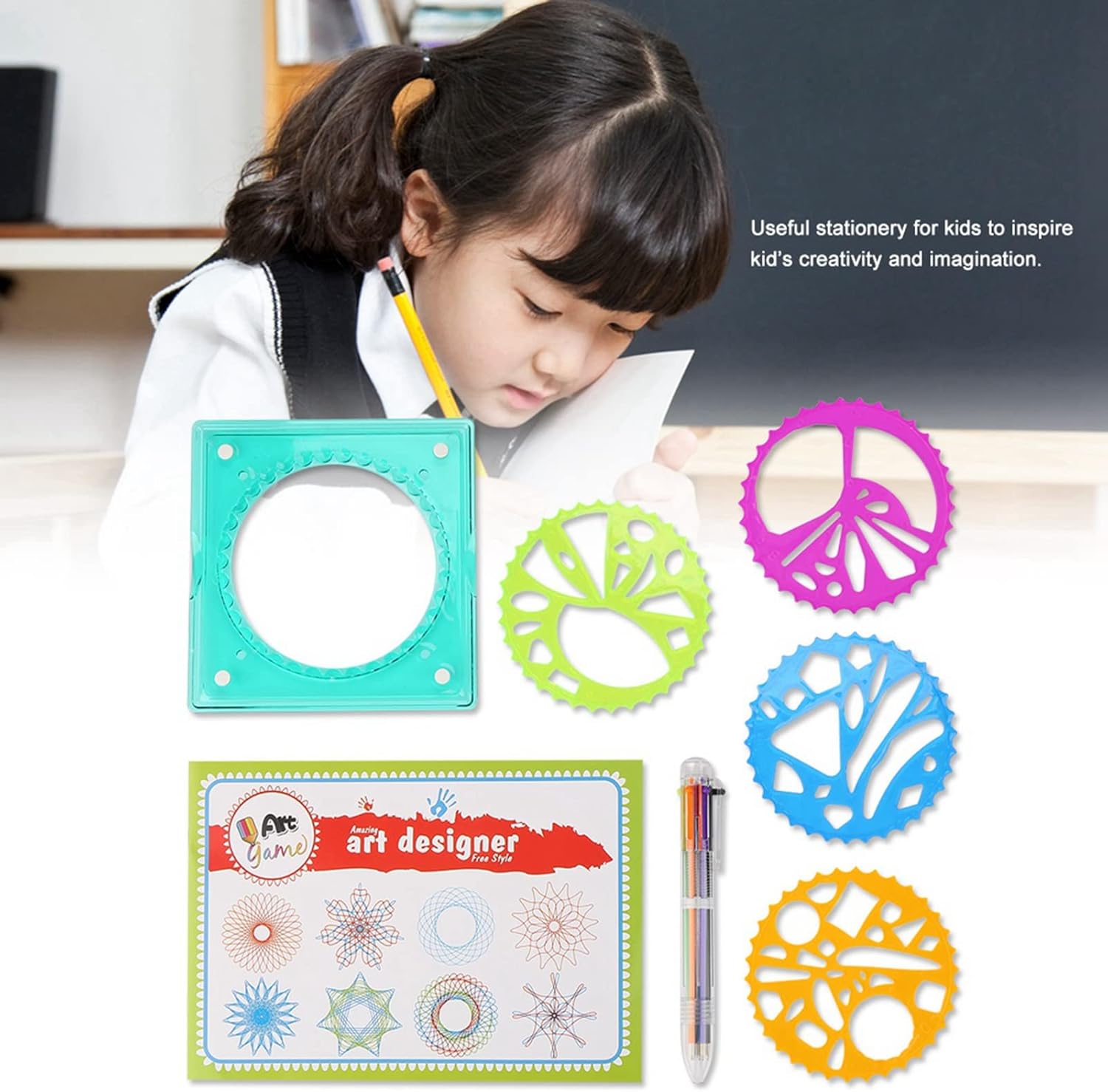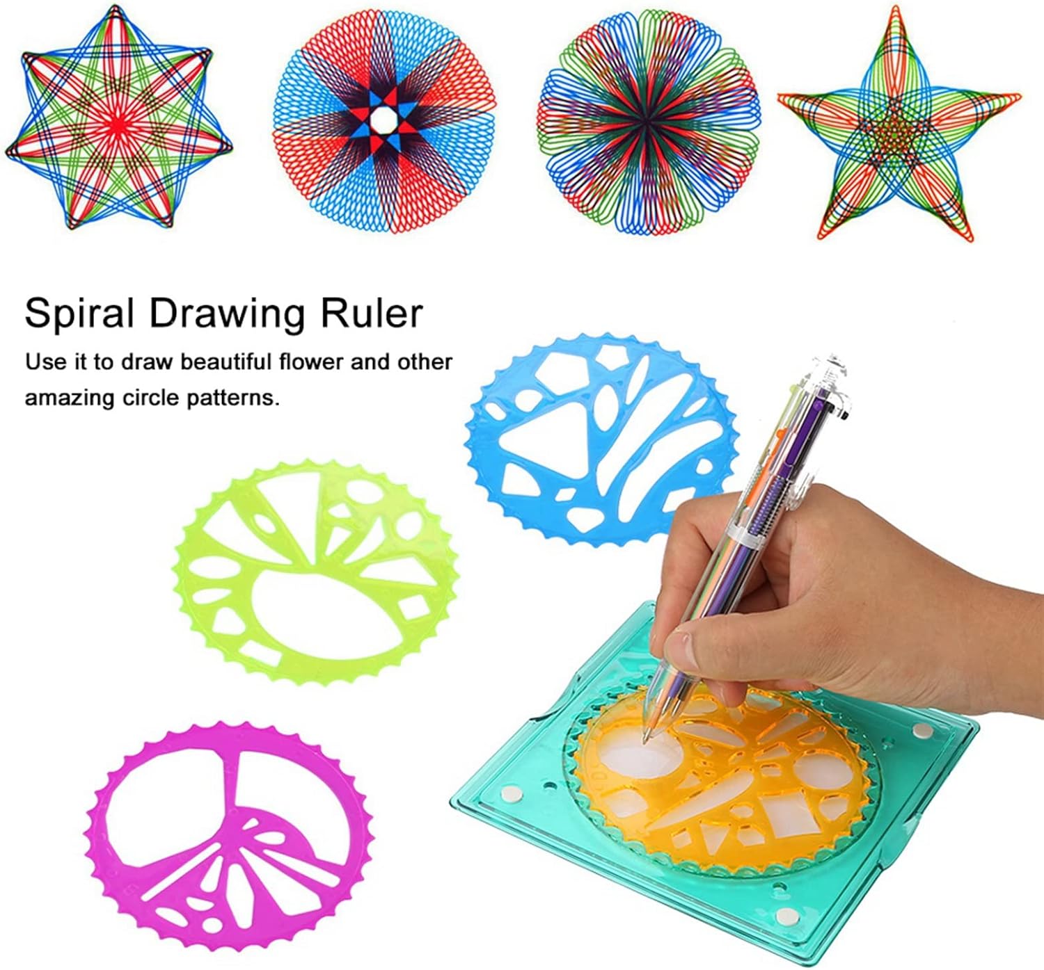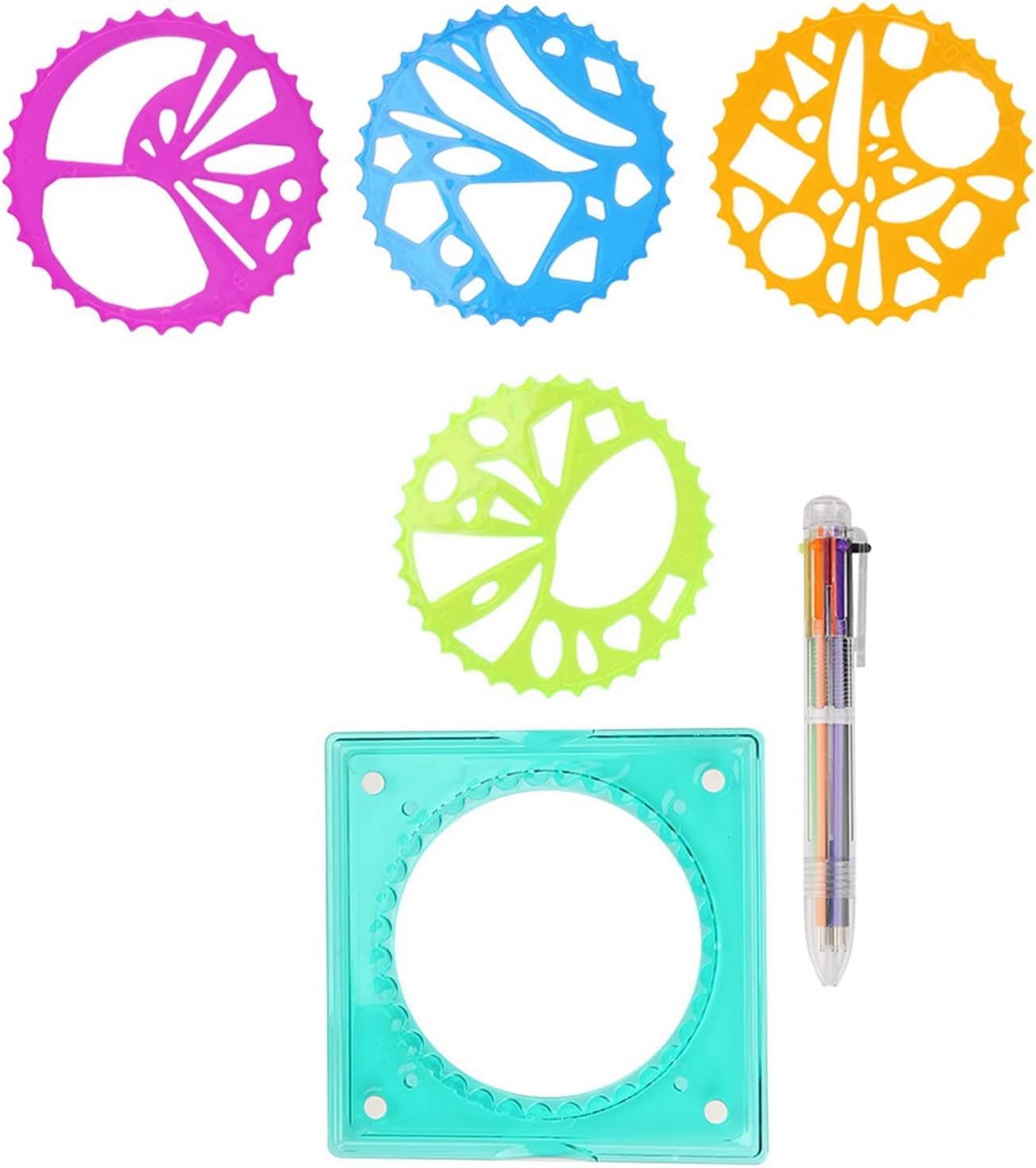 [Penna colorata inclusa] Ogni set viene fornito con una penna colorata che consente ai bambini di aggiungere colori vivaci ai loro modelli. la penna migliora l'esperienza di disegno complessiva, rendendola più coinvolgente e divertente per i bambini. [Ispira la creatività] Questa fornitura di cancelleria è un must per i bambini che amano l'arte. incoraggia la creatività e l'immaginazione, rendendolo strumento ideale per consentire ai bambini di esplorare i propri talenti e abilità artistiche. [Crea bellissimi motivi] Usa questo righello per disegnare intricati motivi di fiori e cerchi senza sforzo. ispira la creatività e l'immaginazione nei bambini, permettendo loro di esprimersi attraverso l'arte. [Materiale plastico] Il righello da disegno è realizzato in plastica di alta qualità, garantendo resistenza e uso duraturo. è robusto e non facilmente infrangibile, offrendo prestazioni per i bambini. [Leggero e compatto] Questo righello geometrico è leggero, compatto e facile da maneggiare, rendendo conveniente per i bambini creare bellissimi motivi con facilità. è progettato per essere utilizzato comodamente dalle mani dei più piccoli.