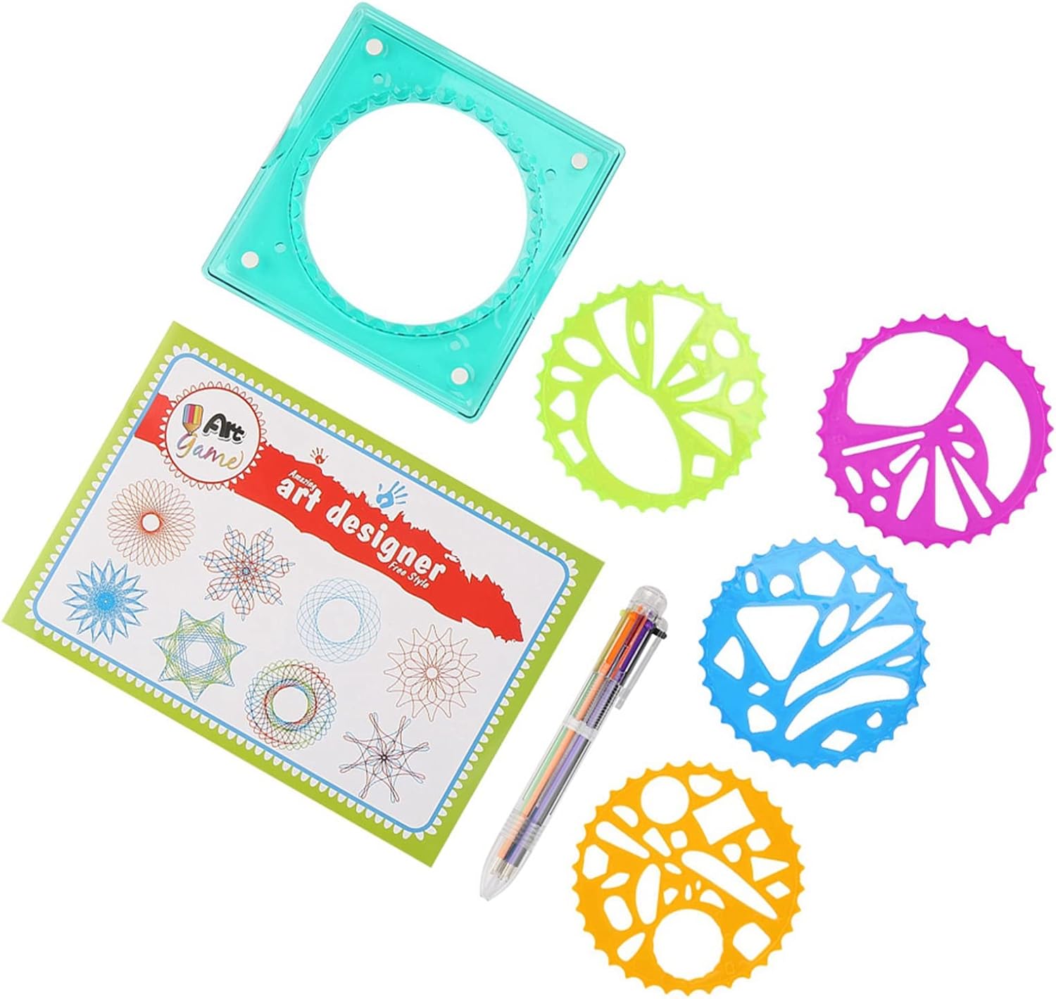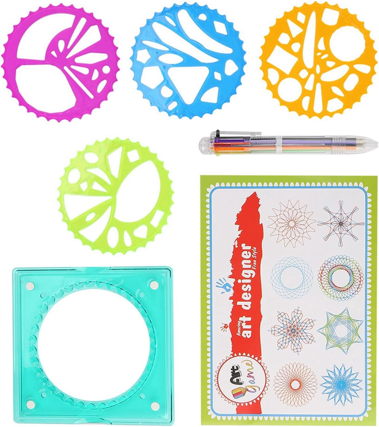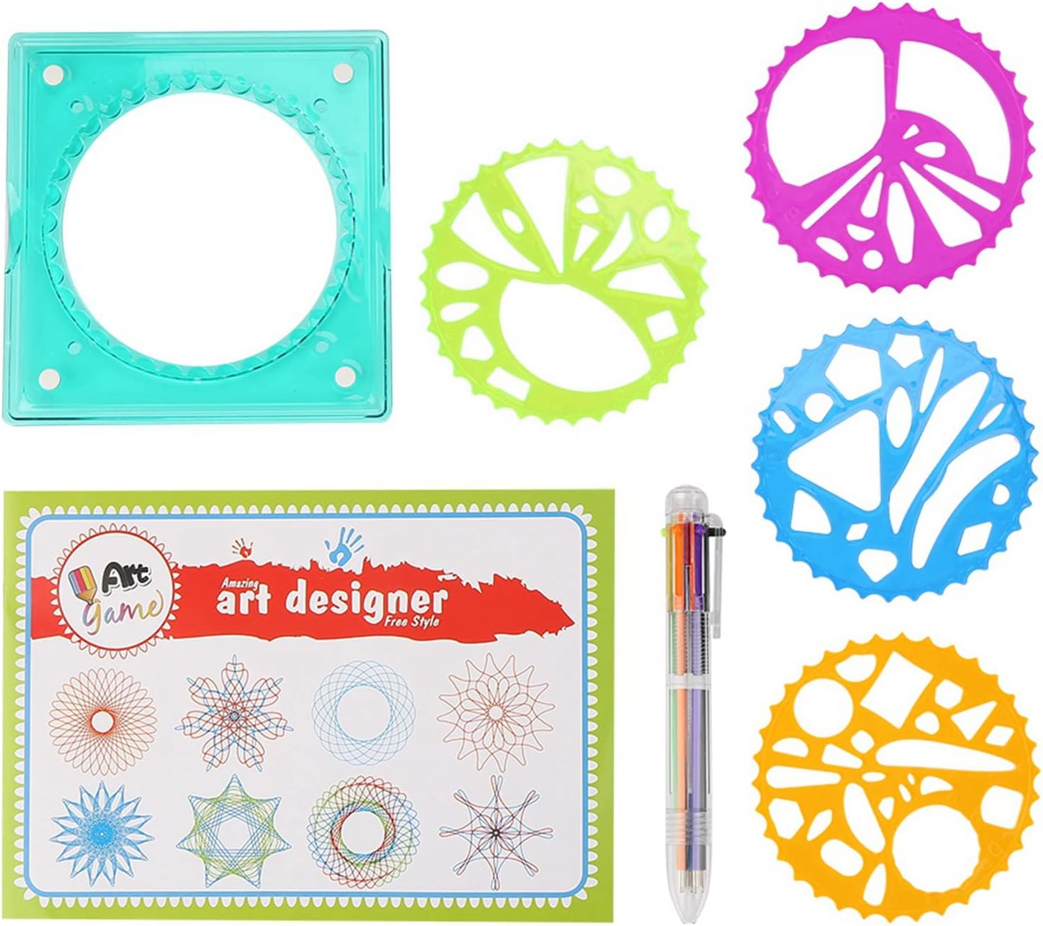 [Penna colorata inclusa] Ogni set viene fornito con una penna colorata che consente ai bambini di aggiungere colori vivaci ai loro modelli. la penna migliora l'esperienza di disegno complessiva, rendendola più coinvolgente e divertente per i bambini. [Ispira la creatività] Questa fornitura di cancelleria è un must per i bambini che amano l'arte. incoraggia la creatività e l'immaginazione, rendendolo strumento ideale per consentire ai bambini di esplorare i propri talenti e abilità artistiche. [Crea bellissimi motivi] Usa questo righello per disegnare intricati motivi di fiori e cerchi senza sforzo. ispira la creatività e l'immaginazione nei bambini, permettendo loro di esprimersi attraverso l'arte. [Materiale plastico] Il righello da disegno è realizzato in plastica di alta qualità, garantendo resistenza e uso duraturo. è robusto e non facilmente infrangibile, offrendo prestazioni per i bambini. [Leggero e compatto] Questo righello geometrico è leggero, compatto e facile da maneggiare, rendendo conveniente per i bambini creare bellissimi motivi con facilità. è progettato per essere utilizzato comodamente dalle mani dei più piccoli.