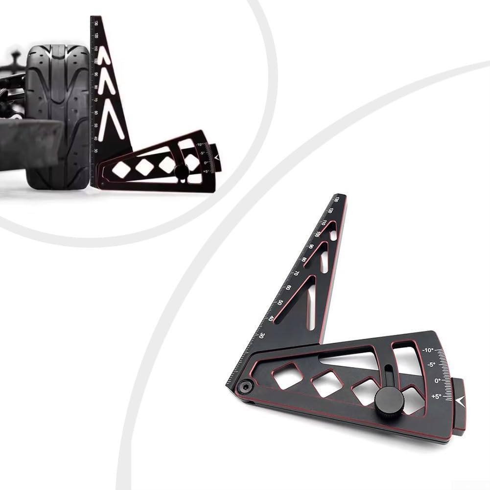 Regolazione della campanatura: dispone di una capacità di misurazione regolabile a 15 gradi per auto RC in scala 1/10, 1/8 e 1/7, consentendo regolazioni precise dell'altezza e del posizionamento del veicolo per ottimizzare le prestazioni e le caratteristiche di maneggevolezza del modello dell'auto. Struttura in metallo di lunga durata: realizzato con materiali metallici robusti con opzioni di finitura nero oro o nero rosso, questo righello di posizionamento resiste all'uso ripetuto durante la messa a punto dell'auto radiocomandata mantenendo la precisione di misurazione nel tempo. Design di compatibilità generale: funziona con vari veicoli telecomandati in scala 1/10, 1/8 e 1/7, rendendolo uno strumento versatile per gli appassionati di RC che possiedono più modelli di auto o spesso passano da un progetto a scala diversa. Facile processo di installazione: semplice da installare, sostituire e regolare senza strumenti complessi, consentendo rapide modifiche dell'altezza del veicolo e camber angolo di camber che migliorano l'efficienza di configurazione della vostra auto RC durante la messa a punto. Soluzione completa di accordatura: perfetto per hobbisti dai 14 anni in su che cercano di sviluppare abilità avanzate di regolazione dell'auto RC, questo righello aiuta a raggiungere la geometria delle sospensioni ottimali e la posizione del veicolo per migliorare le prestazioni di corsa.