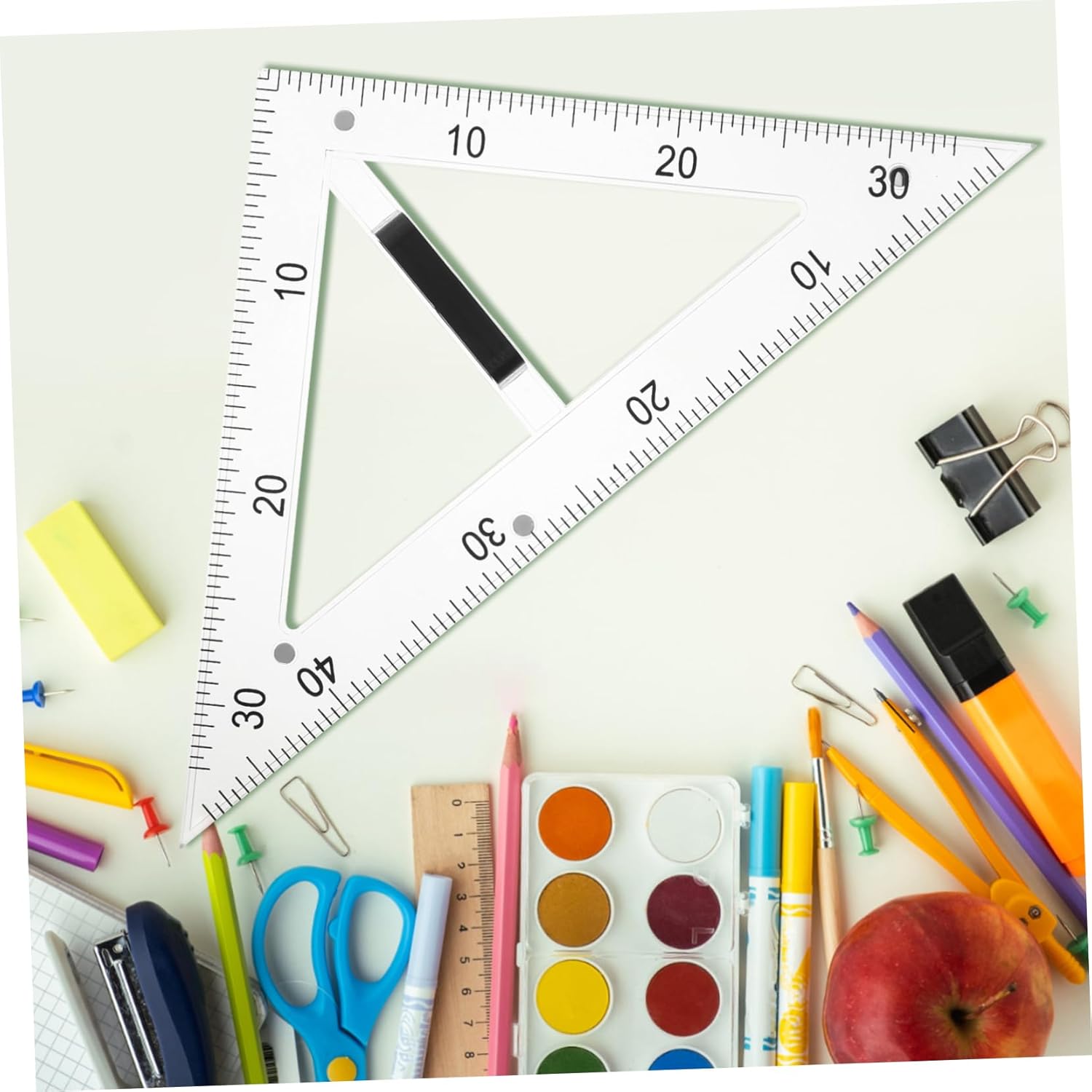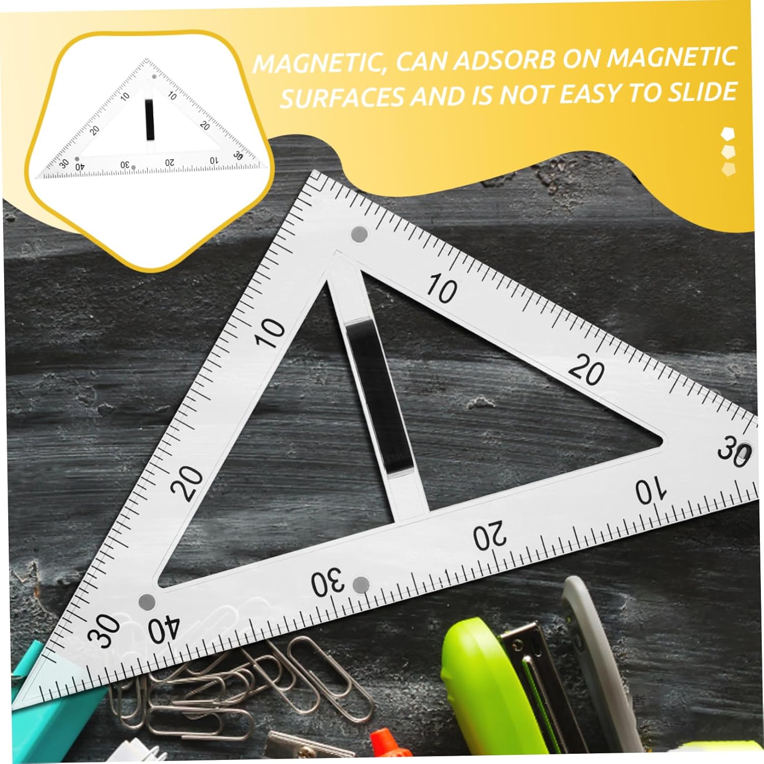 Righello triangolare didattico: il design magnetico del righello didattico impedisce che scivoli su superfici magnetiche, disegnando righelli triangolari Righello triangolare in classe: l'uso di materiali abs e magnetici garantisce la durata dello strumento di disegno e una facile pulizia, righelli geometrici multifunzionali Strumenti per l'insegnamento della matematica: il righello del triangolo da disegno è adatto sia agli studenti che agli insegnanti durante le lezioni di disegno, righello didattico Accessori per l'insegnamento della matematica: il goniometro didattico è progettato specificamente per scopi didattici, piastra triangolare didattica Materiale scolastico: realizzato in abs e materiali magnetici, che garantisce durata e facile pulizia, materiale didattico