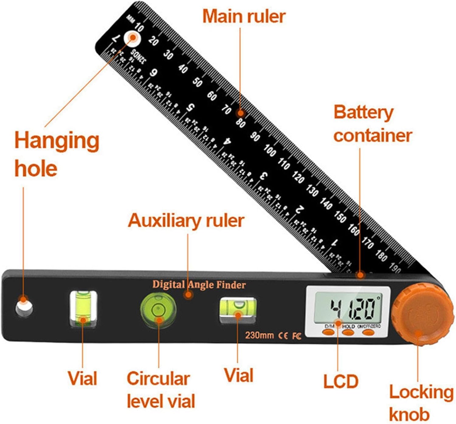 Durata assicurata: grazie a questo rilevatore di angolo digitale, il sovrano può raggiungere misurazioni di precisione ogni volta. Costruito con un corpo di righello spesso e ampliato in polipropilene di alta qualità, garantisce durata, eccellente rigidità, resistenza all'usura e deformazione zero o graffi Funzione di spegnimento automatico: grazie alla sua funzione di spegnimento automatico, il righello del localizzatore ad angolo digitale ti aiuta a risparmiare energia della batteria e prolungarne la durata. Ottieni misurazioni più accurate per più a lungo Miglioramento del collegamento dati: questo controller angolare digitale assicura letture chiare in qualsiasi posizione e consente di archiviare i dati per misurazioni assolute e relative. Con risultati confortevoli di facile lettura, migliora la tua efficienza di lavoro e migliora la precisione della misurazione Display ad alta precisione: il righello del localizzatore angolare digitale utilizza un ampio display LCD a schermo intero che garantisce che i dati di misurazione siano chiari e comodi da leggere a colpo d'occhio Funzioni multiple: non solo funge da righello angolare e strumento per la lavorazione del legno, ma questo rilevatore digitale fornisce anche misure relative e assolute, migliorando così la funzionalità per una precisione senza sforzo