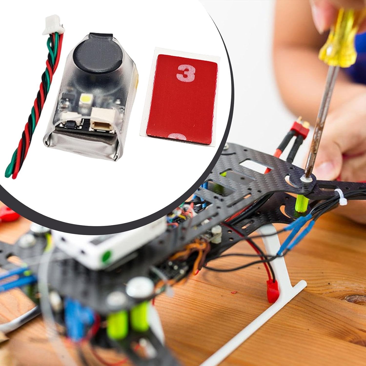 Dimensioni ridotte: progettato per le prestazioni e il peso minimo assicurano che non influisca sulle caratteristiche di volo del tuo drone Configurazione semplice: basta collegarlo alla porta standard del tuo FC utilizzando il cavo 3P*1,0 mm incluso, ed è all'uso. Non è necessaria alcuna configurazione complessa. Non perdere mai più il tuo drone: questo segnale acustico BB emetterà un segnale acustico e farà lampeggiare un LED dopo 30 secondi, guidandoti direttamente al tuo abbattuto, di giorno o di notte Doppia modalità di funzionamento: questo allarme acustico presenta due modalità di funzionamento. Non solo è compatibile con funzione di allarme acustico di picco attivo, sincronizza anche con il controllo Ricarica automatica: una volta collegato correttamente e alimentato con un aereo multirotore, si caricherà automaticamente