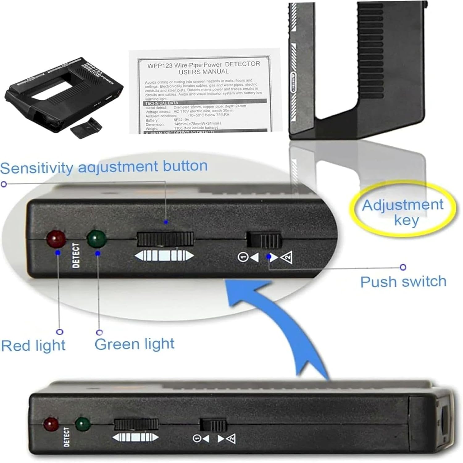 Scansione accurata ed efficiente: con funzione di sensibilità regolabile, è possibile regolare in modo flessibile l'impostazione della sensibilità del rilevatore in base alla scena di rilevamento reale e alle esigenze. Quando si affrontano diverse profondità e materiali, è possibile facilmente la sensibilità per massimizzare la capacità di scansione, concentrarsi accuratamente sull'area, che ogni rilevazione e ottenere rapidamente e accuratamente le informazioni richieste Design ergonomico: considerando le esigenze di funzionamento a lungo termine, adotta un design leggero e una maniglia ergonomica. La presa che il naturale della mano disperde efficacemente la pressione. Anche se viene utilizzato continuamente per diverse ore, la mano non è facile, consentendo di concentrarsi sul compito di rilevamento, affrontare facilmente gli ambienti di lavoro e migliorare notevolmente l'efficienza del lavoro Rilevamento accurato senza preoccupazioni: questo rilevatore di alimentazione a filo e tubo è dotato di due modalità di allarme, suono e Viene rilevato un oggetto metallico, emette immediatamente un suono chiaro, accompagnato da un suggestivo messaggio visivo. Che si tratti di cercare tubi di filo nascosti nel muro o controllare altre parti metalliche nascoste, puoi sapere con precisione alla prima volta - Alta sensibilità benedizione: con incredibile sensibilità elevata, anche oggetti metallici estremamente piccoli possono essere catturati con attenzione. In campi come potenza e costruzione, può individuare con precisione quei fili metallici sottili e minuscole particelle metalliche che possono nascondere pericoli nascosti, aiutandoti a risolvere i problemi in anticipo Diversi scenari applicabili: il nostro metal detector per adulti è uno strumento versatile e affidabile che può rendere qualsiasi lavoro più efficiente ed efficace. Può rapidamente legno, metallo e fili nascosti nelle pareti, pavimenti e soffitti della casa. Ti aiuta a evitare pericoli quando appendi e installi supporti TV, cornici, armadi da parete, rack per garage, scaffali, maniglie del bagno e altre decorazioni