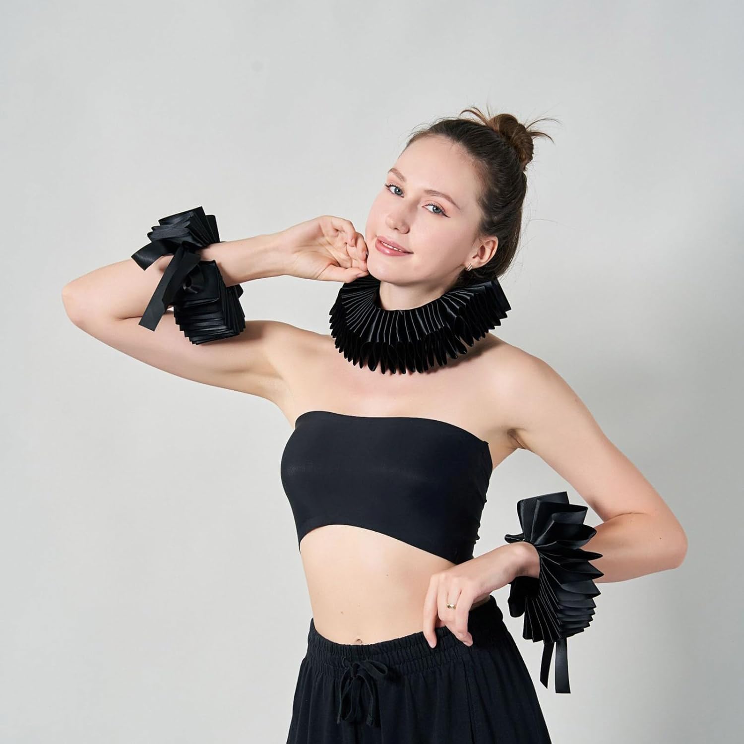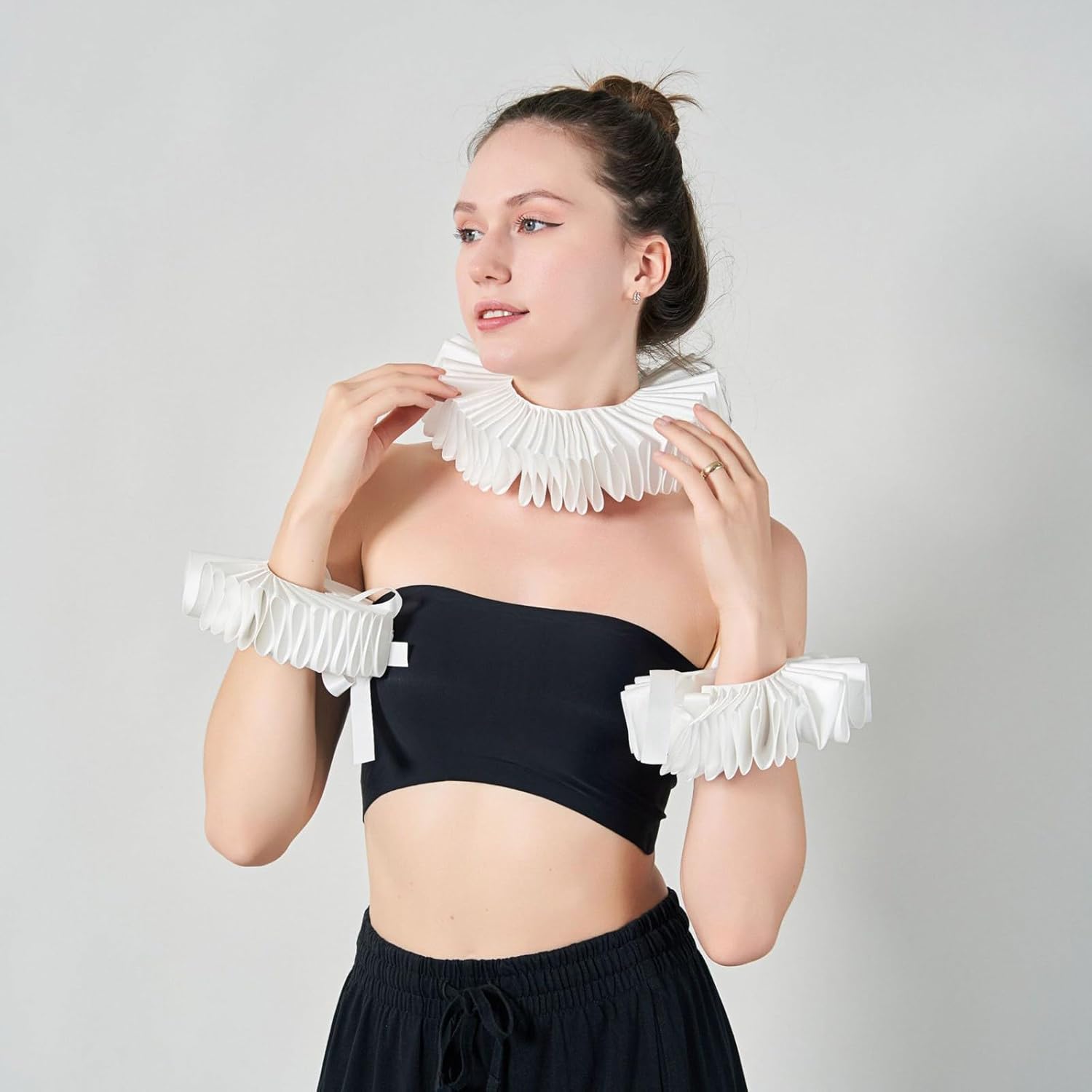Rinascimentali Elisabettiani Falso Collare Polsino Set Vintage Tinta Unita Collo Ruff E Polso Volant Polsini Accessori Costume Caratteristiche: Migliora i tuoi stili con il nostro set di polsini e colletto decorativo in stile francese, presenta un design unico che emana elegante e raffinatezza In poliestere, questo collare è meticolosamente realizzato a mano per garantire comfort e morbidezza, rendendolo facile da abbinare a vari abiti per un tocco di moda aggiuntivo. Ideale per donne alla moda, amanti dell'estetica francese e professionisti orientati ai dettagli che cercano di migliorare il loro guardaroba. Ideale per varie occasioni come cene, feste e matrimoni, questo accessorio migliora l'aspetto generale e aggiunge un gusto raffinato a qualsiasi ensemble. Questo set di colletto e polsini decorativi è un accessorio indispensabile per coloro che cercano un senso di lusso ed elegante fascino nel loro outfit, rendendolo una grande aggiunta a qualsiasi collezione. Specifiche tecniche: Componente: poliestere. Circonferenza del collo: 40-45 cm. Colore opzionale: nero, bianco. Quantità: 1 set. La confezione include: 1 collare e 1 paio (2 pezzi). Nota: Considerare un margine di errore di 1-3 mm a causa della misurazione manuale. Si prega di assicurarsi che non sia un problema prima di effettuare l'ordine. A causa delle differenze tra i diversi monitor, l'immagine potrebbe non riflettere esattamente il colore dell'articolo.