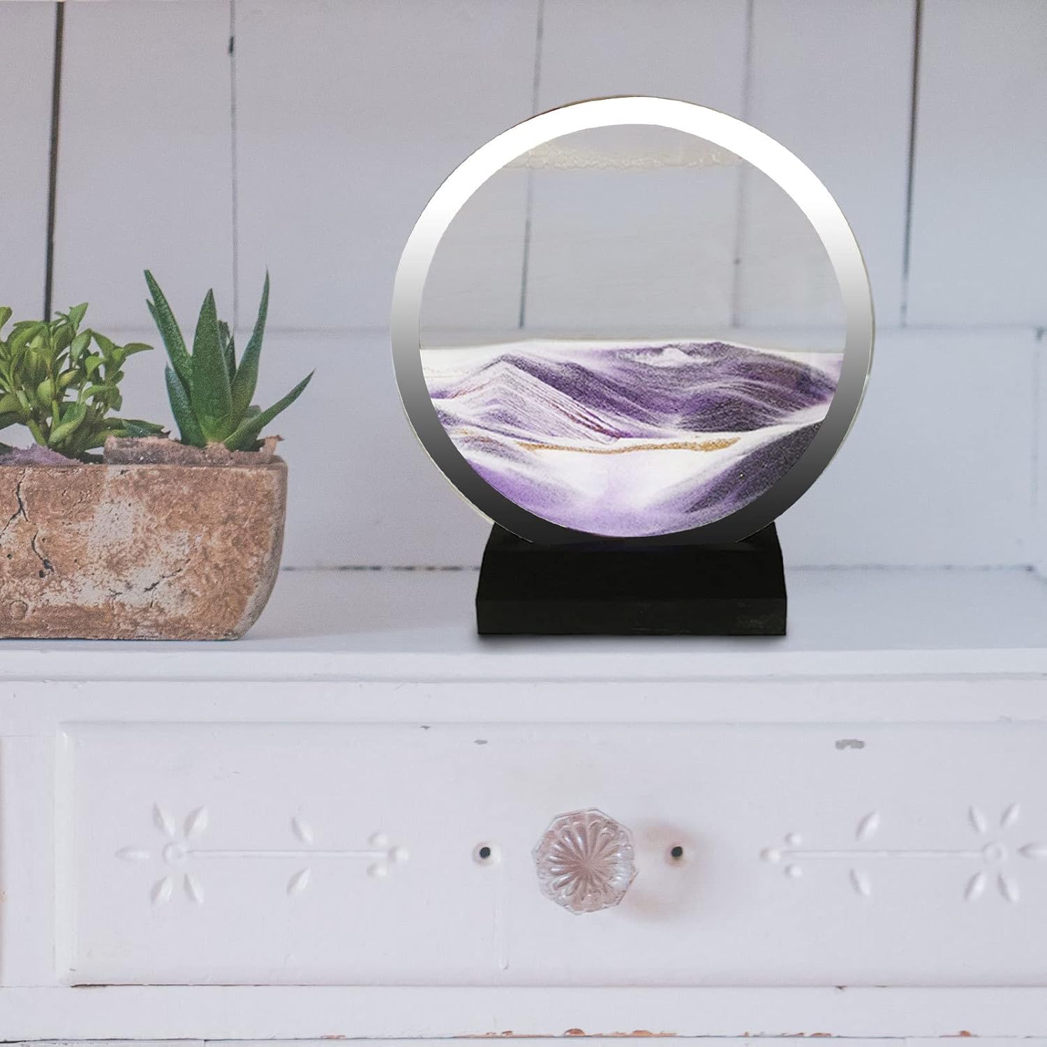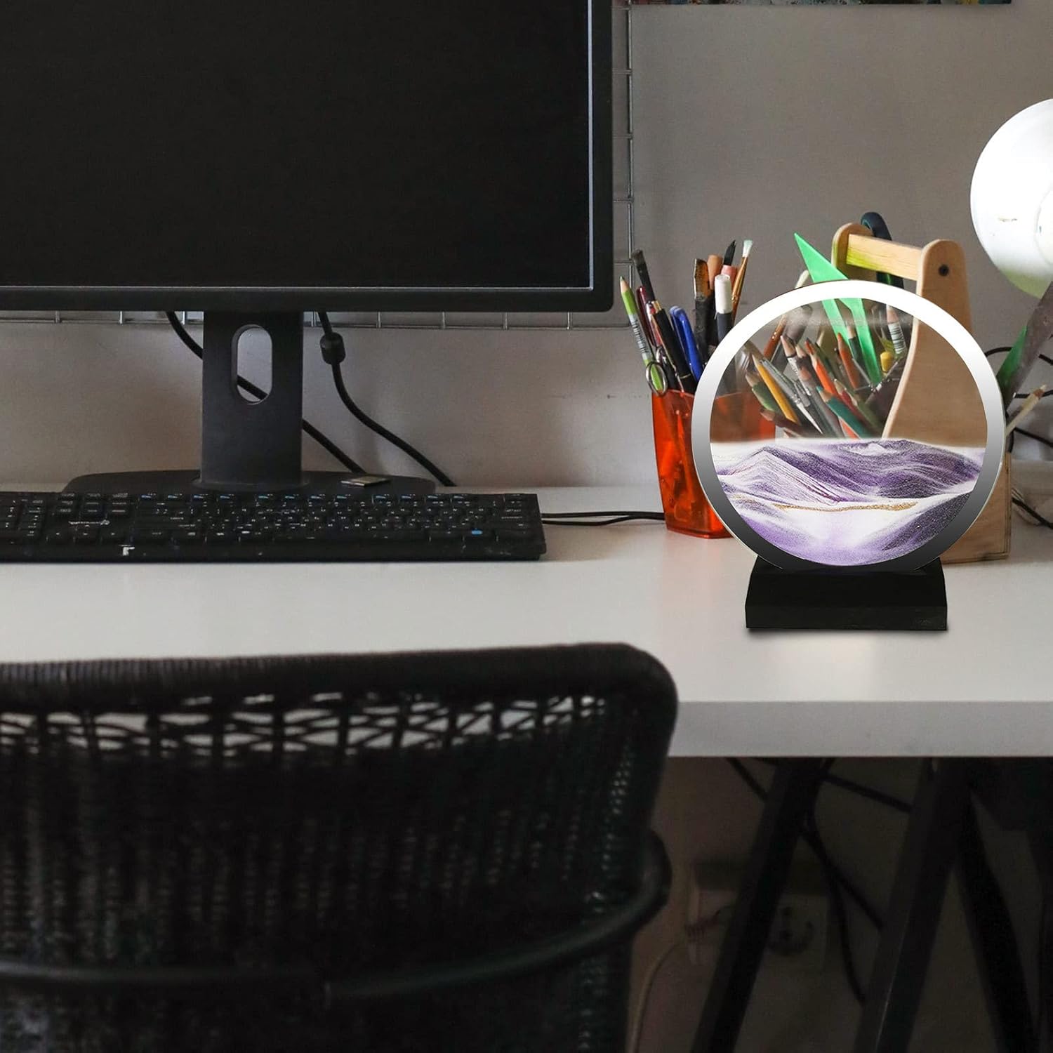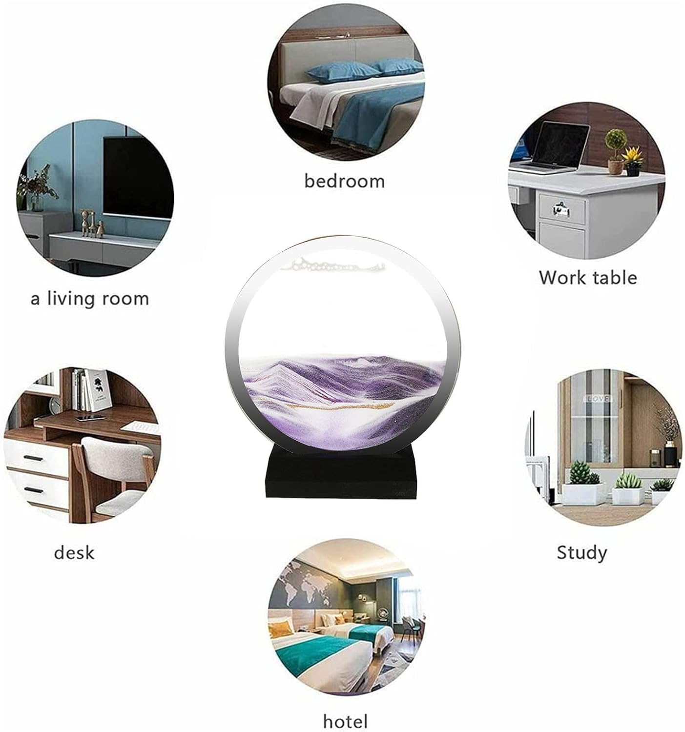 Innovativo e mozzafiato: testimone della bellezza delle sabbie mobili con il nostro dipinto su sabbia in movimento, ospitato in un'elegante cornice in vetro. La base in legno resistente aggiunge solidità e stabilità per esporre questa splendida stanza in qualsiasi ambiente. Illustrazione dinamica: ogni movimento crea un capolavoro unico. Gli strati di sabbia colorata che si muovono e si depositano producono modelli e disegni complessi, incoraggiando la creatività e la consapevolezza. Compagno di lavoro: mantieni il tuo rilassato e concentrato grazie al flusso continuo di vernice sulla sabbia che cambia in ogni movimento. Perfetto per chi lavora per lunghe ore sul computer e vuole alleviare lo stress. Illustrazione rilassante: migliora il tuo set di regali con questo pratico dipinto su sabbia mobile. Perfetto per compleanni, Natale, Pasqua e qualsiasi occasione speciale, questa opera d'arte interattiva crea affascinanti paesaggi sabbiosi che aiuteranno i tuoi cari a rilassarsi. Ampia gamma di applicazioni: concedetevi la bellezza accattivante della pittura sulla sabbia in movimento. Perfetto per vari spazi come hotel, ristoranti, bar, sale da ballo, camere da letto, aziende e sale studio, questa versatile opera d'arte aggiungerà un tocco incantevole a qualsiasi spazio.