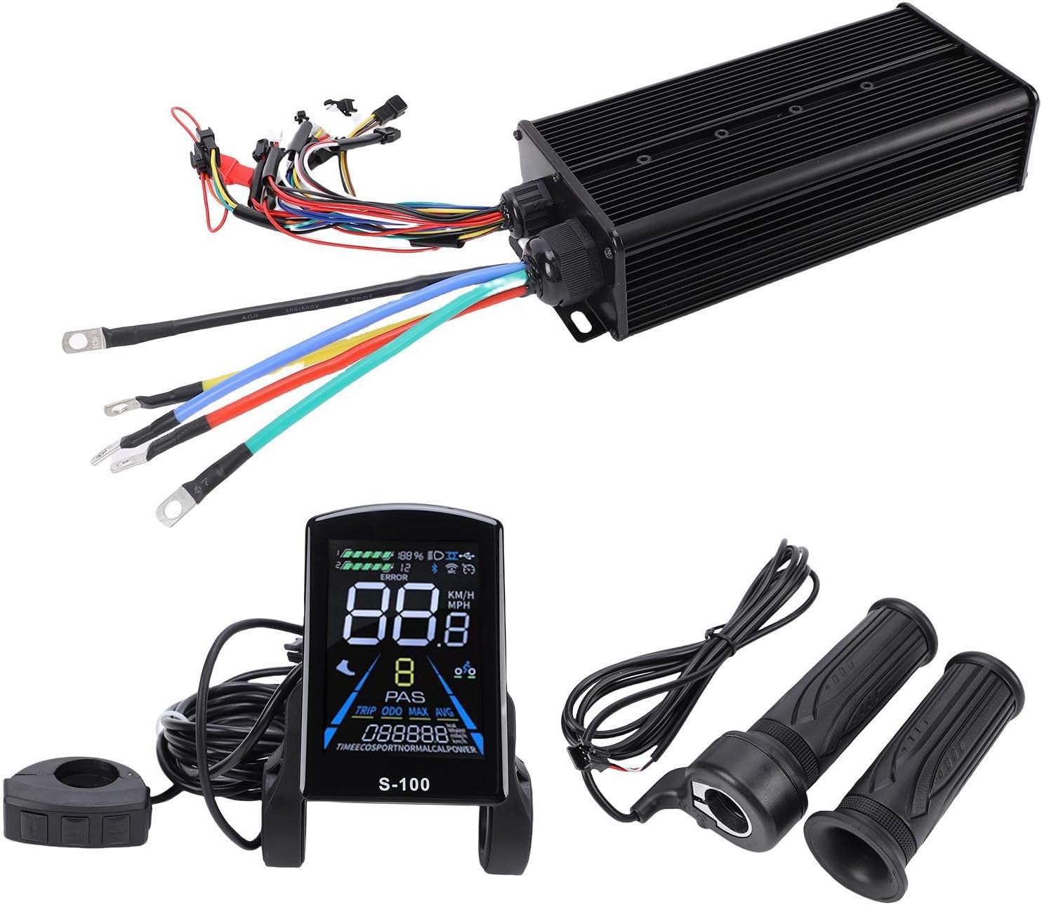 [Compatibilità versatile] Questo kit di misuratore di controller scooter elettrico dispone di un controller in modalità 3 a onda sinusoidale ad alte prestazioni progettato per funzionare senza soluzione di continuità con motori senza spazzole sia Hall che non Hall. Supporta una vasta gamma di configurazioni di alimentazione tra cui 48 V 2000W 48V3 000W 52V 2000W 52V 3000W 60V 3000W 60V 5000W 72V 3000W e 72V 5000W Motori rendendolo l'aggiornamento per vari modelli di scooter elettrici. La [Display di colori vivaci] Il kit include un misuratore di visualizzazione a colori S100 premium con una grande interfaccia intuitiva che fornisce una visibilità cristallina di tutti i dati di guida. Monitorare i livelli di batteria per la distanza percorsa e altre metriche essenziali in tempo reale con questo display vibrante. Il design intuitivo consente una facile navigazione attraverso più funzioni assicurandoti di rimanere informato e in controllo durante il tuo viaggio. [Design del manubrio ergonomico] Il manubrio completo 20x incluso è progettato per il massimo comfort e sicurezza con una prova di acqua e una costruzione a prova di sudore a prova di shock. La forma ergonomica fornisce una presa che riduce l'affaticamento durante le lunghe giostre, mentre il semplice processo di installazione garantisce una configurazione meno separata. Sperimenta un controllo stabile e reattivo con questo manubrio progettato con cura. [Intelligent Power Management] dotato di un chip intelligente avanzato Questo controller di scooter elettrici garantisce un'erogazione di energia affidabile ed efficiente dando la priorità alla sicurezza dei dati. La tecnologia intelligente ottimizza le prestazioni riduce i rifiuti energetici e fornisce una gestione dell'energia per il tuo scooter. Goditi un più fluido con accelerazione costante e gestione reattiva grazie a questo chipset all'avanguardia. [Costruzione durevole] Costruiti per durare questo controller e il misuratore di visualizzazione sono realizzati in materiali in lega di alluminio e ABS che offrono una durata eccezionale e dissipazione del calore. Il design robusto resiste al giorno in cui l'usura resiste all'impatto e garantisce affidabilità a lungo termine anche in condizioni impegnative. Che tu stia percorrendo o navigando questo kit è progettato per gestire tutto.
