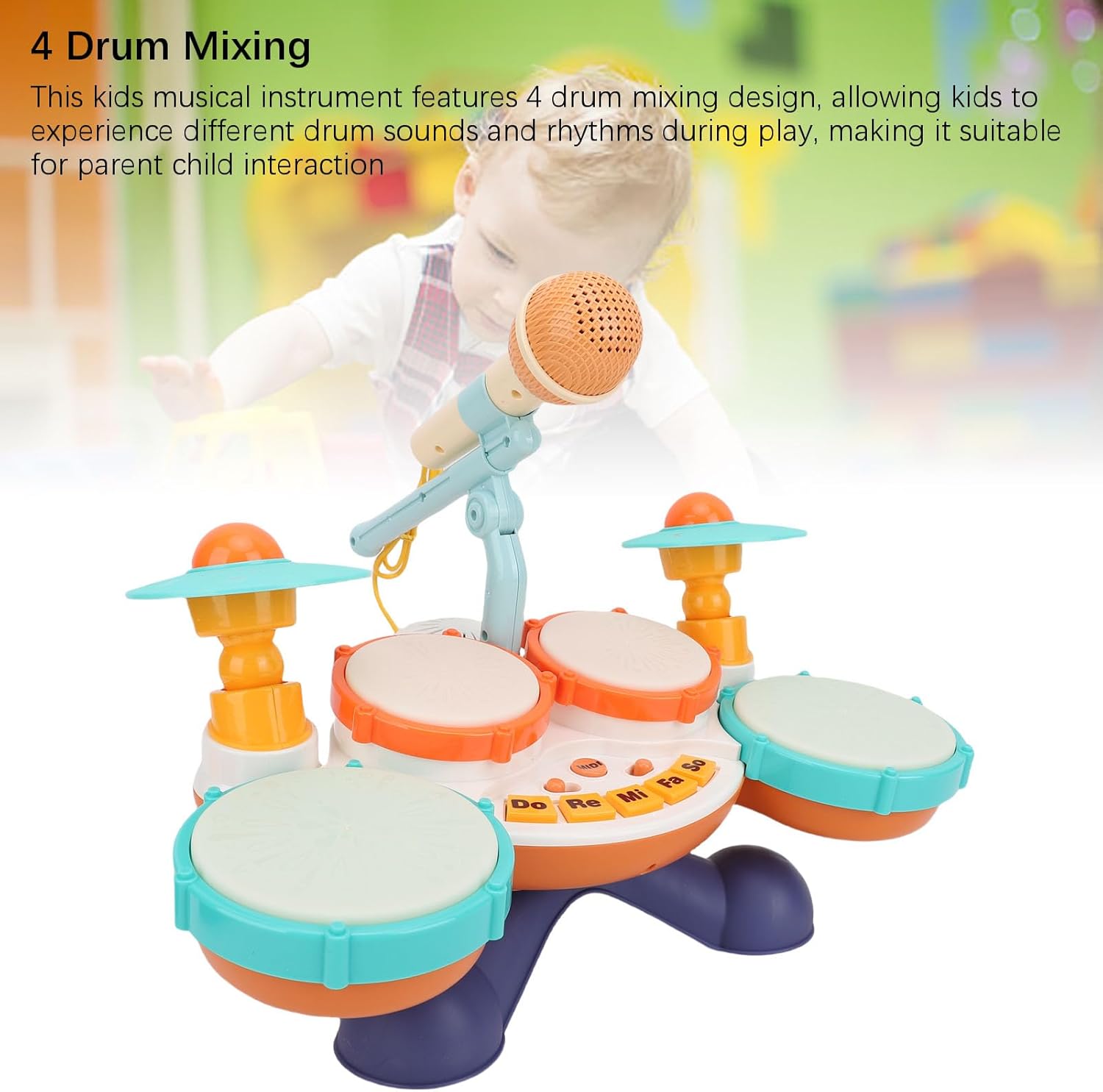 [Varietà di funzioni] Questo giocattolo musicale offre un'educazione alla prima infanzia e caratteristiche di battito a mano, effetti di luce, strumento chiave e jazz per i più piccoli. [Effetti di illuminazione] Gli effetti di illuminazione morbida su questo kit di batteria aggiungono divertimento e divertimento visivo al tempo di gioco garantendo la sicurezza per i bambini. [Alfabetizzazione musicale] Il design di questo giocattolo musicale multifunzionale aiuta i bambini piccoli a sviluppare senso ritmo e abilità musicali, suscitando il loro interesse per la musica. [Apprendimento giocoso] Questo giocattolo consente ai bambini di esercitare le proprie capacità musicali e l'immaginazione, rendendolo ideale per l'educazione precoce e l'intrattenimento quotidiano. [Play interattivo] I bambini possono esplorare suoni e ritmi diversi con il 4 di miscelazione, promuovendo l'interazione genitore-figlio ed esplorazione musicale.
