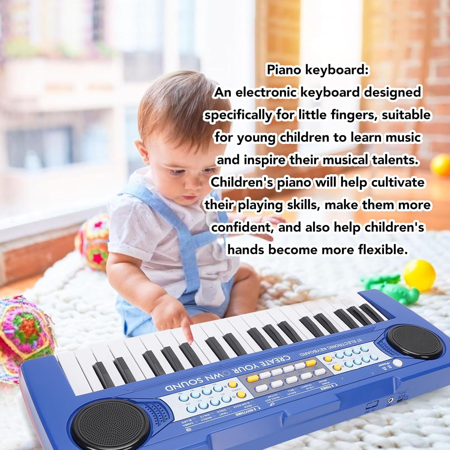 [Tastiera multifunzionale] sperimentare suoni di piano, altoparlanti e opzioni di percussione per la creatività. Scegli tra 8 toni, 8 ritmi e demo coinvolgenti. [Progettato per bambini] La tastiera compatta per le mani piccole migliora lo sviluppo musicale precoce. Costruisce fiducia, destrezza delle dita e pratica divertente. [Esplorazione dello strumento] Incoraggia i bambini a sperimentare combinazioni sonore. Migliora il coordinamento, la conoscenza della teoria musicale e le belle capacità motorie. [Apprendimento attraverso il gioco] La modalità musicale consente ai bambini di esplorare le melodie e migliorare le abilità motorie. Aumenta le abilità motorie e la padronanza della pressione del tasto. [USB potenziato] goditi la musica senza sforzo in qualsiasi momento con una connessione USB. Basta collegarsi a un adattatore compatibile per l'energia musicale continua.