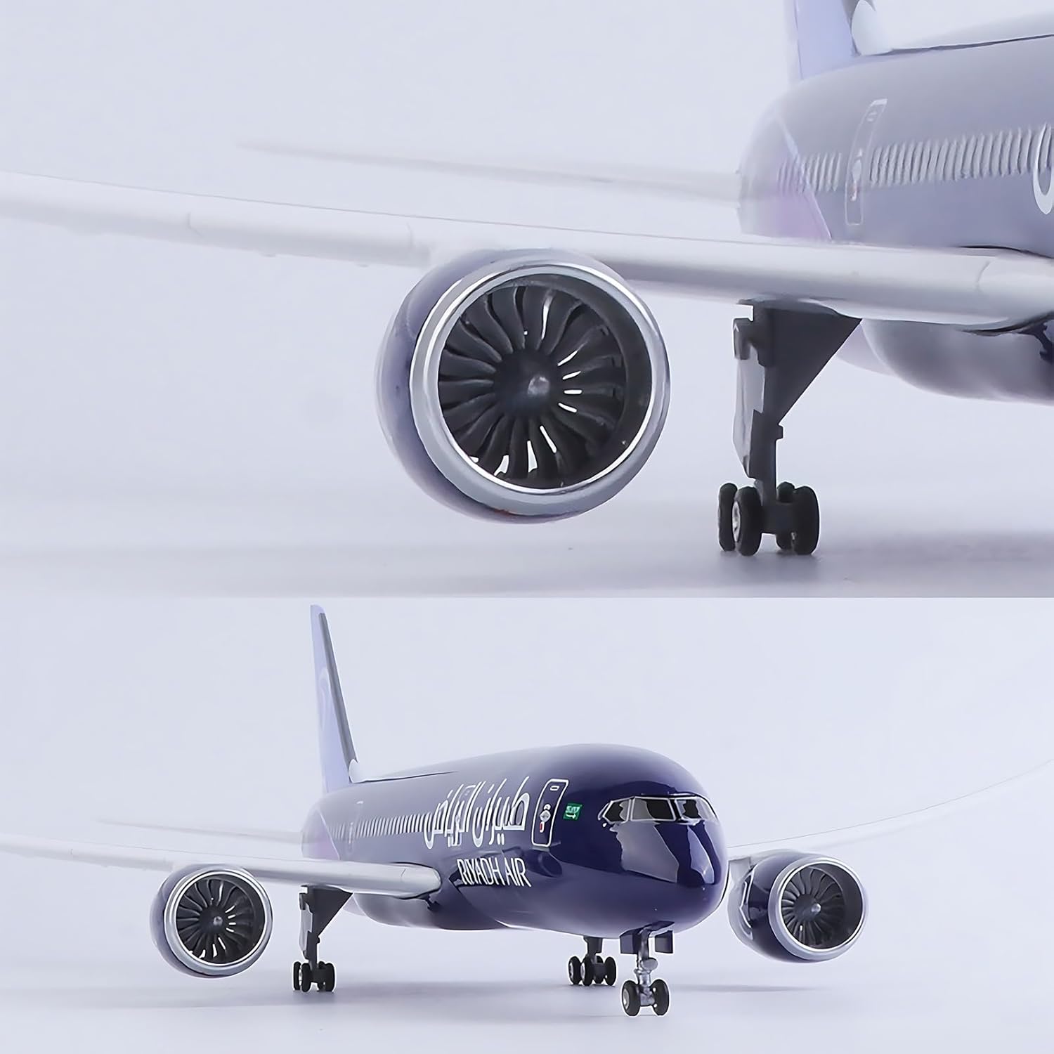 Illuminazione mozzafiato: il modello del Boeing 787 di Riyadh Air è dotato di illuminazione interna a bordo, inclusa una vivace luce nella cabina di pilotaggio. Questo grande modello di aereo (in scala 1:130) arricchisce la tua esposizione con la sua brillante illuminazione, attivabile tramite tocco o suono, for un'esperienza coinvolgente. Materiali di qualità premium: realizzato in resina di alta qualità e arricchito con plastica tecnica ABS, il modello di aereo vanta una texture metallica realistica. La finitura dipinta a mano e i dettagli precisi creano un modello di aereo delicato e raffinato che conquisterà gli appassionati di aviazione. Dimensioni impressionanti: con una lunghezza di 47 cm, un'apertura alare di 50 cm e un'altezza di 19 cm, questo modellino di aereo pressofuso è perfetto for i collezionisti. Le luci brillano intensamente quando attivate tramite comando vocale o tocco, offrendo un'incantevole visuale che si spegne automaticamente dopo 20 secondi. Caratteristiche dettagliate: il modello del Boeing 787 della Riyadh Air include carrello di atterraggio staccabile, ruote girevoli e pale del motore regolabili manualmente. Grazie alla cabina di pilotaggio, ai finestrini e ai motori scavati, è possibile passare facilmente dalla modalità di volo a quella di rullaggio, aggiungendo ulteriore realismo a questo straordinario modello. Scelta regalo: ideale come elemento decorativo for uffici, case o negozi, questo modello di aereo è un regalo fantastico for compleanni, festival o occasioni di lavoro. Confezionato in modo elegante e sicuro, arriverà pronto for stupire qualsiasi amante dell'aviazione nella tua vita.