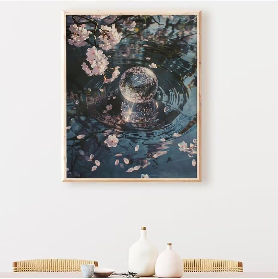 RNXAOPEN Dipingere con i Numeri, Kit Dipingere con i Numeri, 60x80cm Fai Da Te Creativo Adulti contiene Colori, Gioco Creativo per maschi e femmine dai 5+ anni di età, Cherry Blossoms Lake 8013-2