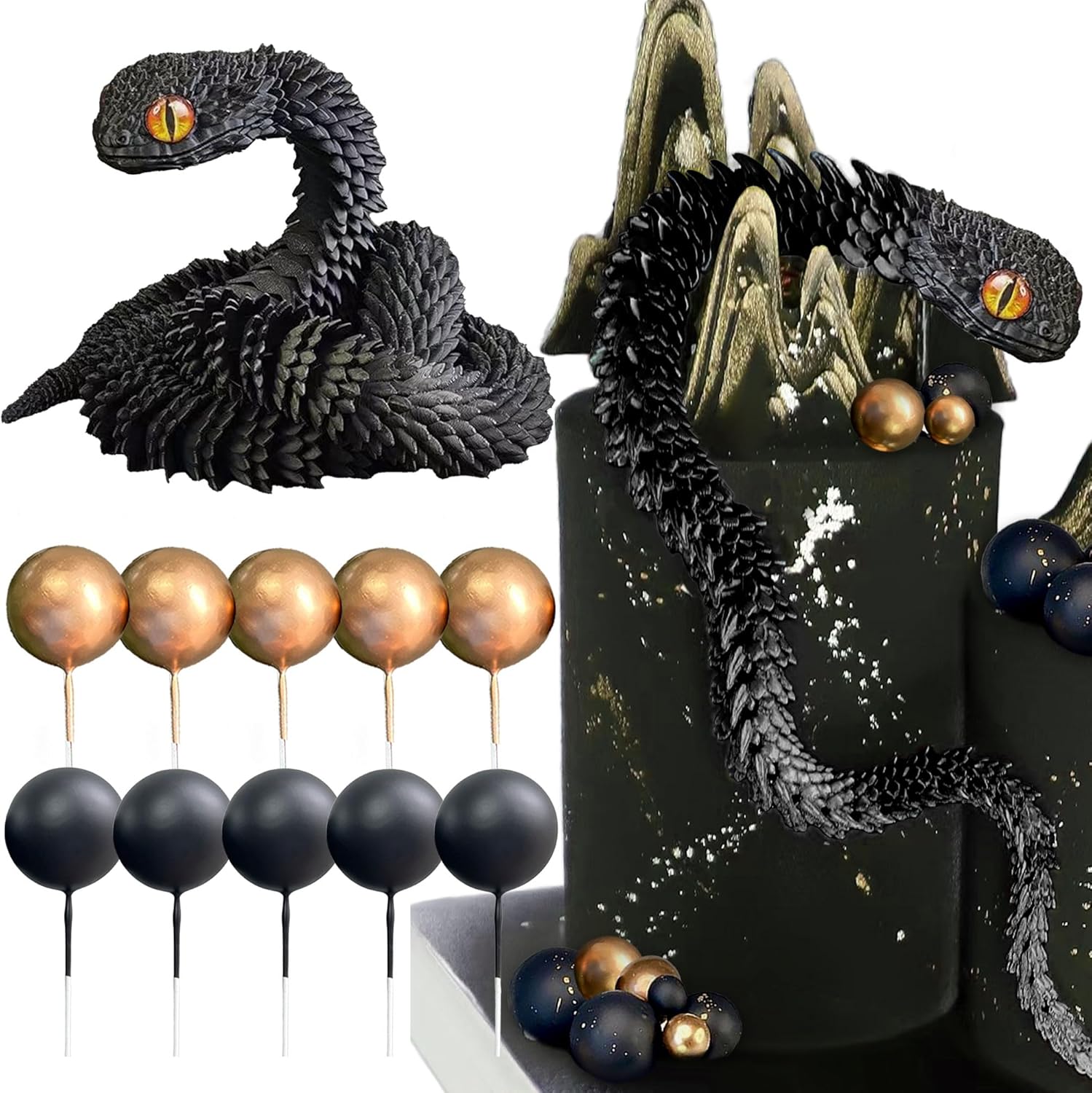 Il nostro set di decorazioni per torte fantasy con serpenti ha tutto ciò di cui hai bisogno per rendere questo giorno indimenticabile. Questo set di decorazioni per torte con maghi è adatto per feste di compleanno, feste di maghi e feste di fan fantasy. La confezione include: 1 decorazione con serpente nero, 5 palline nere, 5 palline dorate. La nostra decorazione con serpente renderà la tua torta interessante e immergerà la tua famiglia e i tuoi amici in un'esperienza indimenticabile. Se hai domande su questo prodotto, non esitate a farcelo sapere.