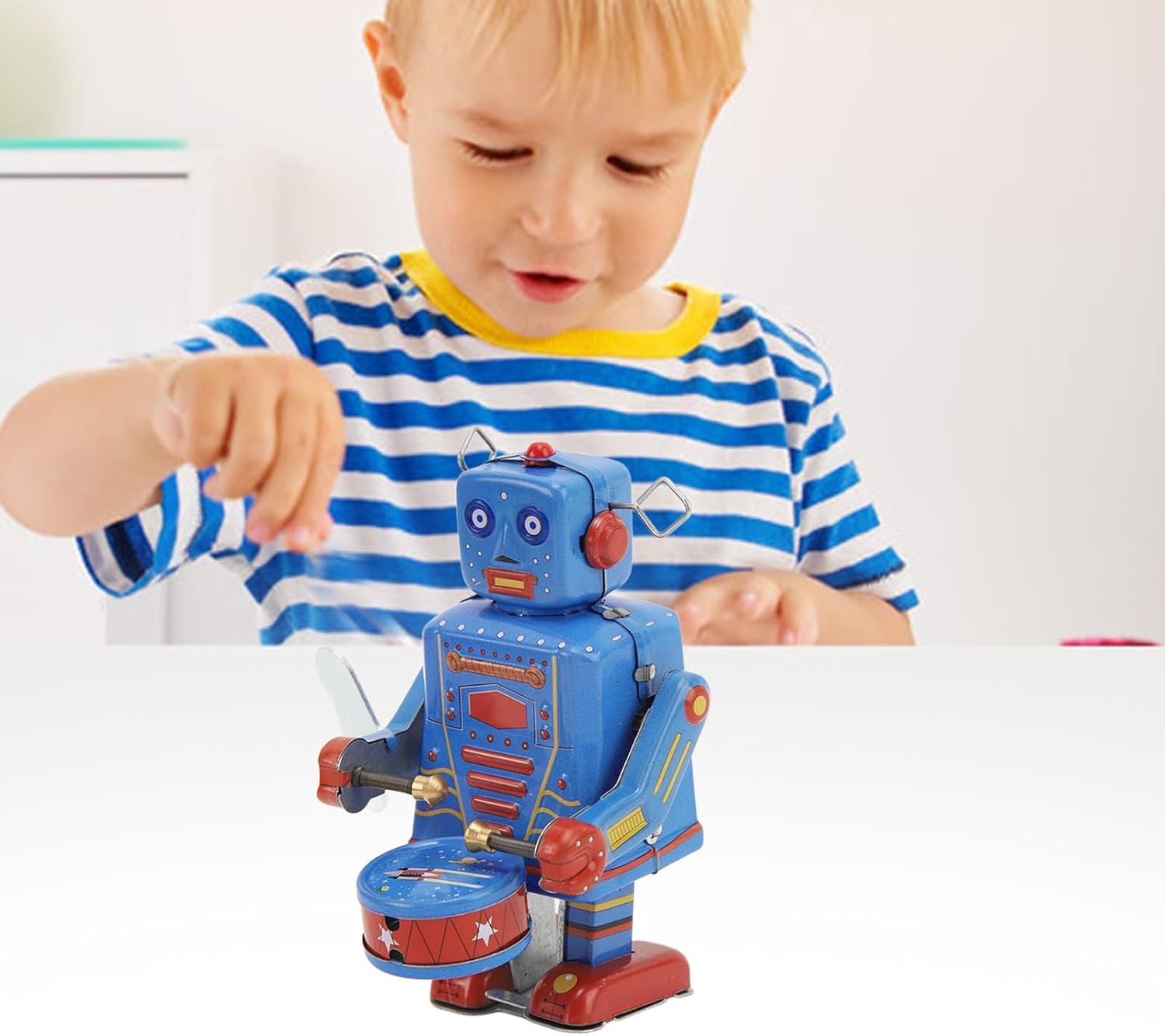 [Display di batteria interattiva] combina fascino meccanico con vivace azione di lanciatura mentre questo robot wind-up si fa avanti in stravagante, creando intrattenimento nostalgico per tavoli, scaffali o spazi a tema retrò [Craftsmanship di stagno vintage] La costruzione di latta in metallo retrò fatto a mano presenta graffi e imperfezioni intenzionali che migliorano il suo fascino antico, rendendo ogni pezzo un collezione unico per gli appassionati di adulti e gli ammiratori di giocattoli vintage [Soluzione universale] per compleanni, festività o occasioni speciali, questa figurina per orologio funge da distintivo per collezionisti, amanti degli arredamento a vapore e chiunque apprezzi l'arte meccanica [Classic Clockwork Design] presenta un meccanismo di avvolgimento autentico che richiede 1-3 rotazioni in senso orario, offrendo soddisfazione tattile mantenendo i tradizionali principi di ingegneria dei giocattoli attraverso i suoi ingranaggi a vista e componenti metallici [Accento del movimento decorativo] trasforma gli spazi con la sua presenza animata mentre il robot retrò si marcia attraverso le superfici mentre batteva piccoli tamburi, aggiungendo fascino cinetico a scaffali, scrivanie per uffici o interni di ispirazione vintage