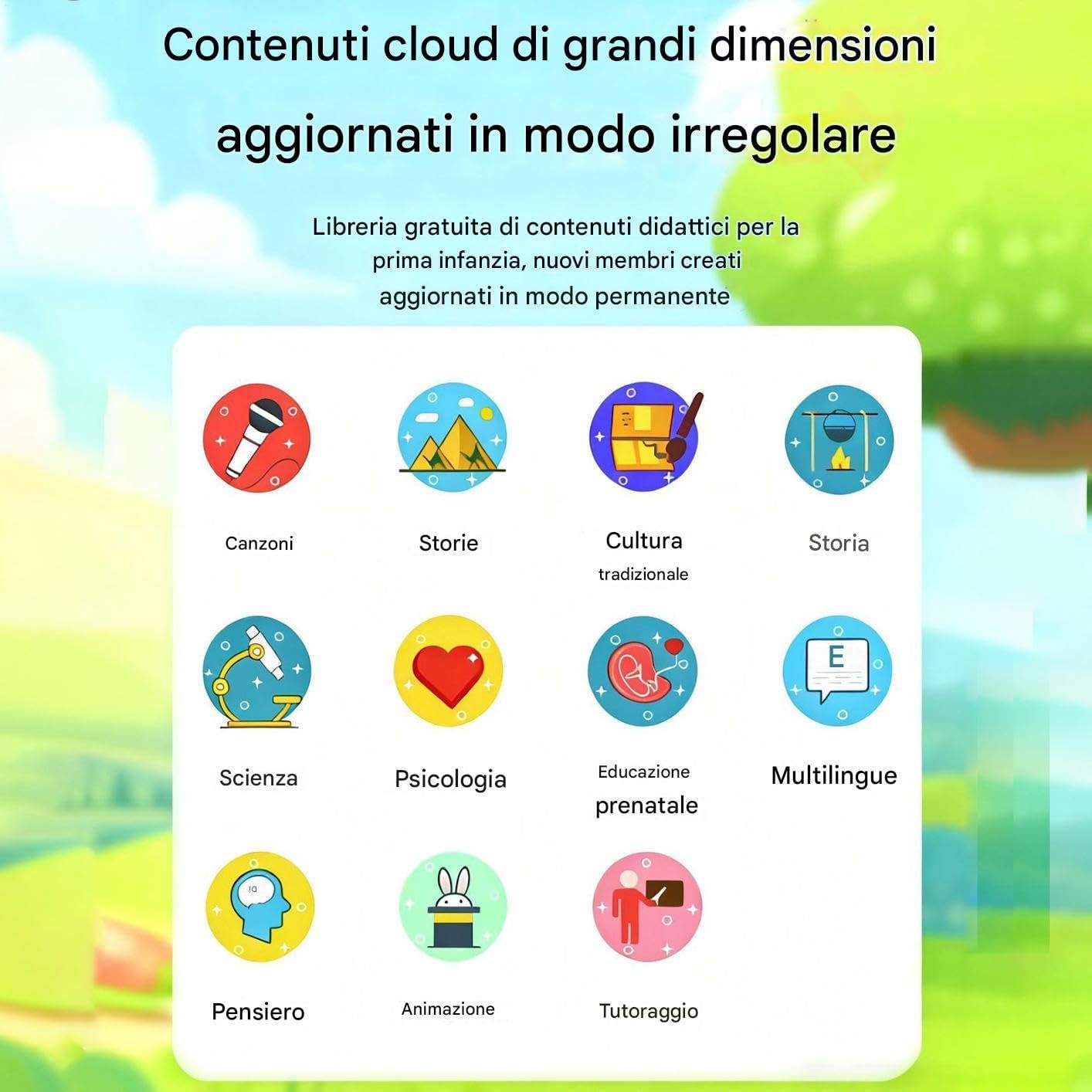 Giocattolo per Sviluppo Cognitivo: I robot giocattolo favoriscono lo sviluppo cognitivo potenziando il pensiero logico attraverso attività di gioco interattivo, bilanciando intrattenimento ed educazione per un'illuminazione mentale continua; ideali per stimolare l'immaginazione in ambienti domestici o scolastici, con design multifunzionale che supporta esperienze di apprendimento varie e coinvolgenti per diverse fasi di crescita, promuovendo un approccio integrato al gioco educativo che incoragg Mentor 'Espressione Coinvolgente: Dotato di riconoscimento vocale e un robusto AI multi-moo, il robot AI promuove lo sviluppo e capacità espressive mentre supporta la crescita a conoscenza; adatto per apprendimento interattivo o scenari ricreativi a casa o a scuola, creando opportunità per migliorare le abilità di comunicazione e l'arricchimento intellettuale in modo piacevole e accessibile. Regalo Pratico: I robot giocattolo per bambini fungono da design pronto per il regalo con caratteristiche interattive che migliorano l'espressione di auguri durante le festività, creando momenti gioiosi mentre trasmettono cura in riunioni familiari e celebrazioni festive, rendendoli eccellenti per occasioni di regalo e feste. Apprendimento Sociale Interattivo: Con la sua capacità di adattare personaggi e impostare ruoli basati sulla corrispondenza degli interessi, questo robot per bambini supporta l'allenamento a gestione emotiva e nutre lo sviluppo e abilità sociali. I bambini traggono vantaggio dalla narrazione coinvolgente e dal gameplay collaborativo, che incoraggiano l'empatia e il lavoro di , rendendo l'apprendimento sia divertente che impactante in ambienti quotidiani come aule o riunioni famili Approccio Dialogo Potenziato: Incorporando la tecnologia di riconoscimento e emozioni questo robot per bambini facilita connessioni più profonde attraverso risposte personalizzate che incoraggiano scambi riflessivi promuovendo discussioni genitore-figlio e arricchendo le tappe di sviluppo in scenari di gioco collaborativo con un focus sul rafforzamento dei legami familiari e sul miglioramento a comunicazione emotiva in modo spontaneo e coinvolgente.