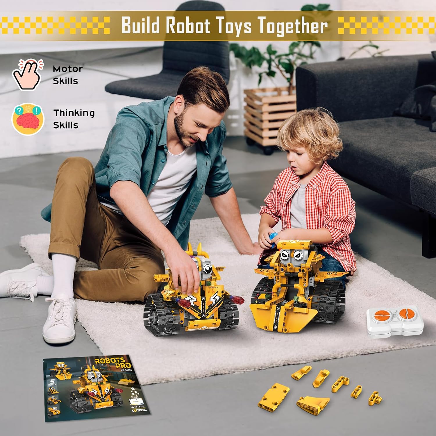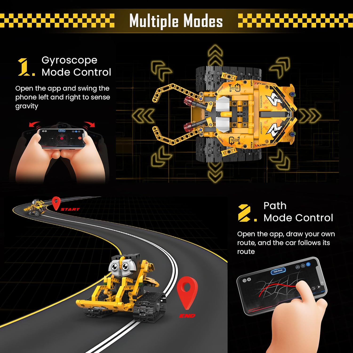 ✅ Assemblaggio creativo multifunzionale: il giocattolo da costruzione tecnologico 5 in 1 ha più di 604 parti di precisione, supporta il libero assemblaggio e stimola la creatività e l'immaginazione dei bambini. Che si tratti di una macchina da guerra, di un carro armato pesante o di un veicolo cingolato acrobatico, può essere facilmente assemblato, consentendo ai bambini di esplorare i misteri della struttura meccanica mentre giocano. ✅ Sistema di alimentazione ad alte prestazioni: dotato di un potente motore da 7,4 V, fornisce una velocità fino a 680 giri/min e una coppia di 2,5 KGf.cm, che è più esplosiva del tradizionale motore da 3,7 V. Con un design a catena antiscivolo, assicura che il veicolo possa guidare stabilmente su vari terreni complessi, offrendo un'esperienza di controllo più fluida. ✅ Effetto di illuminazione intelligente: l'esclusivo sistema di illuminazione a LED cambia tra blu, verde e viola quando il veicolo si muove, creando un fantastico effetto visivo. Batteria al litio ricaricabile da 300 mAh integrata, la durata della batteria è fino a 15-20 minuti, il che soddisfa le esigenze dei giochi a lungo termine. ✅ Modalità di controllo intelligente: supporta il doppio controllo del telecomando a 2,4 GHz e dell'APP e la distanza del telecomando può raggiungere i 30-50 metri. Fornisce quattro modalità di gioco: modalità percorso, modalità giroscopio, modalità guida e modalità di programmazione, consentendo ai bambini di apprendere la logica di programmazione e coltivare la capacità di pensiero logico durante il funzionamento. ✅ Illuminazione dell'istruzione STEM: questo giocattolo non è solo adatto per l'intrattenimento, ma anche un eccellente strumento educativo STEM per aiutare i bambini ad apprendere conoscenze meccaniche, elettroniche e di programmazione. Come regalo per compleanni, festival e altre occasioni, può ispirare la creatività dei bambini, migliorare l'interazione genitore-figlio e accompagnare i bambini a crescere felicemente.