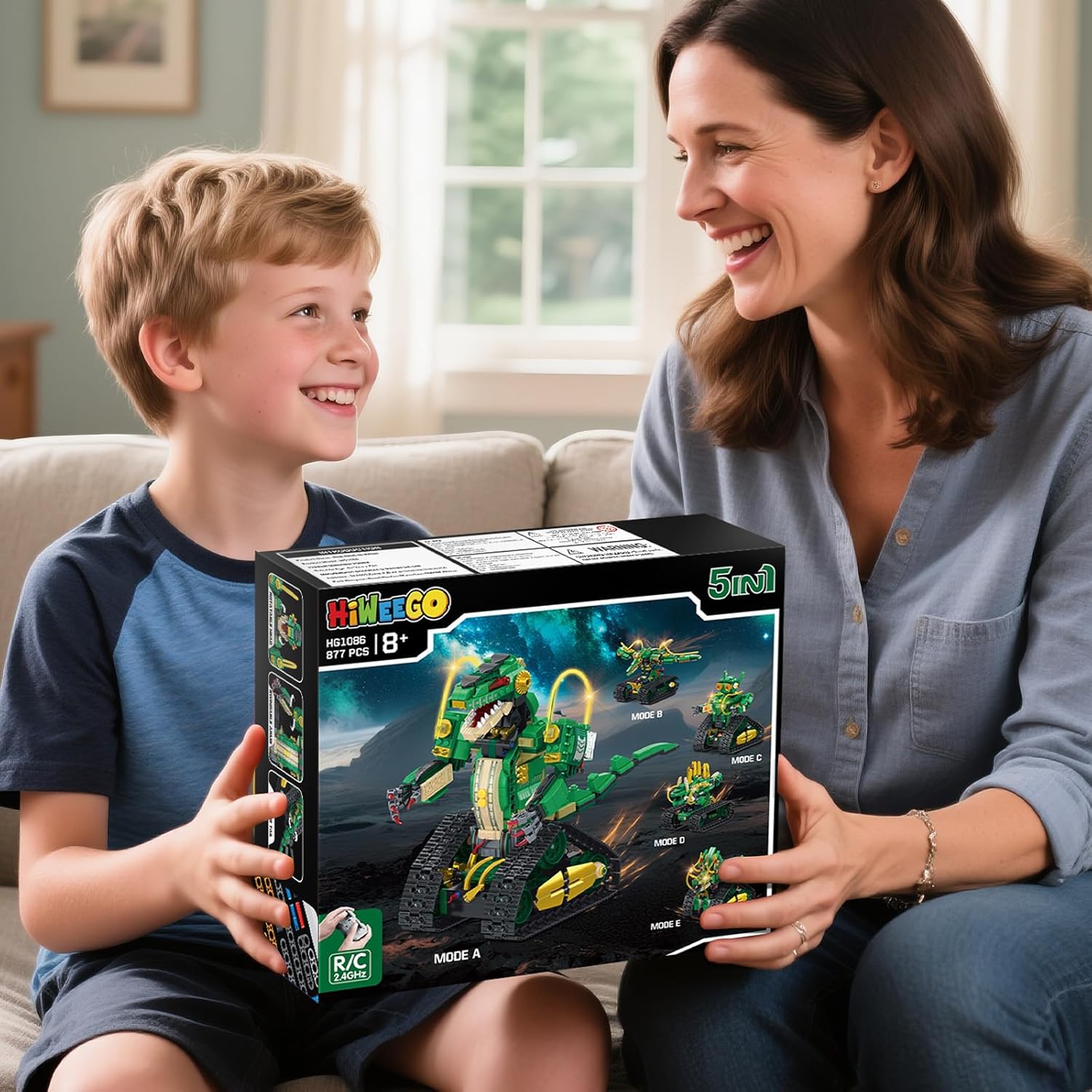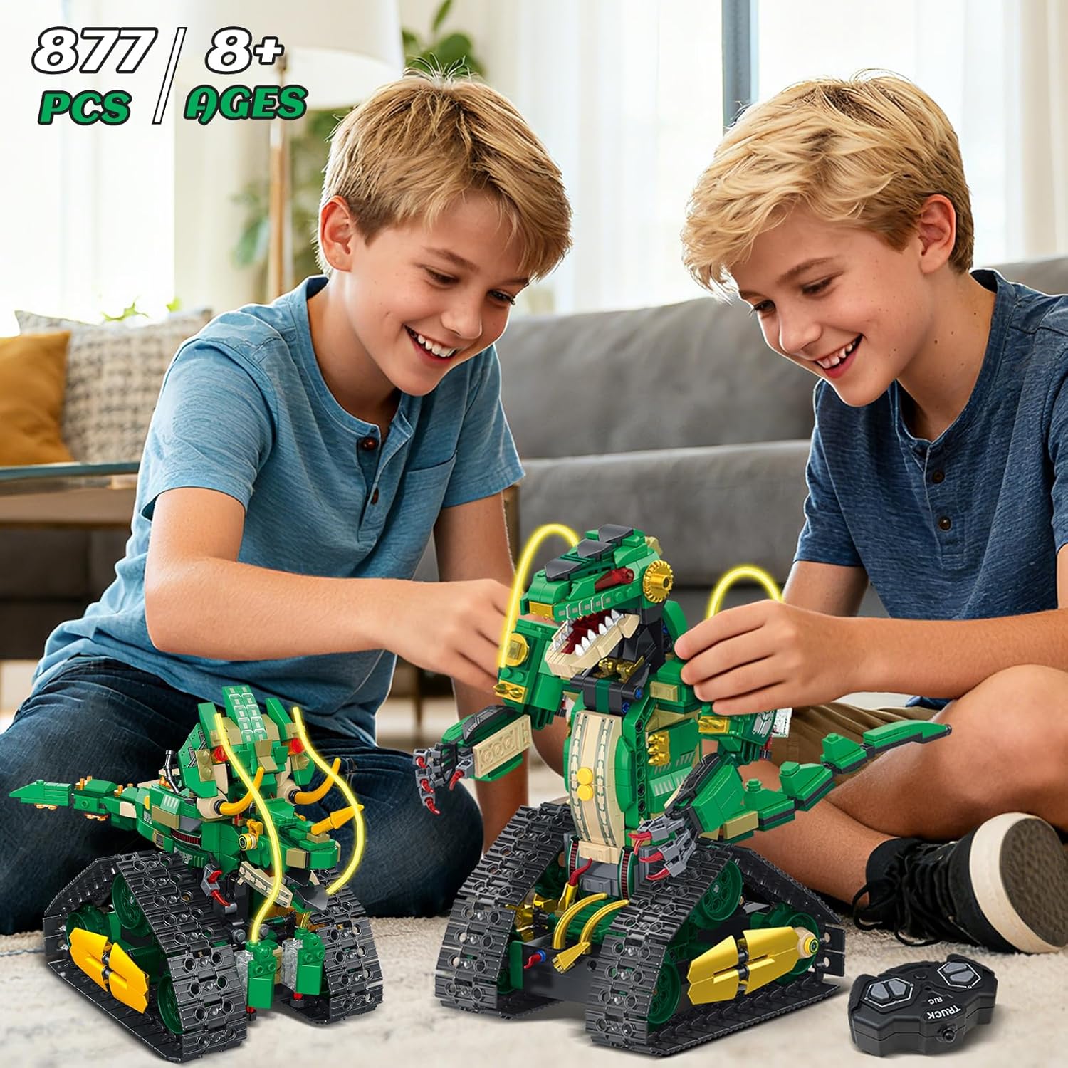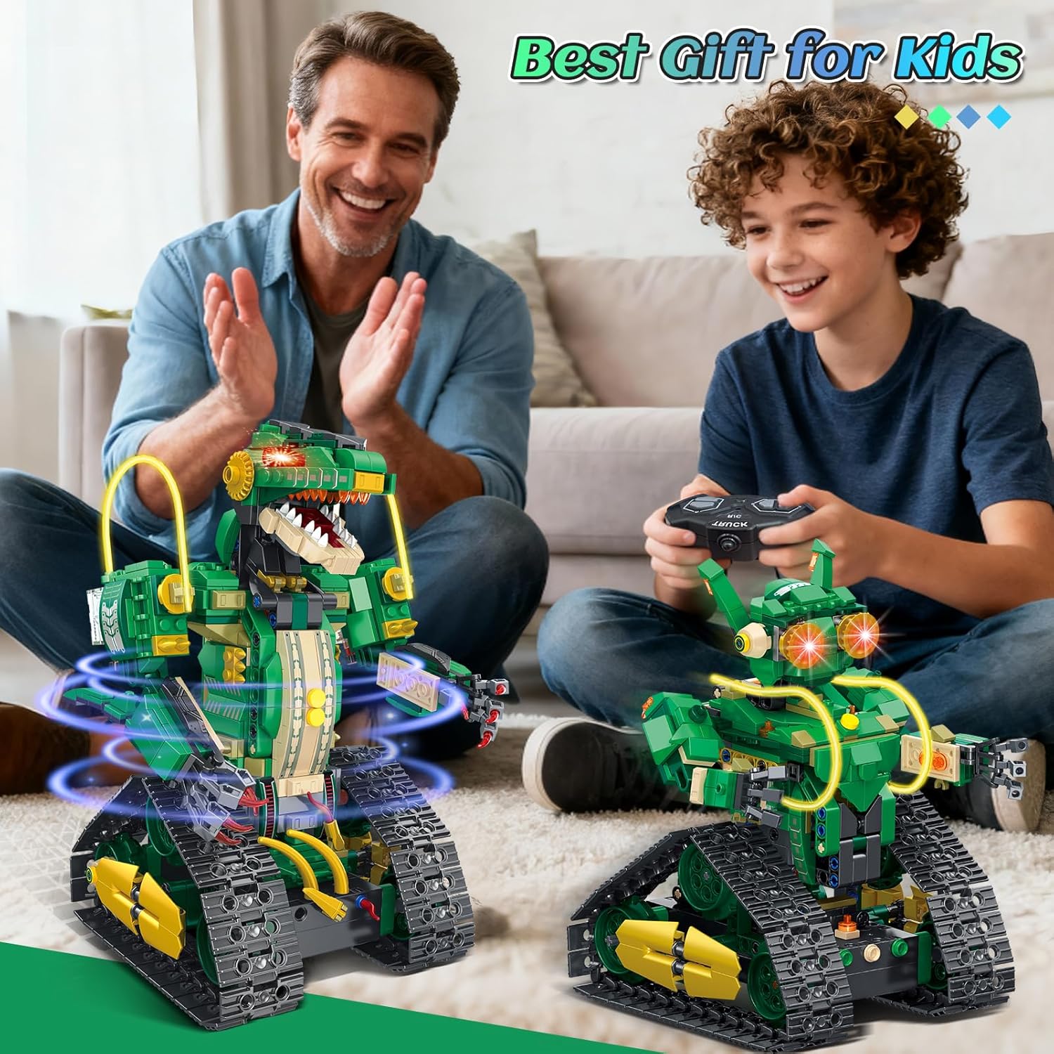 【Set di costruzioni per dinosauri tecnici 5 in 1】 I blocchi per costruzioni di dinosauri tecnologici 5 in 1 HiWEEGO possono essere liberamente assemblati in 5 fantastici modelli. Il nostro kit spazia dal mondo preistorico dei dinosauri ai mondi meccanici futuristici, permettendoti di diventare un "esploratore di dinosauri" e di provare lo stupore dei giganti preistorici mentre costruisci. Inoltre, puoi trasformarti in un "progettista meccanico" e divertirti per ore giocando a giochi robotici creativi. (È possibile assemblare solo un modello alla volta.) 【Funzionamento del telecomando】 Questo set di giocattoli per la costruzione di robot ingegneristici è dotato di un telecomando da 2,4 GHz, che ti consente di controllare facilmente il dinosauro ed eseguire varie azioni: guidare avanti e indietro, girare agilmente a destra e a sinistra e sbloccare vari modelli di gioco come "inseguimento" e "visualizzazione posa". Ciò trasforma il modello assemblato da una mostra statica in un compagno interattivo e divertente. (NOTA: il telecomando richiede 2 batterie AA, vendute separatamente.) 【Fantastici effetti di luce e design ricaricabile】Il dinosauro RC HiWEEGO per bambini ha un cavo luminoso integrato. Basta premere il pulsante della luce sotto il braccio del dinosauro per attivare effetti impressionanti. Alimentato da una batteria al litio ricaricabile da 500 mAh che elimina la necessità di frequenti cambi di batteria, i tuoi bambini potranno immergersi completamente in epiche battaglie tra dinosauri. 【Artigianato magistrale】 Questi blocchi di costruzione con morsetto per robot da 877 pezzi sono realizzati in plastica ABS ecologica di alta qualità con una precisione eccezionale. La testa e la coda del dinosauro possono muoversi da un lato all'altro per monitorare costantemente i "segnali di pericolo" nell'ambiente. I suoi polsi ruotano in modo flessibile e gli artigli possono aprirsi e chiudersi per simulare la presa della preda, ricreando fedelmente l'aspetto realistico del dinosauro. 【I regali perfetti】 Il set di giocattoli educativi sui dinosauri HiWEEGO è un regalo eccellente per gli appassionati di dinosauri. Con il suo design accattivante e gli effetti luminosi, è il regalo perfetto per i bambini dagli 8 anni in su per compleanni, Halloween, Natale, Ringraziamento, Capodanno o altre festività.