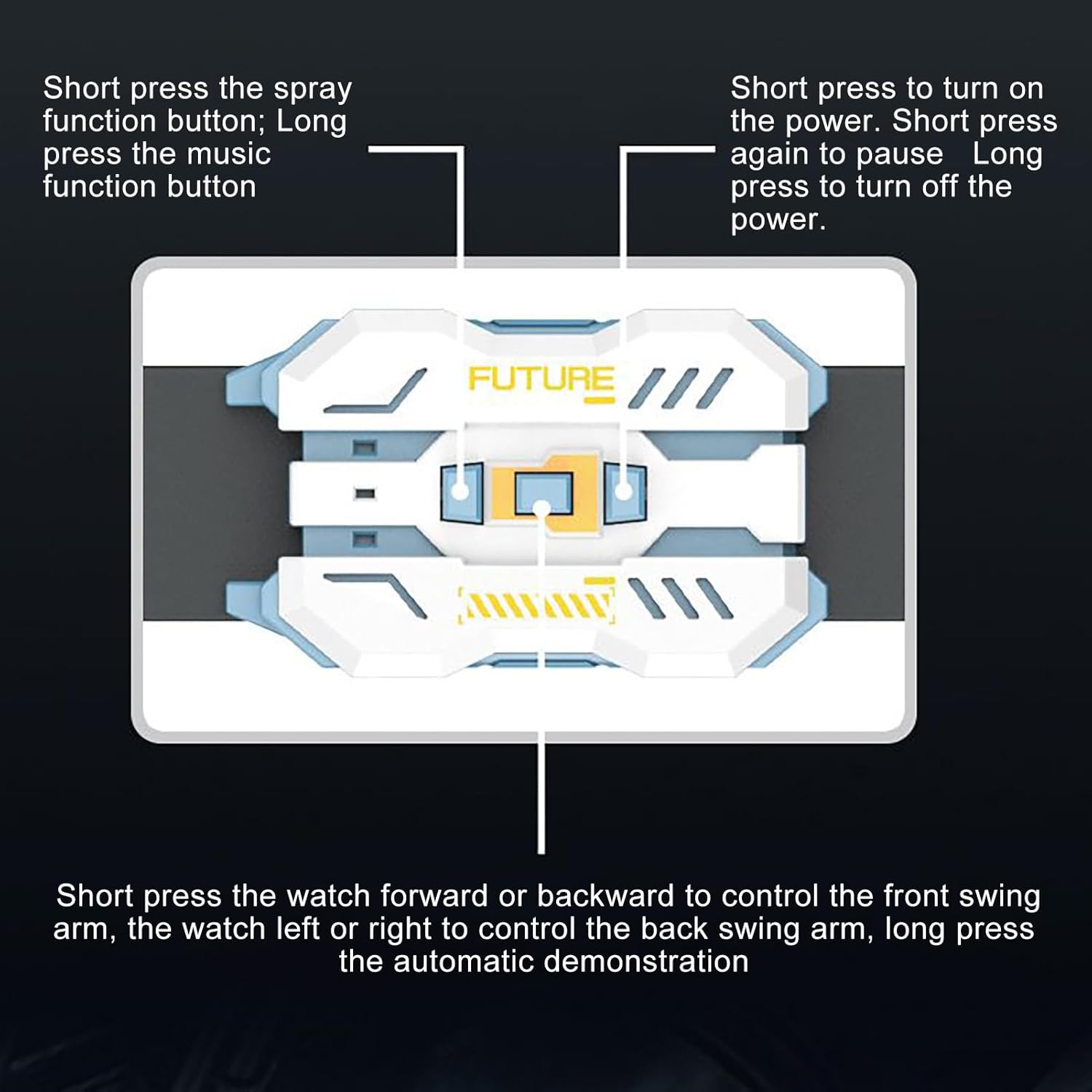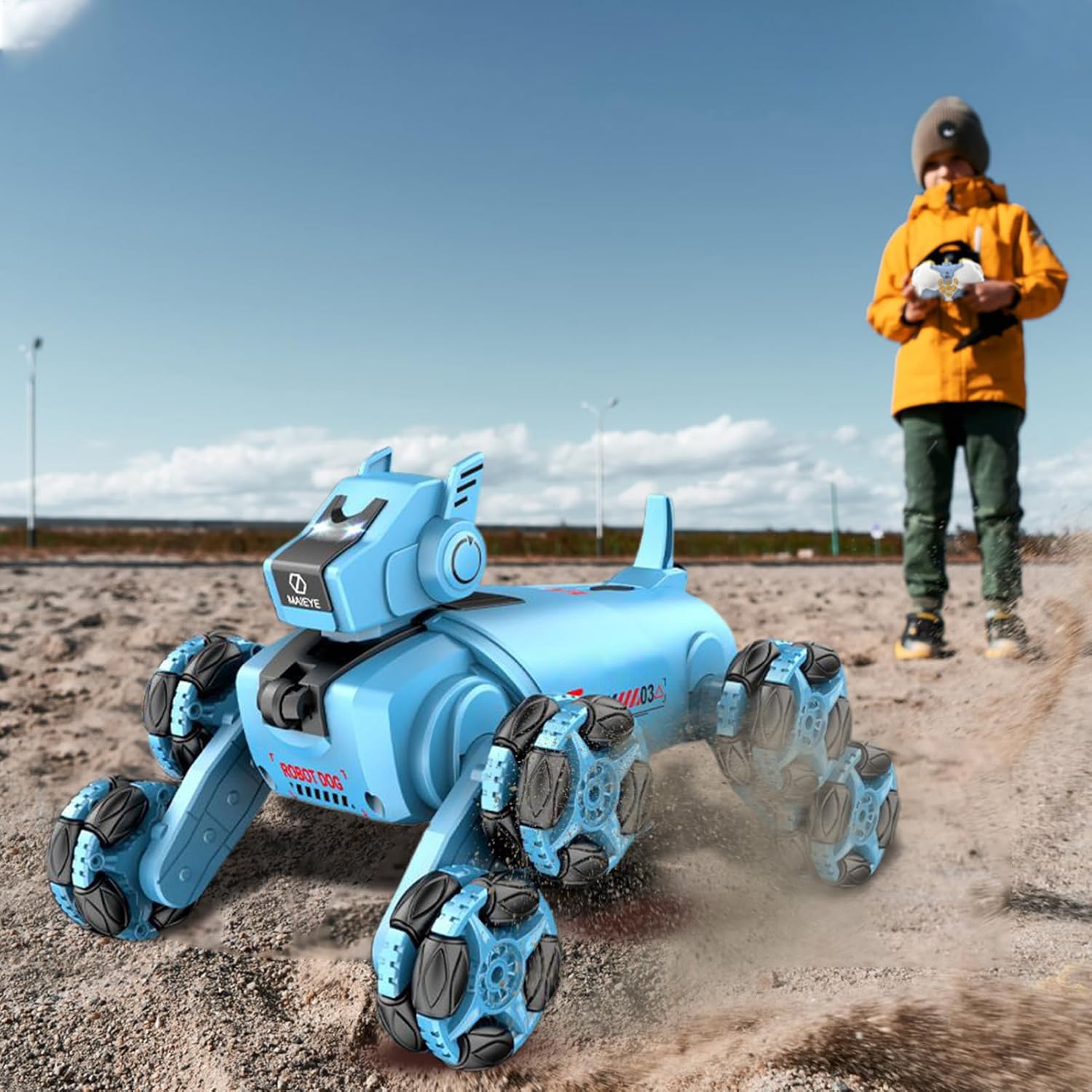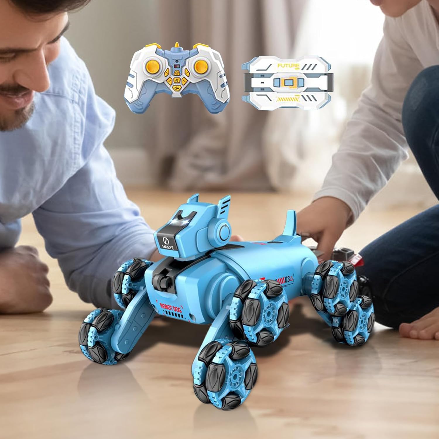 Esperienza di gioco migliorata: con la sua illuminazione fresca e le funzioni musicali dinamiche, questo cane robot porta l'intrattenimento al livello successivo attraverso la rotazione della deriva a 360 gradi e varie acrobazie, offrendo una ricca esperienza interattiva con un solo clic Distribuzione efficiente dell'energia: il cane robot conquista senza sforzo gli ostacoli con i suoi bracci oscillanti anteriori e posteriori, grazie all'innovativo sistema di trasmissione della potenza interno che incanala strategicamente l'energia alle ruote Mecanum, garantendo una grande abilità nel passaggio degli ostacoli Divertimento di lunga durata: grazie alla batteria ricaricabile da 3,7 V inclusa, questo cane robot promuove un coinvolgimento prolungato, rendendo il gioco comodo ed economico a lungo termine Attivazione senza sforzo: inizia a giocare immediatamente attivando il cane robot attraverso l'ombelico e seguendo le istruzioni user-friendly. Goditi un facile controllo interno ed esterno con il telecomando Diversi metodi di controllo: aziona questo cane robot senza sforzo con un telecomando o un orologio intuitivo, dotato di rilevamento avanzato dei gesti per un'esperienza diversificata e coinvolgente