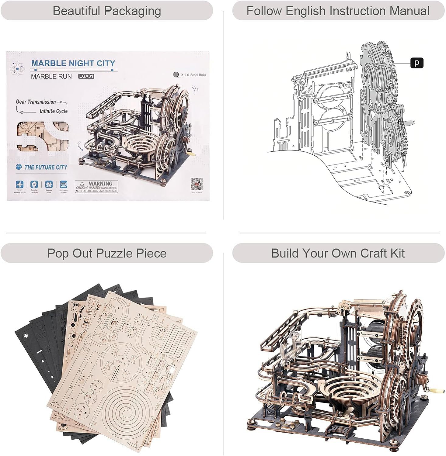 😊 【Se ci sono parti danneggiate/parti perse/i modelli non possono essere eseguiti, contattaci sulla pagina dell'ordine, ti forniremo il servizio post-vendita】 👍 Puzzle della pista per biglie aggiornato: questo set di puzzle in legno 3D utilizza compensato non tossico tagliato al laser, liscio e privo di bave, non è necessaria la colla. Il bordo esterno nero dona una sensazione di freddo e mistero. Si adatta perfettamente al supporto acrilico trasparente. È davvero bello averlo e con cui giocare. 👍Come giocare con il kit modello in legno: LGA01-Night City è un vero gioco di trackball con corsa di biglie, ha costruito una fortezza accattivante. Agitare la maniglia per attivare la marcia. A questo punto, c'è un dispositivo di deflessione che consente alla sfera d'acciaio di entrare in diverse corsie e correre all'impazzata e ruotare sul pendio. 👍Dimensioni e struttura: le dimensioni di assemblaggio di questo puzzle meccanico 3D sono 12,8*8,43*8,98 pollici. Ci sono 253 pezzi in totale. La struttura è composta da distributori a torre, rampe a spirale, protezioni di salvataggio per gru, elevatori a ruote, brevi scivoli e piccoli interruttori, ecc. 👍Descrizione dell'immagine facile assemblaggio: realizzare questo modello di puzzle meccanico in legno 3D richiede non solo cura ma anche pazienza. Perché ci vogliono circa 7 ore per completare l'assemblaggio. La scatola contiene istruzioni in inglese con immagini e testi oltre ai pezzi di ricambio necessari per tutte le custodie. 👍Regali creativi e decorazioni perfette: è affascinante assistere con i propri occhi alla nascita del miracolo della propulsione meccanica. Il miglior regalo di Natale per il tuo ragazzo, fidanzata, modellista o amante dei puzzle. Sembra fantastico ed è ancora più bello giocarci! Una vera sfida per i giovani.