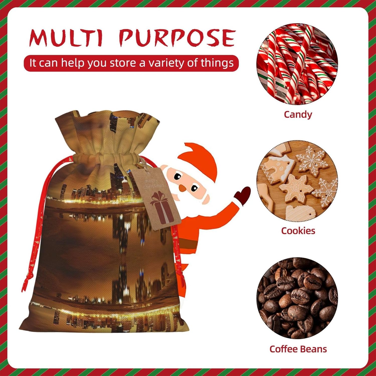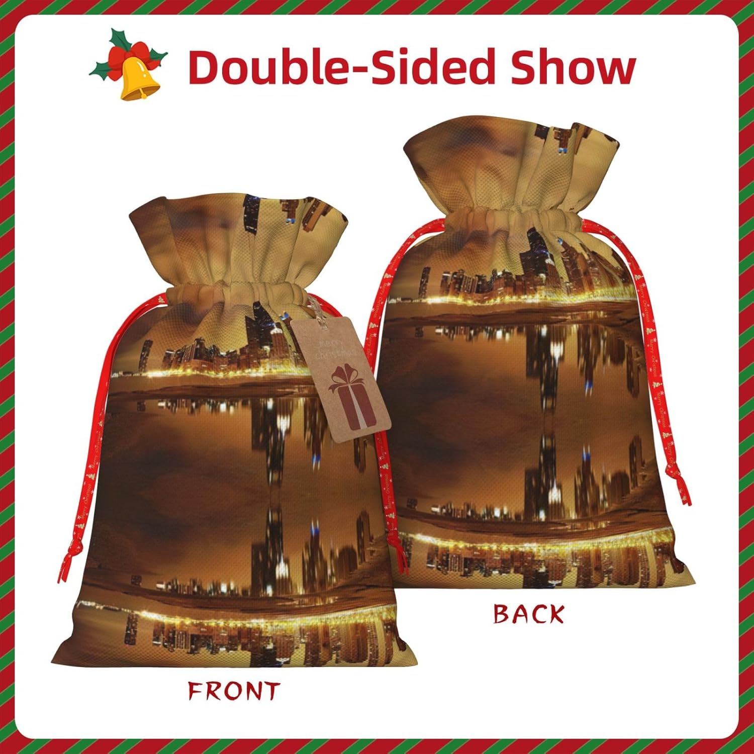 BORSE REGALO DI ALTO VALORE: la borsa Chicago è dotata di sacchetti regalo con cordoncini colorati ed etichette. I sacchetti regalo sono aggiornati con un design con chiusura a coulisse, sacchetti regalo realizzati in poliestere, resistenti e riutilizzabili. Non si strappano come la carta, ottimi per incartare i regali. 10 secondi per incartare un regalo: la borsa Chicago per impacchettare facilmente i regali, è facile da usare, basta inserire il regalo nelle buste, far scorrere l'etichetta regalo attraverso il nastro, tirare il nastro, annodare un fiocco e il gioco è fatto. Puoi evitare il fastidio associato a carta da imballaggio, forbici, nastro adesivo e nastro, risparmiare tempo e molto conveniente. Dimensioni del sacchetto regalo: i sacchetti regalo in 2 dimensioni possono soddisfare le preferenze di diverse persone e sono sufficienti per l'uso quotidiano e la festa di Natale. La S misura 12 x 17,5 cm e la M misura 12 x 30 cm. Sacchetti regalo in formati assortiti sfusi, perfetti per confezionare regali di diverse dimensioni. REGALO IDEALE: questi sacchetti regalo Chicago possono essere riutilizzati molte volte. Un set di sacchetti regalo riutilizzabili sarà un'aggiunta meravigliosa a qualsiasi regalo e migliorerà l'esperienza complessiva del regalo. Inoltre, abbiamo rinforzato il fondo per una maggiore stabilità e una struttura robusta con carichi pesanti. Non facile da rompere per un uso durevole e duraturo. Sacchetti regalo multifunzionali: questi sacchetti regalo di Natale di Chicago possono essere utilizzati per conservare regali di Natale, giocattoli, bambole, cappelli di Natale, caramelle e regali durante una festa di Natale. Conservare i regali in questa borsa darà ai bambini più sorprese perché non sanno cosa c'è dentro.