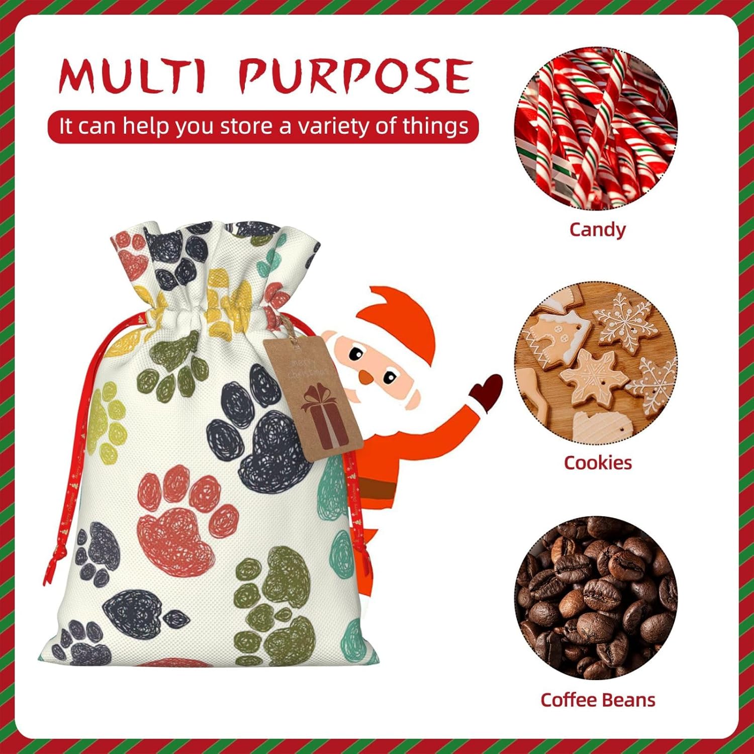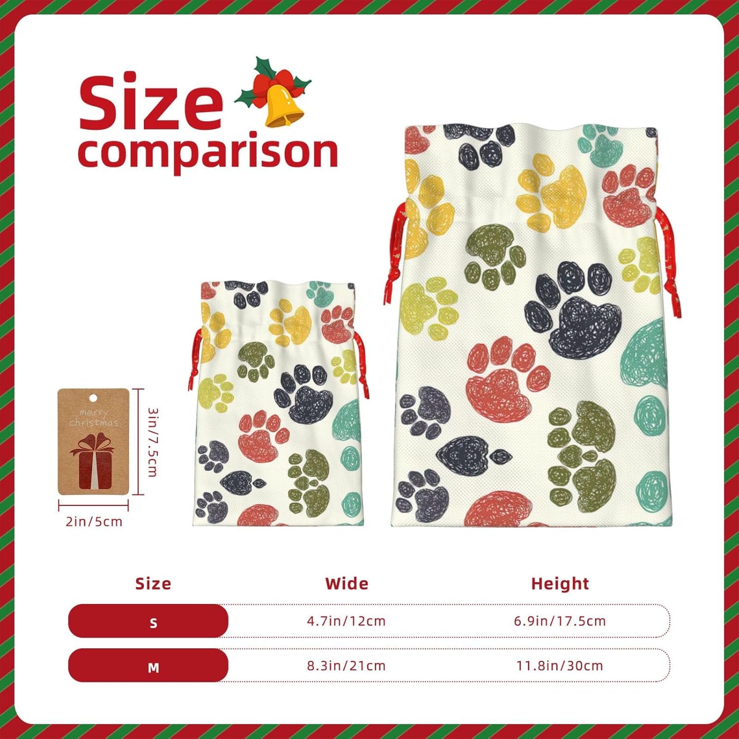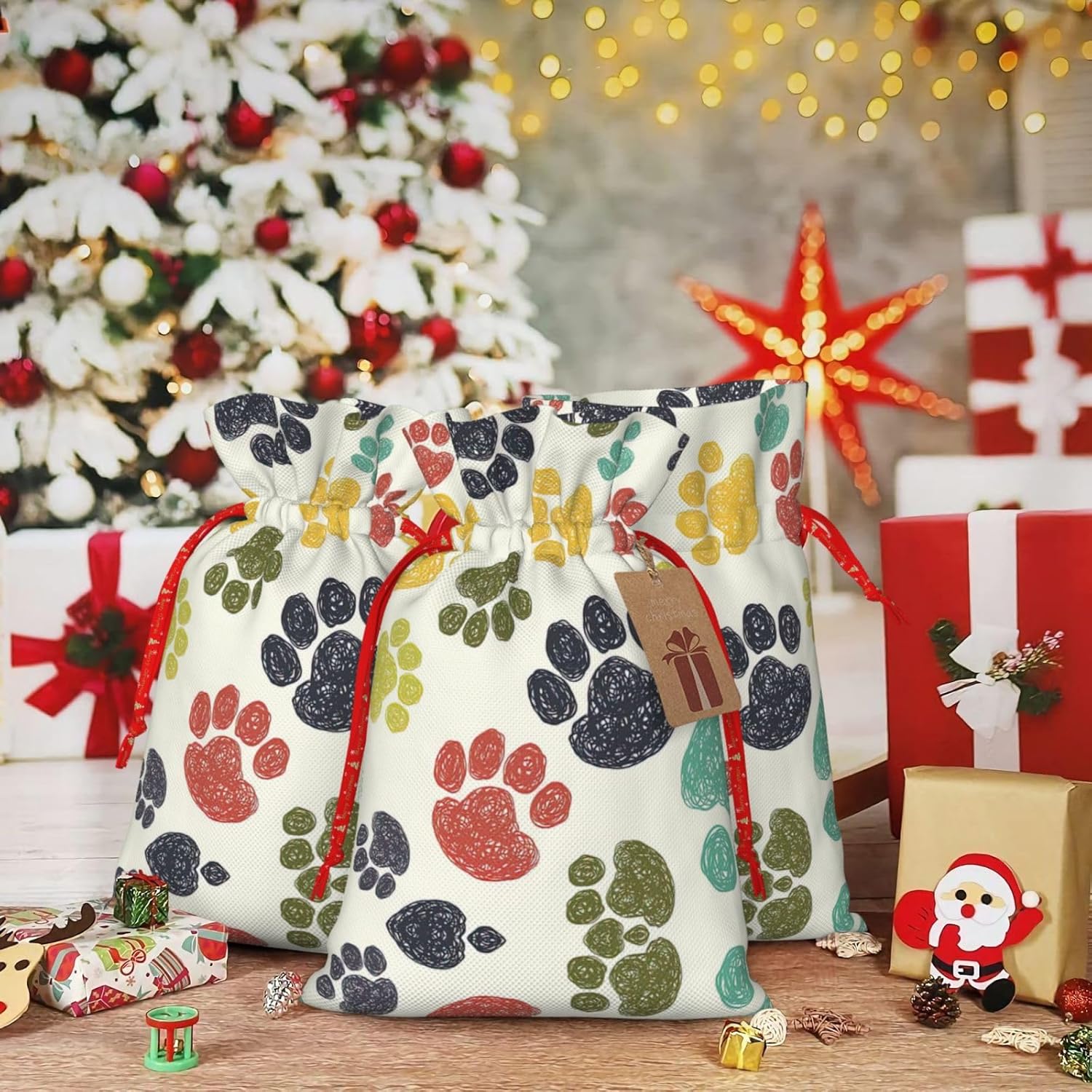 BORSE REGALO DI ALTO VALORE: la graziosa borsa colorata per zampe di cane è dotata di sacchetti regalo con cordoncini colorati ed etichette. I sacchetti regalo sono aggiornati con un design con chiusura a coulisse, sacchetti regalo realizzati in poliestere, resistenti e riutilizzabili. Non si strappano come la carta, ottimi per incartare i regali. 10 secondi per incartare un regalo: il simpatico sacchetto colorato a forma di zampa di cane per confezionare facilmente i regali, è facile da usare, basta inserire il regalo nei sacchetti, far scorrere l'etichetta regalo attraverso il nastro, tirare il nastro, annodare un fiocco e il gioco è fatto. Puoi evitare il fastidio associato a carta da imballaggio, forbici, nastro adesivo e nastro, risparmiare tempo e molto conveniente. Dimensioni del sacchetto regalo: i sacchetti regalo in 2 dimensioni possono soddisfare le preferenze di diverse persone e sono sufficienti per l'uso quotidiano e la festa di Natale. La S misura 12 x 17,5 cm e la M misura 12 x 30 cm. Sacchetti regalo in formati assortiti sfusi, perfetti per confezionare regali di diverse dimensioni. REGALO IDEALE: questi adorabili e colorati sacchetti regalo con zampe di cane possono essere riutilizzati molte volte. Un set di sacchetti regalo riutilizzabili sarà un'aggiunta meravigliosa a qualsiasi regalo e migliorerà l'esperienza complessiva del regalo. Inoltre, abbiamo rinforzato il fondo per una maggiore stabilità e una struttura robusta con carichi pesanti. Non facile da rompere per un uso durevole e duraturo. Sacchetti regalo multifunzionali: questi sacchetti colorati per zampe di cane possono essere utilizzati per conservare regali di Natale, giocattoli, bambole, cappelli di Natale, caramelle e regali durante una festa di Natale. Conservare i regali in questa borsa darà ai bambini più sorprese perché non sanno cosa c'è dentro.