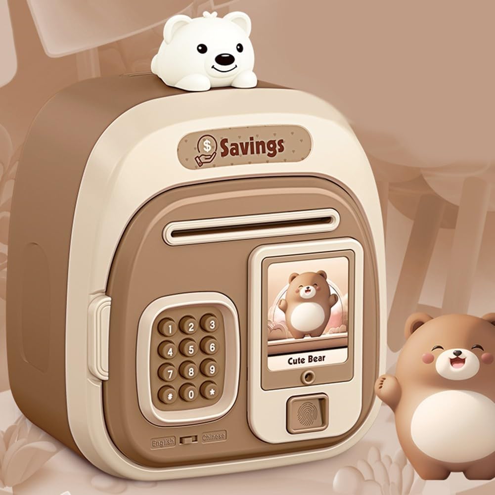 [Sblocco sicuro delle impronte digitali] Questo salvadanaio presenta un avanzato sistema di sblocco delle impronte digitali combinato con protezione con password, che solo gli utenti autorizzati possono accedere ai loro risparmi senza sforzo. [Robusta struttura in ABS] Realizzato in plastica ABS resistente, questo salvadanaio è costruito per resistere all'uso quotidiano e alle cadute accidentali, fornendo un ambiente sicuro per il tuo viaggio di risparmio. [Strumento finanziario educativo] per insegnare ai bambini il risparmio e la gestione finanziaria, questo salvadanaio trasforma il risparmio in un'attività coinvolgente mentre instilla preziose lezioni per la vita. [Consigli per l'uso della batteria] Richiede 3 batterie non ricaricabili "AA" da 5 V; fai attenzione ai livelli della batteria per un funzionamento e una funzionalità fluidi.