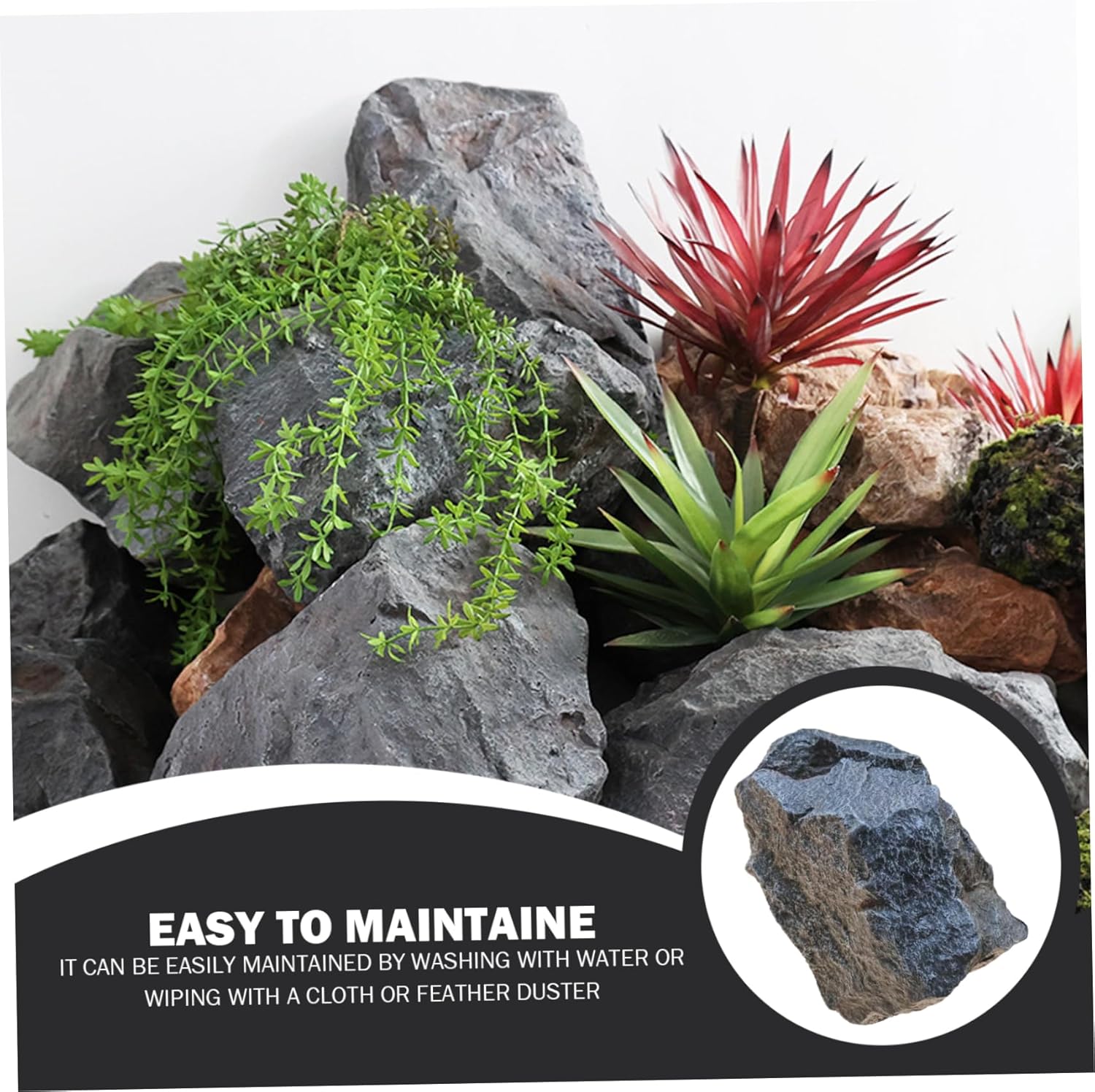 Aspetto realistico: realizzato con materiale di qualità PU, questa roccia falsa artificiale offre un aspetto e una consistenza incredibilmente realistici, mescolando perfettamente in qualsiasi paesaggio o giardino per un'estetica naturale Bassa manutenzione e conveniente: a differenza delle rocce reali, questo falso masso non richiede praticamente alcuna manutenzione, fornendo un modo economico per elevare il look del tuo cortile senza il sollevamento pesante o le richieste di manutenzione continue Stabile e ecologico: realizzato con materiali ecologici, questa finta copertura rocciosa è resistente alle intemperie, protetta da UV e costruita per resistere alle condizioni esterne, garantendo un uso di lunga durata senza sbiadire o cracking Facile installazione e leggera: nonostante le sue dimensioni sostanziali, questa roccia falsa è leggera e facile da posizionare o muoversi, non richiede strumenti o competenze speciali, facendo aggiornamenti del paesaggio rapidi e senza problemi Casi d'uso versatili: perfetto per paesaggi, decorazioni da giardino, oggetti di scena fotografici o addirittura nascondere oggetti sgradevoli come sistemi di irrigazione e scatole di utilità, aggiungendo sia la funzione che la bellezza al tuo spazio all'aperto