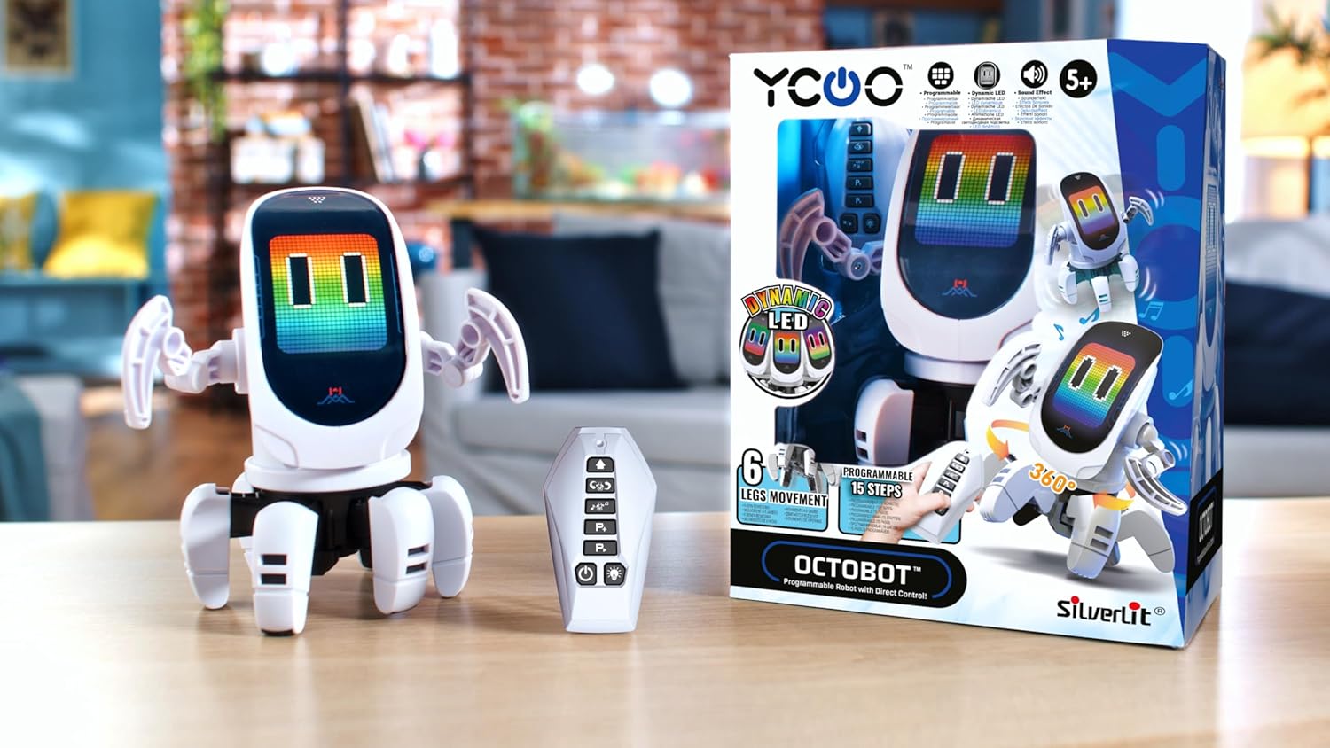 Questo robot programmabile è dotato di una simpatica faccia a LED, può muoversi agilmente, ballare al ritmo della sua musica preferita ed emettere suoni divertenti. Preparati a ballare insieme a Octobot e goditi l'azione robotica!