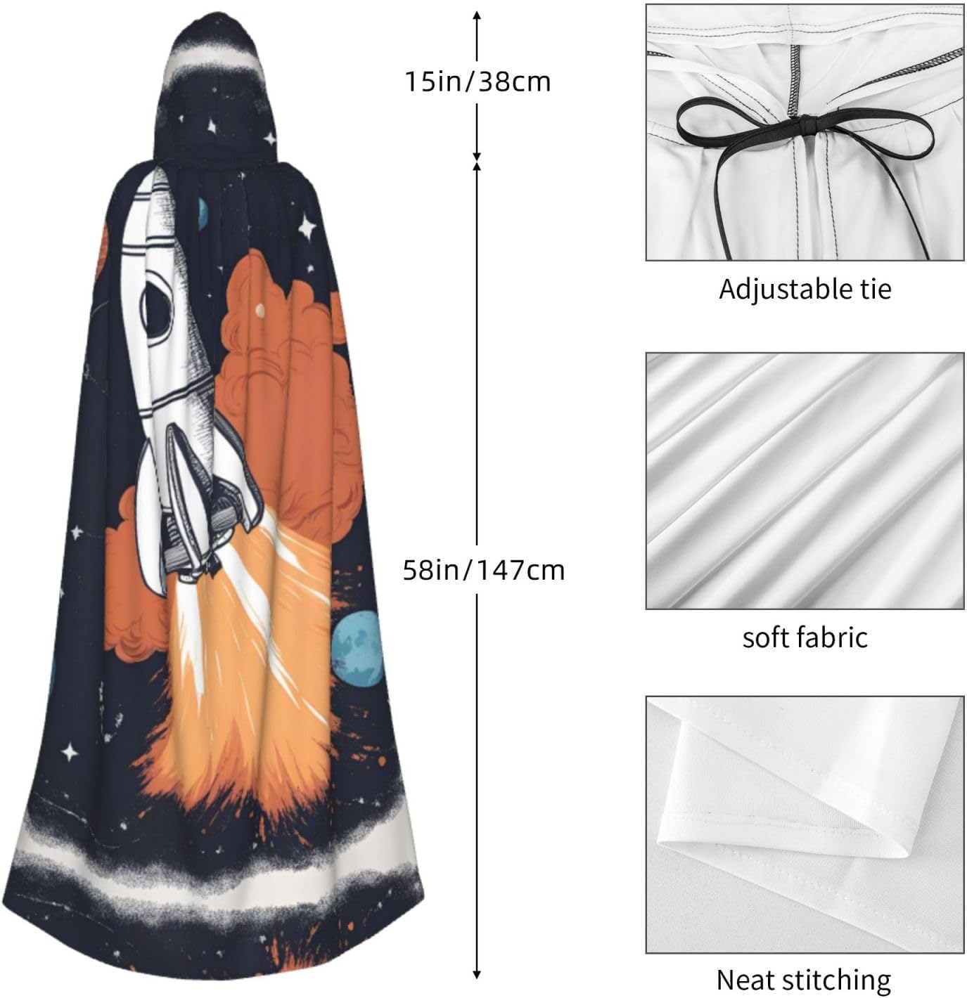 Rocket In Space Robe Mantello Con Cappuccio Halloween Mantello Medievale Mantello Mago Mantello Nero Costume Strega Adulto