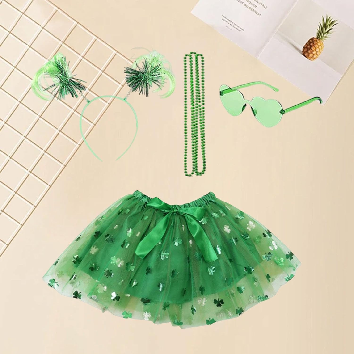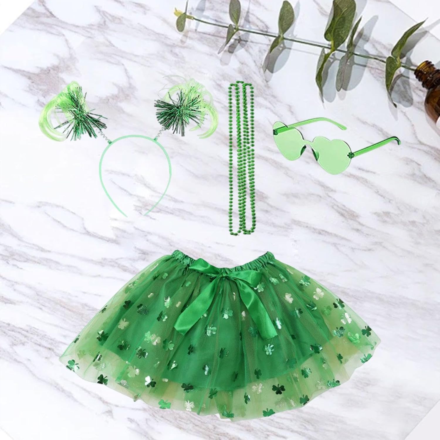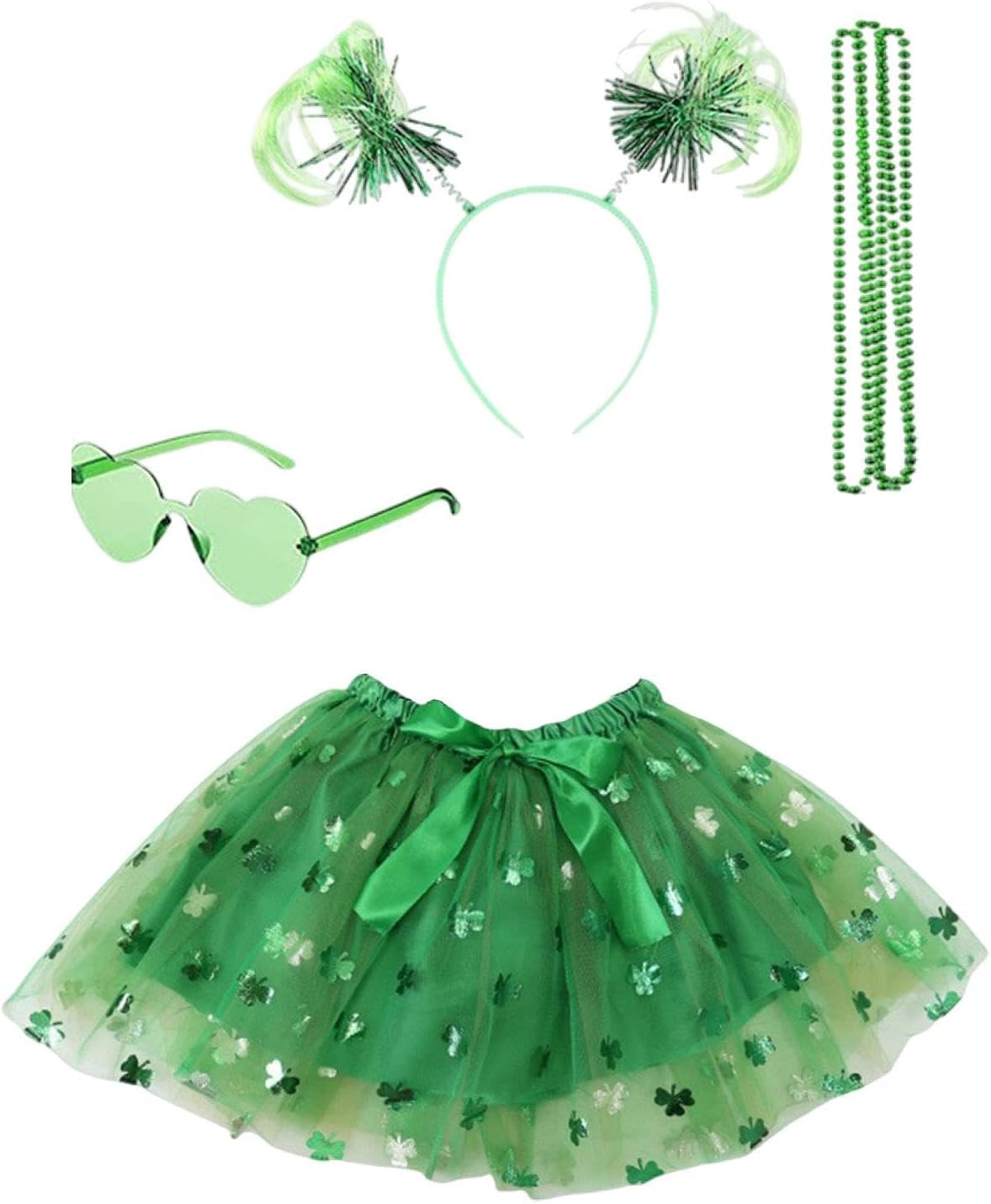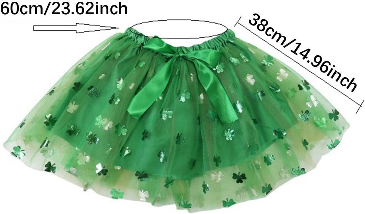 【Design festivo】: questo vestito da festa è decorato con paillettes e ha un design unico e alla moda. Aggiunge un tocco in più di allegria natalizia a qualsiasi celebrazione a tema. Multiuso: questo capo è ideale per festival, vacanze, feste a tema, celebrazioni, mascherate, giochi di ruolo, carnevale e occasioni di cosplay ed è adatto a vari scenari di intrattenimento. 【Set completo per le feste】 Questo set di costumi per il giorno di San Patrizio comprende 1 gonna tutù, 1 fascia per capelli, 1 occhiali a cuore e 1 ciondolo lungo, perfetto per le tue celebrazioni festive. 【Materiali di alta qualità】 La gonna tutù è realizzata in tessuto di alta qualità con lavorazione accurata e presenta una cintura elastica per un comfort leggero e una lunga durata, che la rende adatta per un uso ripetuto. 【Ottimo regalo】 Questa gonna in tulle in costume è un ottimo regalo per compleanni o occasioni festive e perfetta per deliziare familiari o amici durante celebrazioni speciali.
