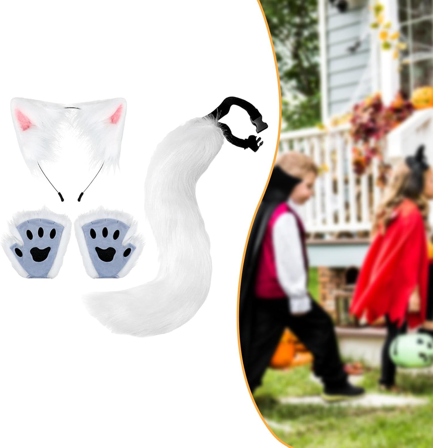 【Materiale】: Realizzato in materiale poliestere, questo set di orecchie e coda presenta dettagli delicati, tocco confortevole, durevole nell'uso 【La confezione include】: ogni confezione include 1 fascia per orecchie, 1 coda e 1 paio di guanti per zampe, tutto il necessario per completare il tuo look 【Dimensioni del prodotto】: la fascia misura 17 cm x 16 cm/6,69 pollici x 6,30 pollici, i guanti misurano 20 cm x 20 cm/7,87 pollici x 7,87 pollici e la coda misura 50 cm/19,69 pollici, il che li rende di grandi dimensioni sia per adulti che per bambini 【Facile da indossare】: la coda con fibbia per cintura si adatta a qualsiasi vestito e vita e la fascia si adatta alla maggior parte delle acconciature diverse 【Ampia applicazione】: adatto per feste a tema, feste in maschera, cosplay, feste in maschera, Halloween e altro ancora