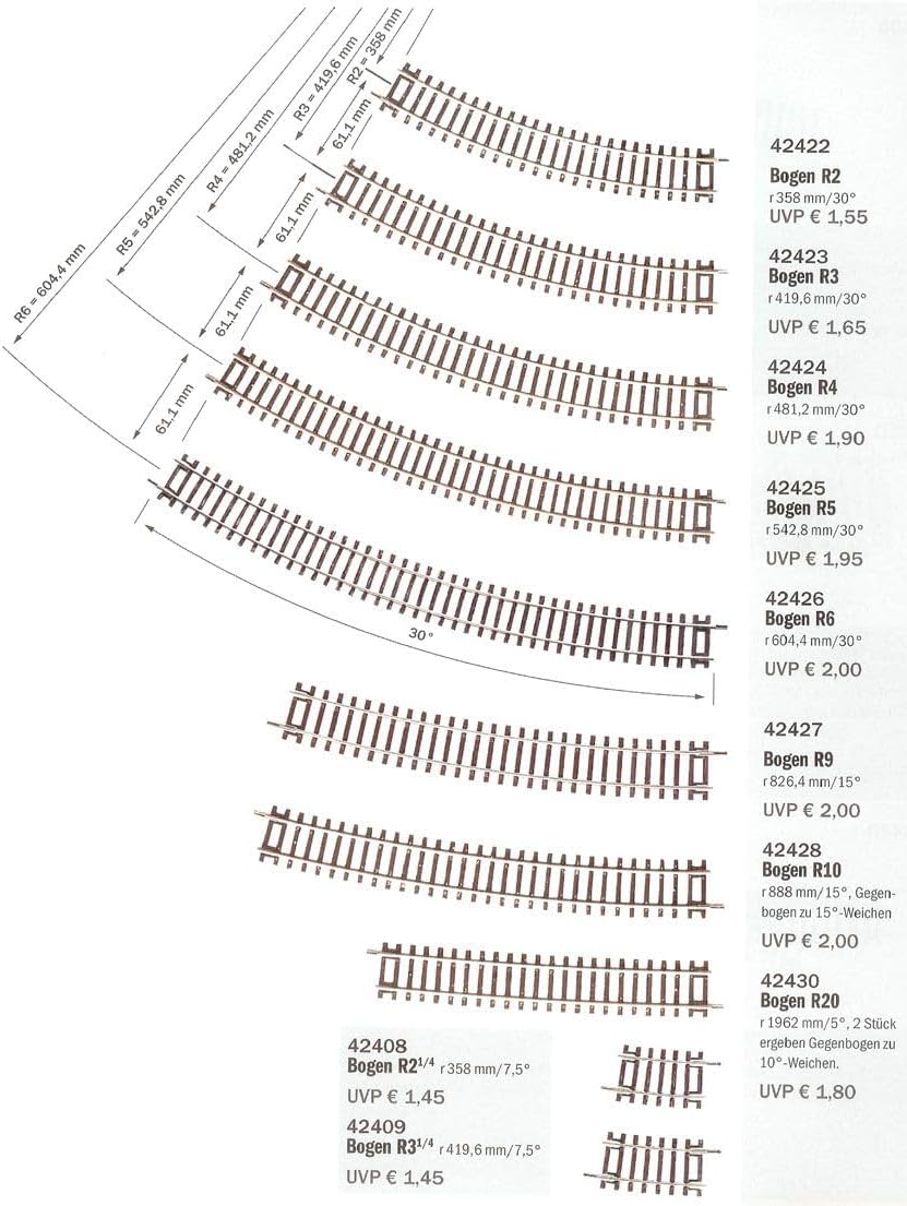 42409 H0 RocoLine (senza letto), binario curvo 7,5° 419,6 mm Contenuto: 1 pezzo