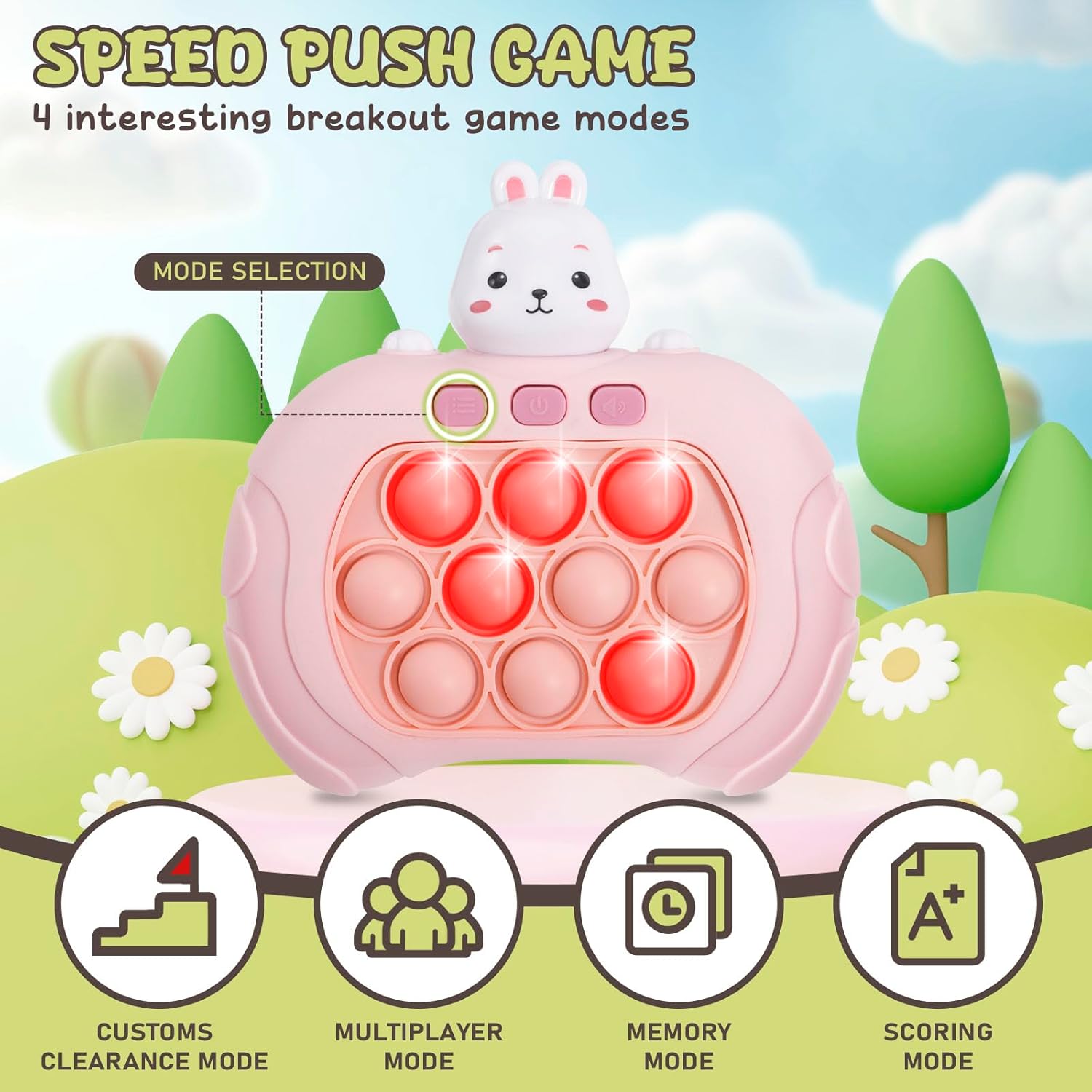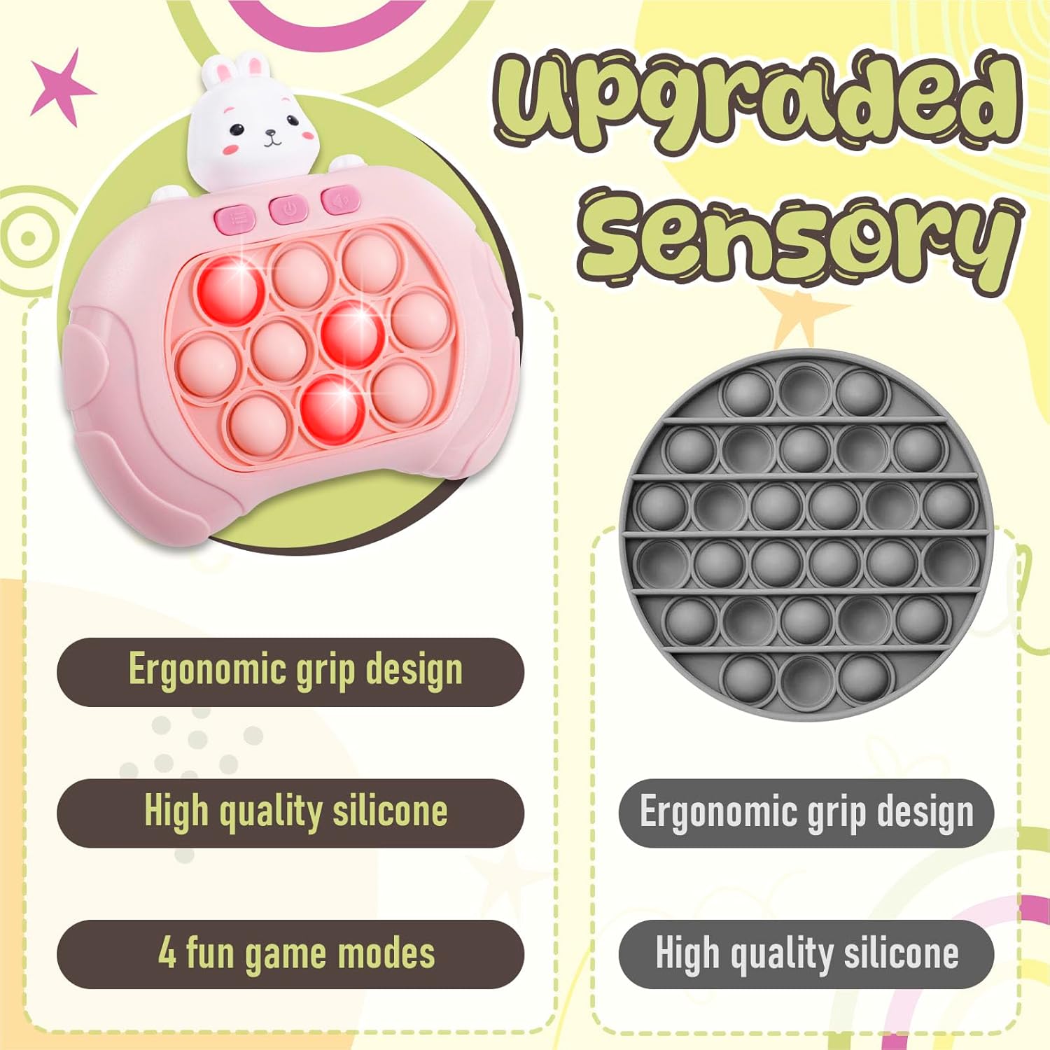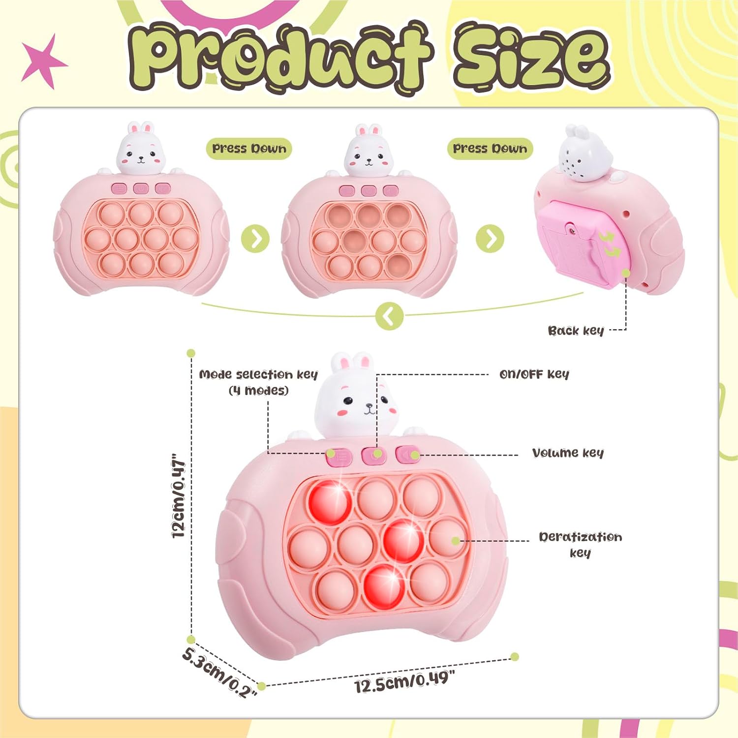 【Gioca sempre e ovunque】 Il nostro controller di gioco veloce è molto piccolo e facile da trasportare, quindi puoi prenderlo e giocare sempre e ovunque. A casa o in viaggio, questo gioco può divertirti. 【Giocattoli antistress】 I popit elettronici sono accompagnati da musica ed effetti sonori, che possono migliorare la tua esperienza durante i giochi e ottenere un relax più perfetto. puoi mettere i giocattoli nella borsa e portarli con te o metterli in ufficio, qualunque cosa accada. il tempo può alleviare lo stress e portare piacere nella tua vita. 【Design perfetto】 Il giocattolo pop it squeeze è realizzato in silicone di alta qualità, che si sente bene quando viene schiacciato ma non è facile da rompere. la forma è adatta alla postura della mano ed è progettata ergonomicamente. non ti sentirai dolorante e stanco dopo. gioca a lungo, permettendoti di giocare felicemente in qualsiasi momento. 【4 modalità di gioco divertenti】 I giochi Quick Pop hanno un totale di quattro diverse modalità di passaggio a livello, tra cui passaggio a livello, memoria, punteggio e multiplayer. Esistono 50 livelli di passaggio a livello, che ti offrono più sfide e divertimento. ci sono i tasti del volume, un tasto di accensione, un tasto di selezione della modalità e del livello, seguito da un tasto di conferma quando viene confermato l'inizio del gioco, la luce lampeggia con il gioco. 【Regalo perfetto】 I giocattoli da spremere Popite sono molto adatti da regalare alla tua famiglia e ai tuoi amici. Sono molto adatti per i giochi interattivi genitore-figlio. Possono esercitare la coordinazione occhio-mano dei bambini e migliorare il pensiero cerebrale. stress lavorativo e... un fantastico giocattolo antistress per la noia in movimento.
