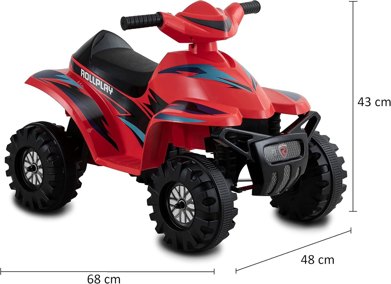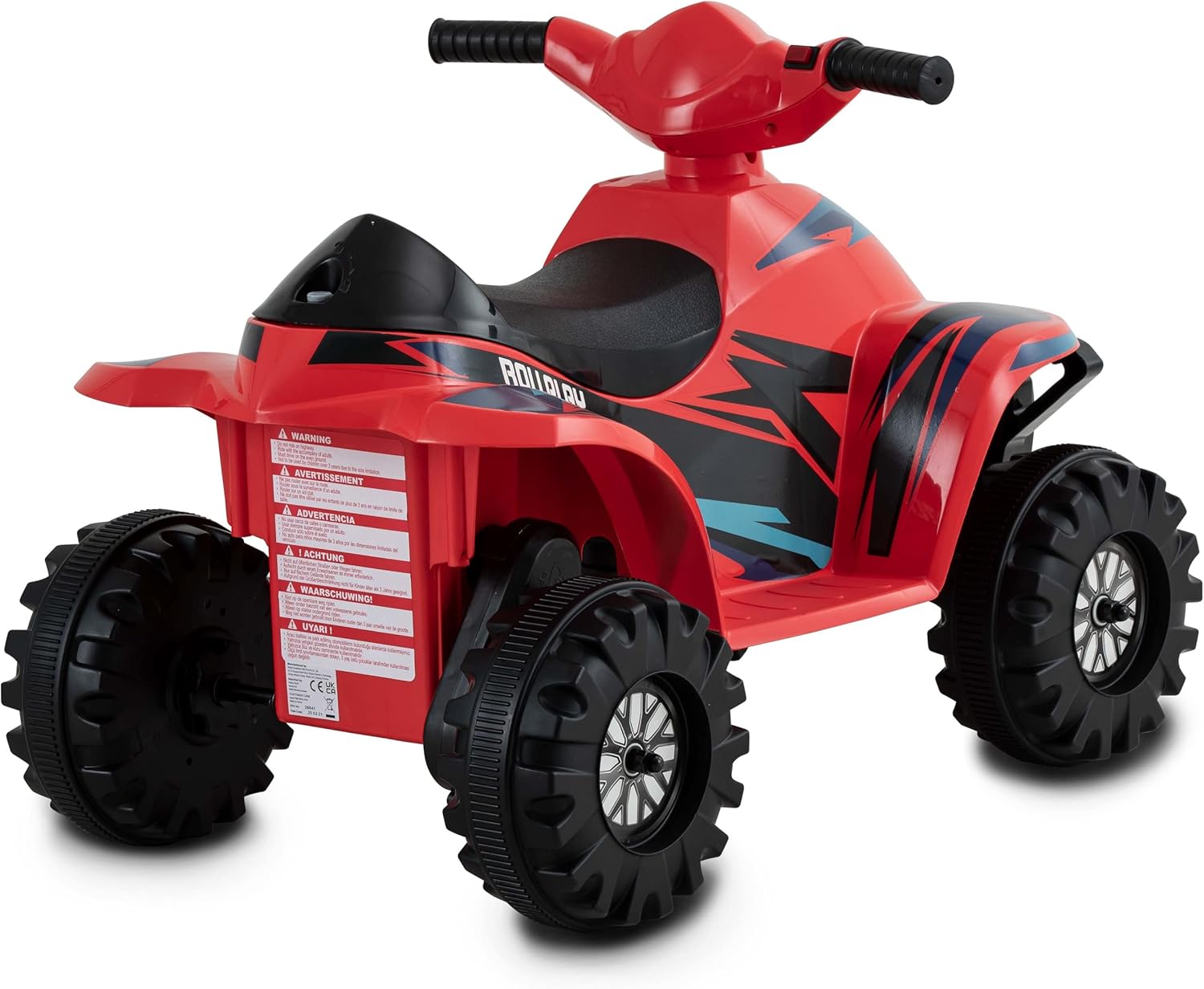 Facile da usare con un pulsante – Il Rollplay Mini Quad Racing da 6 V è perfetto per i piccoli principianti. Con una semplice pressione di un pulsante, i bambini possono facilmente avviare e fermare il veicolo, garantendo un funzionamento sicuro e conveniente Ideale per lo sviluppo delle capacità motorie. Con una velocità di 3 km/h, il mini quad offre il perfetto equilibrio tra divertimento e sicurezza. I bambini piccoli possono sviluppare le loro capacità motorie, costruire fiducia in se stessi e rafforzare il loro senso di equilibrio Comfort e facilità d'uso - Maniglie imbottite, accesso basso e sedile di supporto integrato garantiscono il massimo comfort e facilità d'uso. I colori vivaci e il design fresco del mini quad garantiscono ore di divertimento di guida Funzionamento a batteria e durevole: il mini quad è alimentato da una batteria da 6 Volt inclusa nella confezione. La batteria può essere ricaricata comodamente tramite il caricabatterie in dotazione, che consente un uso duraturo Promozione delle competenze di guida: il mini quad non solo offre divertimento, ma favorisce anche lo sviluppo delle abilità di guida nei bambini piccoli. È un modo divertente per acquisire la prima esperienza di utilizzo di veicoli a rampa