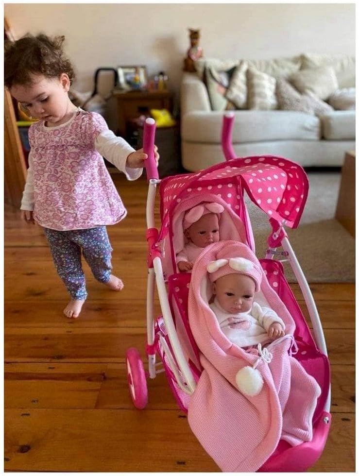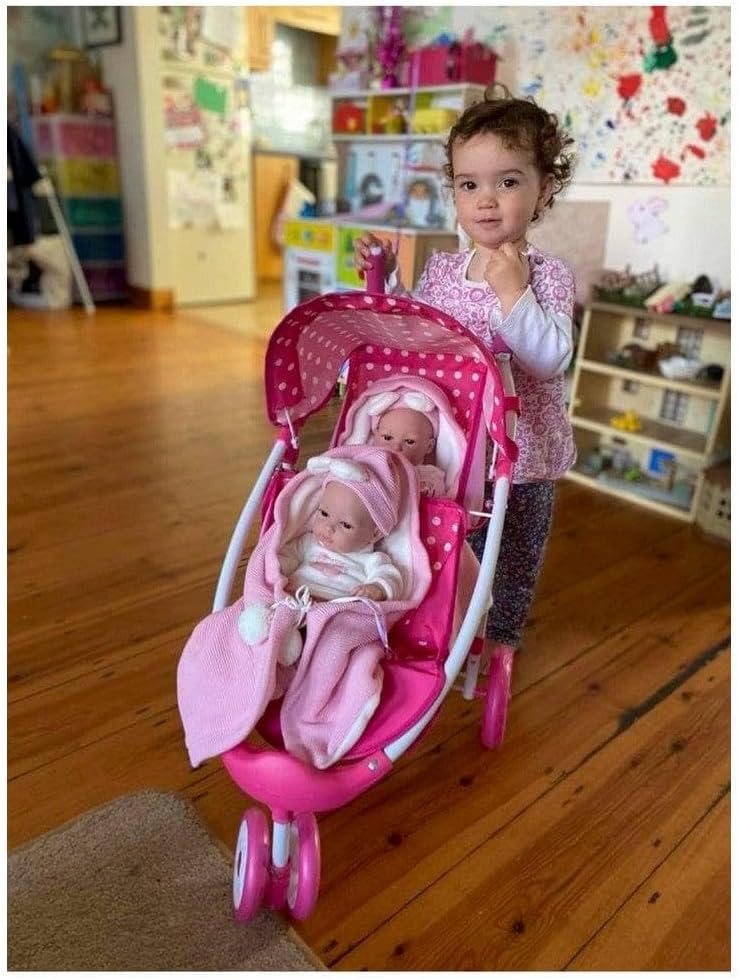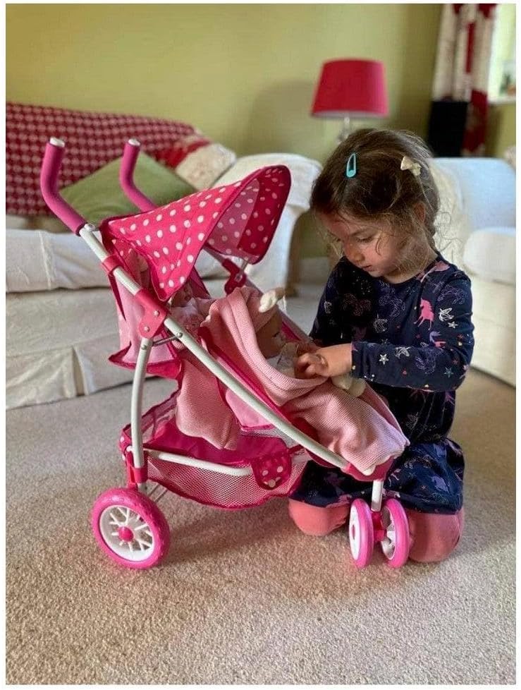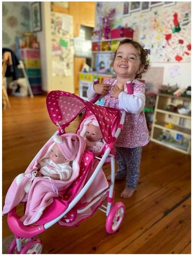 The Dotty tandem doll's pram has room for two 2 places for 2 dolls or teddy bears - facing each other With a handle height of 65cm, the Dotty is suitable for ages 3 and up