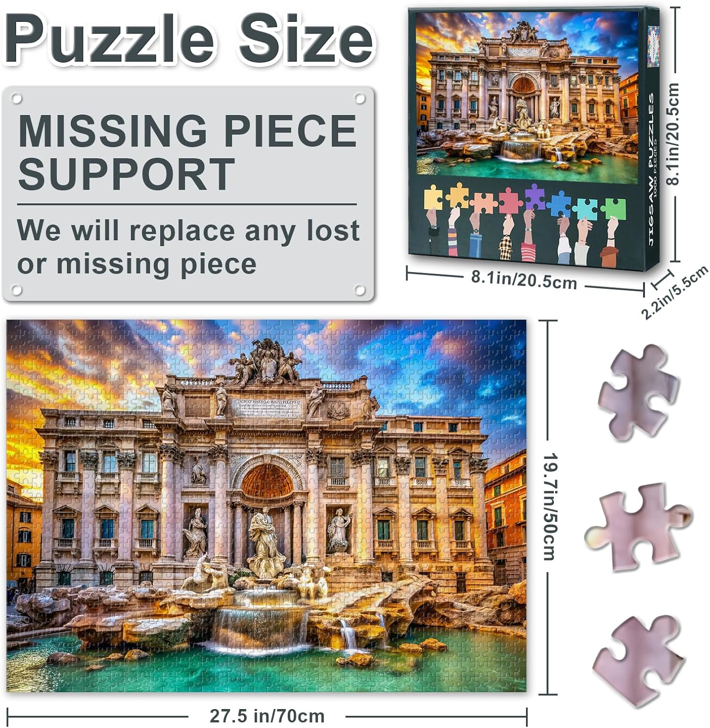 Lavorazione di alta qualità: il puzzle sofisticato è realizzato in cartone riciclabile a tre strati ed è tagliato con precisione per una tenuta perfetta. Il puzzle a mosaico per adulti convince con la stampa ad alta definizione, la superficie opaca e i bordi lisci. Zonizzazione sul retro – La nostra speciale etichetta sul retro con suddivisione in zone evita il caos durante il puzzle. Le lettere sul retro possono essere ignorate se si desidera superare la sfida senza assistenza. Gioco di puzzle perfetto - puzzle calma la mente e offre un passatempo rilassante. Insieme alla famiglia o agli amici, il puzzle diventa un'esperienza di comunità speciale che unisce. Regalo ideale e decorazione da parete: questo colorato puzzle da 1000 pezzi è il regalo perfetto per gli adulti e aggiunge un'atmosfera speciale a qualsiasi stanza. Porta gioia e fascino nella tua casa. Parti mancanti? Nessun problema. - Se mancano parti, si prega di contattarci immediatamente. Troveremo sicuramente una soluzione soddisfacente per voi.