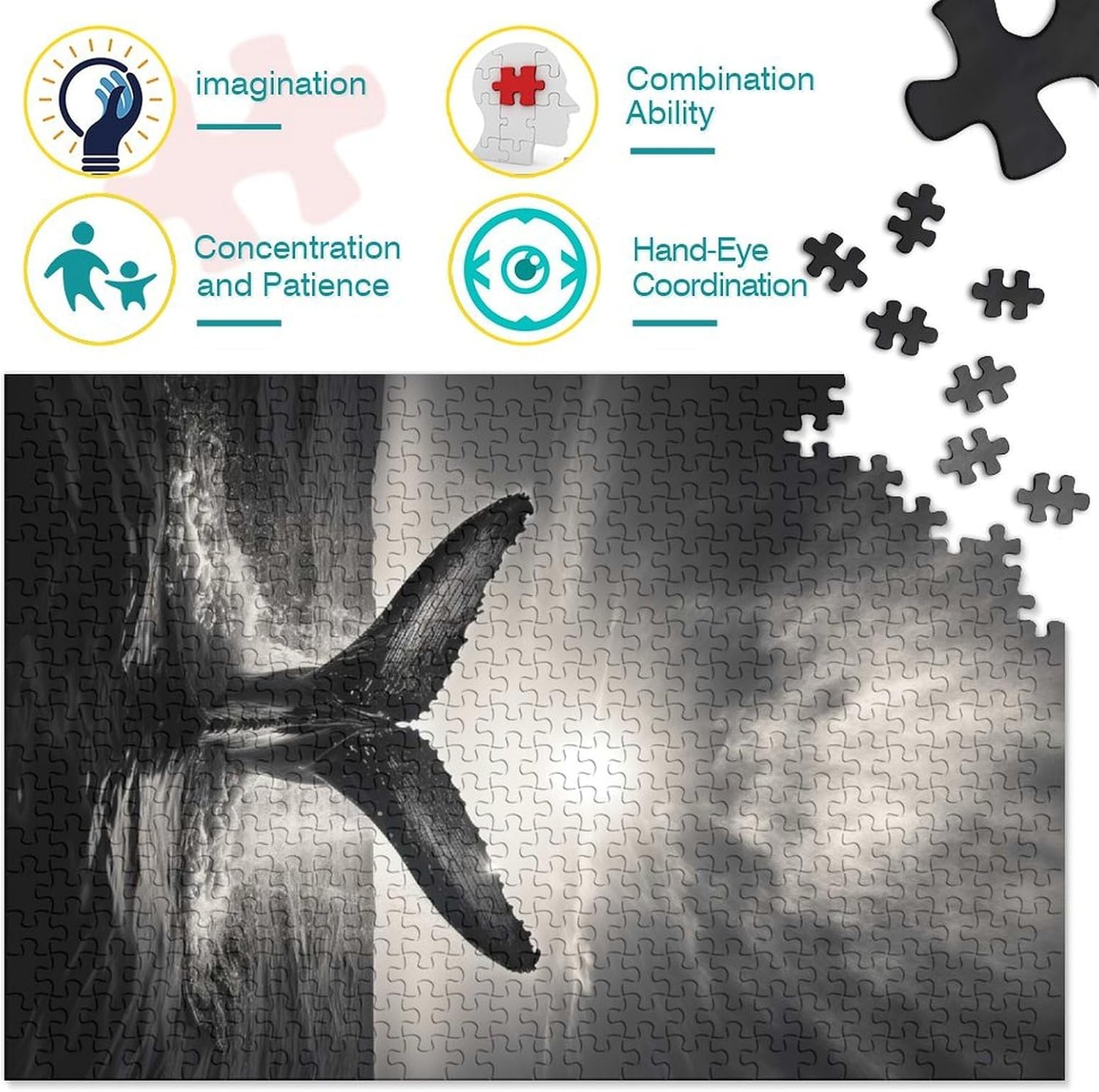【Rompecabezas de 38 x 26 cm/1000 pezzi】Las líneas divisorias son claras y no desprenden olor. Emociona a toda la familia y ofrece horas de diversión y entretenimiento armando este increíble rompecabezas. El rompecabezas Breaching Whale es uno de los juguetes para adultos ideales para disfrutar del tiempo libre con familiares y amigos. 【Tamaño y Material】rompecabezas de madera: 500 pezzi (52 x 38 cm), 1000 pezzi (75 x 50 cm); Tamaño del rompecabezas de papel: 38 x 26 cm / 1000 pezzi. Recomendado para adultos y niños de 12 años y más. 【Tamaño final】Este rompecabezas Breaching Whale está fabricado con tecnología de impresión premium avanzada. Cada pieza tiene una forma única para proporcionar un nivel extra di autoevaluación y concentración, y puede inspirar eficazmente la reflexión, entrenar el juicio y la paciencia. 【Regalo perfecto】Los rompecabezas son un regalo di cumpleaños o Navidad muy significativo para niños, parejas, amigos, colegas y padres. Es adecuado para adultos y niños mayores de 14 años, y es una opción ideal para cumpleaños o regalos de Navidad. 【Garantía de satisción del 100%】Te encantarán los rompecabezas de 38 x 26 cm/1000 pezzi, elegantes y con un diseño moderno. Se tienes alguna pregunta sobre los rompecabezas o te falta una pieza, puedes contactarnos en cualquier momento; te brindaremos un eccellente servicio.