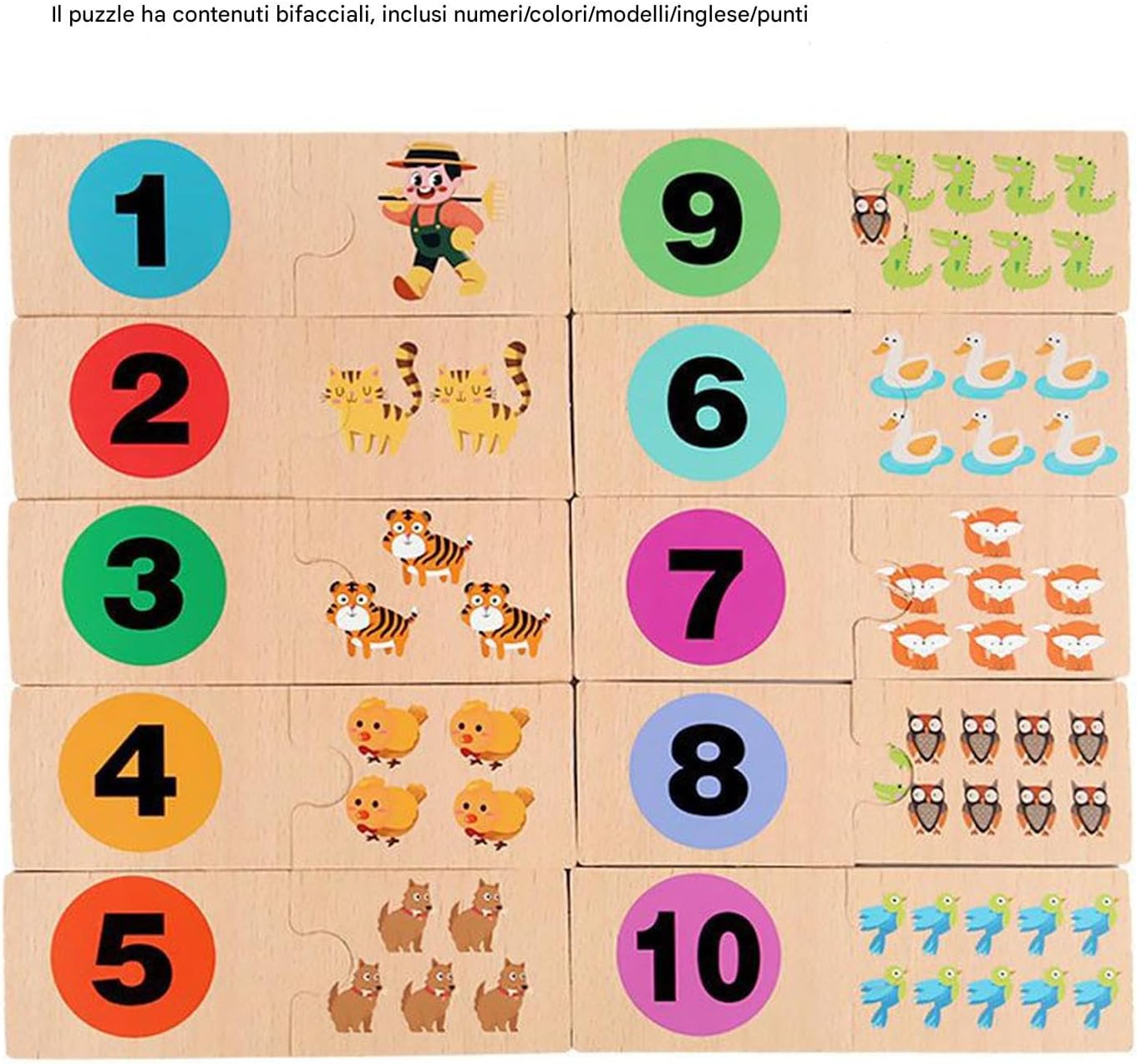 Migliorare l'familiare: questo puzzle ecologico e sicuro per bambini supporta le abilità matematiche, aiutando nel riconoscimento dei numeri e nella classificazione attraverso momenti di gioco collaborativo tra genitori e figli di abbinamento incrociato: Migliora le abilità di problem solving mentre promuove il miglioramento della memoria attraverso coinvolgenti sfide di abbinamento, supportando lo sviluppo cerebrale prescolare con un'attenzione all'apprendimento interattivo che favorisce naturalmente la crescita cognitiva e il ragionamento logico durante il gioco esplorativo Strumento di apprendimento completo: Combina il riconoscimento di colori e forme con l'associazione di numeri e parole, offrendo un puzzle didattico double-face che funge da giocattolo educativo completo per l'esplorazione matematica precoce, stimolando multiple competenze in modo divertente e coinvolgente Organizzatore di Puzzle Portatile: Un giocattolo educativo da viaggio con soluzione di archiviazione in legno, che promuove l'ordine dei puzzle e insegna ai bambini l'importanza di mantenere spazio organizzato in modo divertente Coordinazione occhio-mano: Gioco didattico a incastro che favorisce lo sviluppo logico, aiutando i bambini a rafforzare la motricità fine e a migliorare la coordinazione tra occhi e mani in modo efficace e divertente