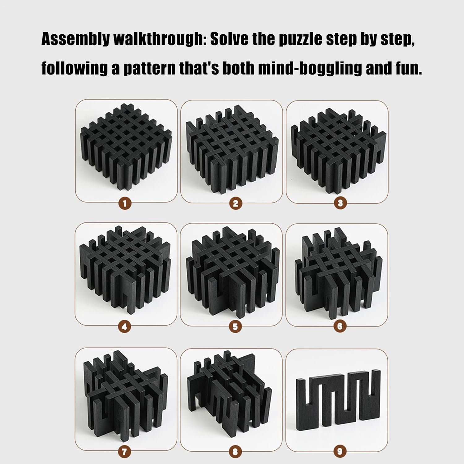 Rompicapo Pratici e Decorativi: Questi rompicapo per bambini forniscono una funzionalità versatile raddoppiando come ornamento da scrivania, assicurando strumenti convenienti e pratici per la stimolazione mentale. Abbelliscono qualsiasi area di lavoro o zona gioco, promuovendo un ambiente coinvolgente che favorisce la concentrazione e il divertimento in modo naturale. Portabilità e Convenienza: I rompicapi in legno vantano un design adatto ai viaggi che semplifica il trasporto e la conservazione, consentendo agli utenti di portare i propri enigmi preferiti ovunque, da incontri familiari a momenti di solitudine. Questa portabilità conveniente rende i puzzle un compagno affidabile per sfide mentali, assicurando intrattenimento senza sforzo in diverse situazioni quotidiane. Migliora la Risoluzione Problemi: Questi rompicapo con 12 di legno incastrati stimolano il pensiero logico e l'immaginazione spaziale, aiutando a sviluppare abilità cognitive essenziali mentre ci si diverte con un'attività stimolante e gratificante a casa o durante il libero. Ideali per migliorare le capacità di problem solving in modo coinvolgente e piacevole per tutta la famiglia. Materiale Eccellente: Con una costruzione robusta in legno, questi rompicapo per bambini piccoli garantiscono longevità eccellente e un utilizzo sicuro, consentendo ai bambini di sviluppare concentrazione e creatività mentre interagiscono ripetutamente con il set in scenari indoor e di apprendimento di gruppo. I materiali di alta qualità contribuiscono a un'esperienza di gioco educativa e duratura, perfetta per stimolare la curiosità e le abilità sociali in diversi contesti. Esperienza di Gioco Potenziata: Realizzati con un a incastro distintivo, questi rompicapo per adulti aumentano l'interattività e il divertimento, servendo come attività perfetta per sfidare la mente in situazioni di gruppo o momenti di relax individuale. Questo design innovativo garantisce ore di intrattenimento avvincente, migliorando le abilità cognitive e offrendo un'esperienza di gioco e piacevole in contesti sociali o personali.
