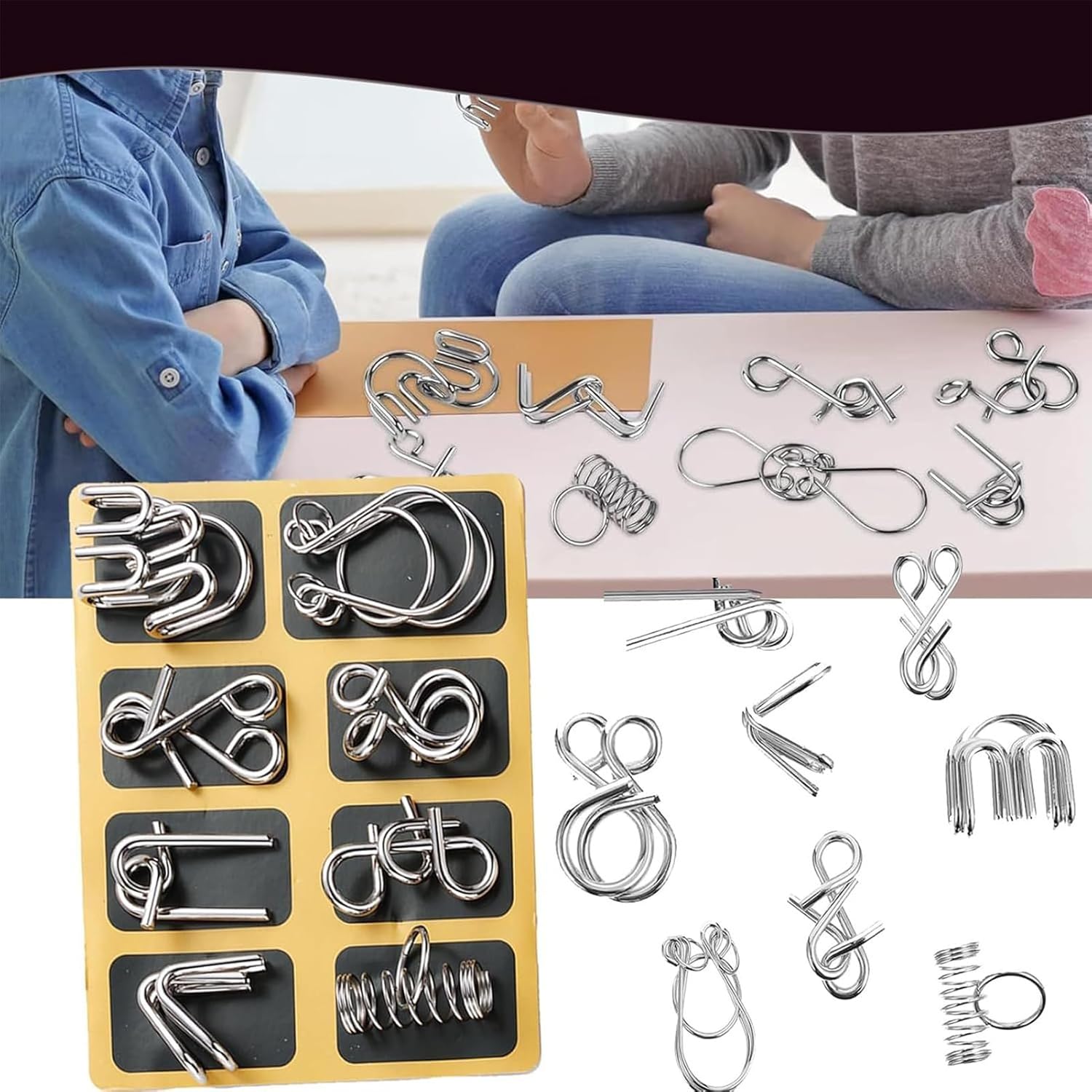 Potenziatore Immaginazione Spaziale: I rompicapo metallici sviluppano concentrazione e perseveranza durante la risoluzione, offrendo un'esperienza gratificante che rinforza le abilità di pensiero logico in contesti informali o competitivi, ideali per appassionati di ogni età Senso di Realizzazione: Con 24 puzzle in filo metallico, il set aiuta a costruire fiducia progredendo attraverso difficoltà variabili, favorendo un senso di compimento e rendendolo una scelta coinvolgente per divertimento familiare o relax solitario Adatto a Tutte le Età: I rompicapo in metallo offrono un esperienza rilassante con dimensioni compatte che si adattano comodamente a mani di tutte le misure fornendo un modo coinvolgente per distendersi adatti come gioco da scrivania per adulti che cercano chiarezza mentale Regalo Creativo: Un pensiero premuroso per bambini in occasioni come compleanni o feste, questi rompicapi in metallo sviluppano abilità cognitive in modo giocoso. Esprimono affetto e attenzione attraverso un'esperienza divertente ed educativa. Struttura Robusta in Metallo: Il puzzle in filo metallico è realizzato in acciaio al carbonio ad alta densità, che assicura una durabilità eccezionale e resiste a ripetute flessioni senza comprometterne la forma. I bordi levigati garantiscono comfort e sicurezza, ideale per il gioco dei bambini o il libero degli adulti.