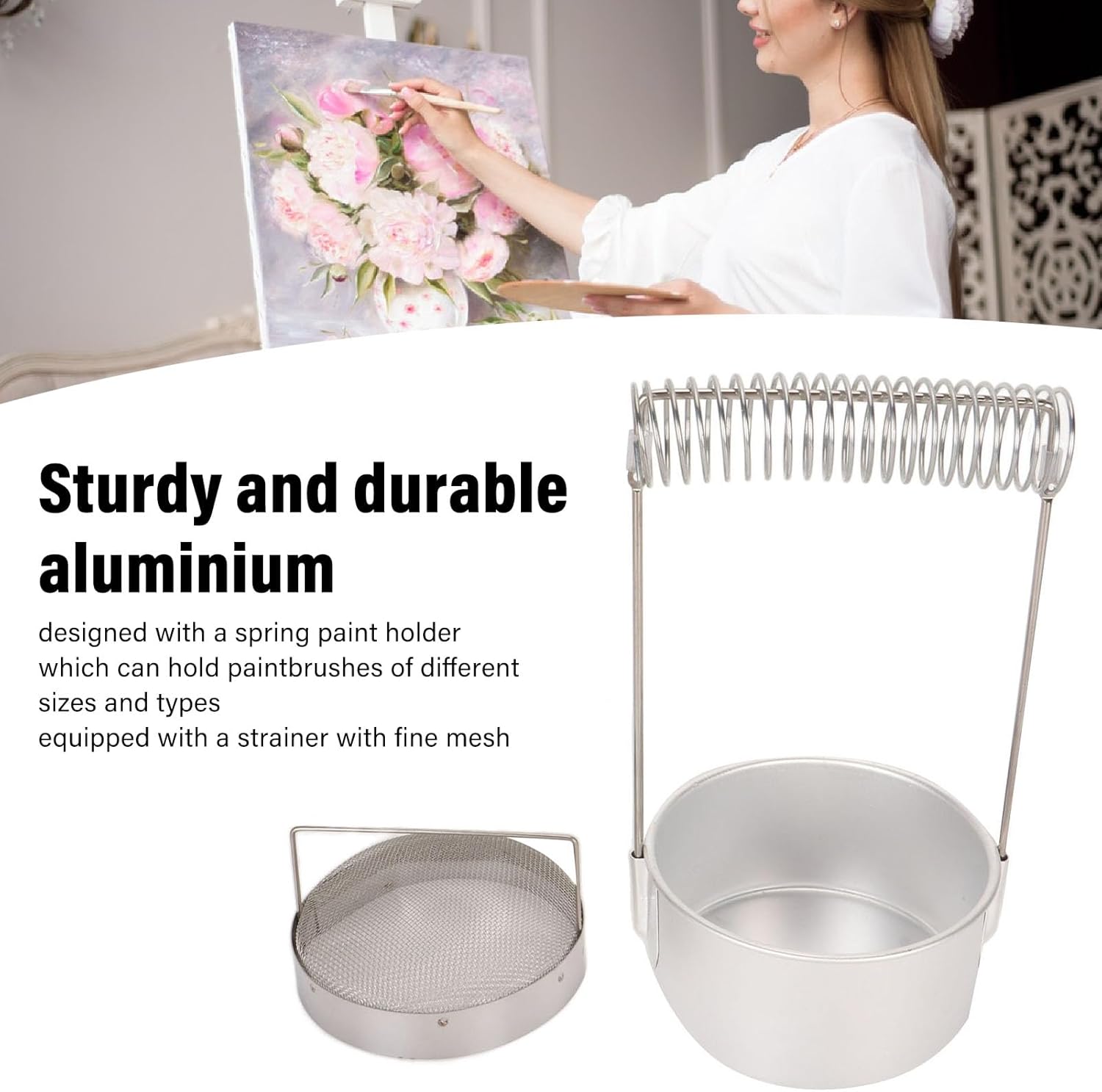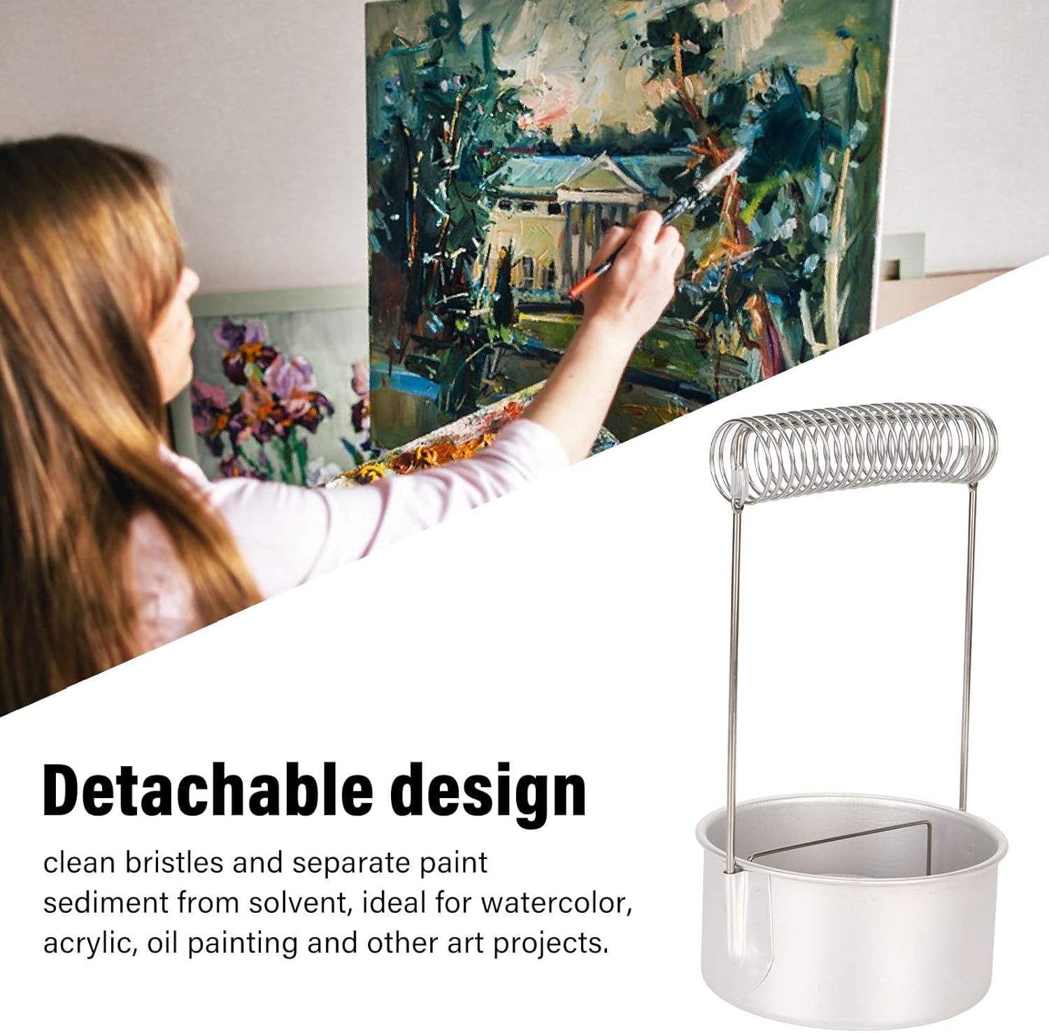 [Utilizzo versatile] raddoppia come supporto a pennello, ideale per acquerello, acrilico, pittura ad olio e altri progetti artistici. [Fine Fesh Fesh] pulisce la testa di pennello e separa i sedimenti di vernice dal solvente pulizia efficiente. [Design staccabile] Risparmia spazio, facile da trasportare e utilizza per comode sessioni di pittura. [Porta di vernice primaverile] mantiene i pennelli in ordine e secco, che ospitano varie dimensioni e . [Materiale in alluminio] garantisce la durabilità per l'uso duraturo.