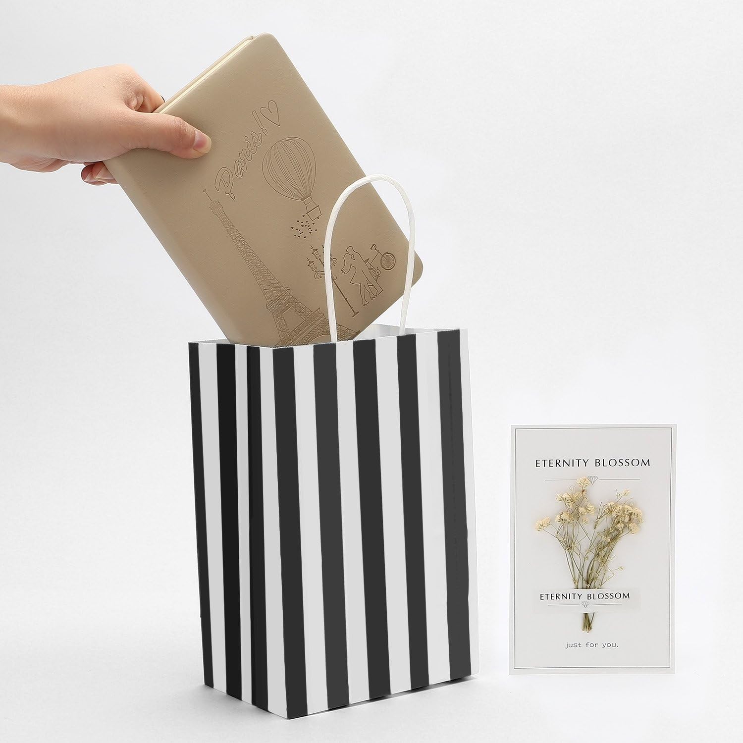 【Sacchetti piccoli di carta kraft da 25 pezzi】 Dimensioni: 14 x 8 x 21 cm. La confezione contiene 25 pezzi di sacchetti in carta rigata con manici. Ideale per caramelle, cioccolato, gioielli, piccole bottiglie per altri piccoli oggetti. 【Sacchetti regalo spessi】 I piccoli sacchetti regalo Ronvir sono realizzati in carta kraft ad alta densità da 120 GSM, che è più spessa e più resistente. Con maniglie rotanti ben ancorate e base ben sigillata. I sacchetti regalo in bianco e nero non sono facili da strappare. 【Crea i tuoi sacchetti regalo creativi】Con una superficie liscia, puoi disegnare quello che vuoi su di essa, o metterci sopra il logo adesivo, o decorarla con nastri, mettere etichette su di essa. È facile creare i tuoi sacchetti regalo speciali. Divertiti a realizzarlo. 【Sacchetti di carta Kraft ecologici】 Il sacchetto di carta kraft è riciclato e riutilizzabile. Nessun inquinamento del nostro ambiente. Ideale per compleanni, festival, Pasqua, Halloween, Natale, feste, shopping, vendita al dettaglio, matrimoni, anniversari o altre occasioni dei bambini. 【Piccoli sacchetti regalo multiuso】 I sacchetti di carta possono essere utilizzati per vari scopi. Sacchetti di carta ideali per lo shopping, compleanno, matrimonio, benvenuto, laurea, piccole imprese, Pasqua, Natale, Halloween, vacanze, feste, mostre di artigianato e così via.