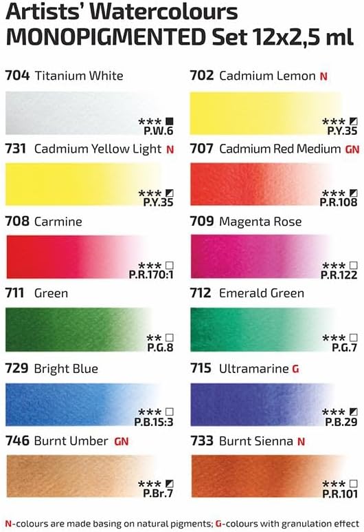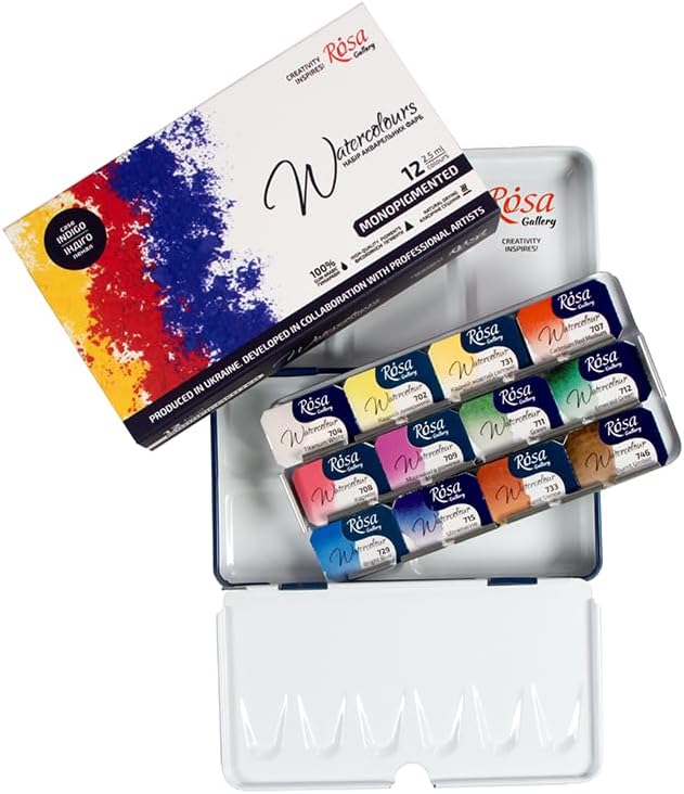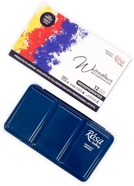 🇺 Orgogliosamente realizzato in Ucraina da un'azienda a conduzione familiare. Qualità europea extra fine. 🌟 12 colori profondi e intensi in padelle piene da 2,5 ml, custodia in metallo riutilizzabile in colore indaco. ✨ Facile da usare, non tossico, monocromatico pigmentato che consente di ottenere miscele perfettamente pulite e sperimentare il colore. Realizzato in collaborazione con artisti professionisti e comunità creative. Ottima scelta per artisti professionisti e per i principianti. Colori intensi, profondi e vivaci.