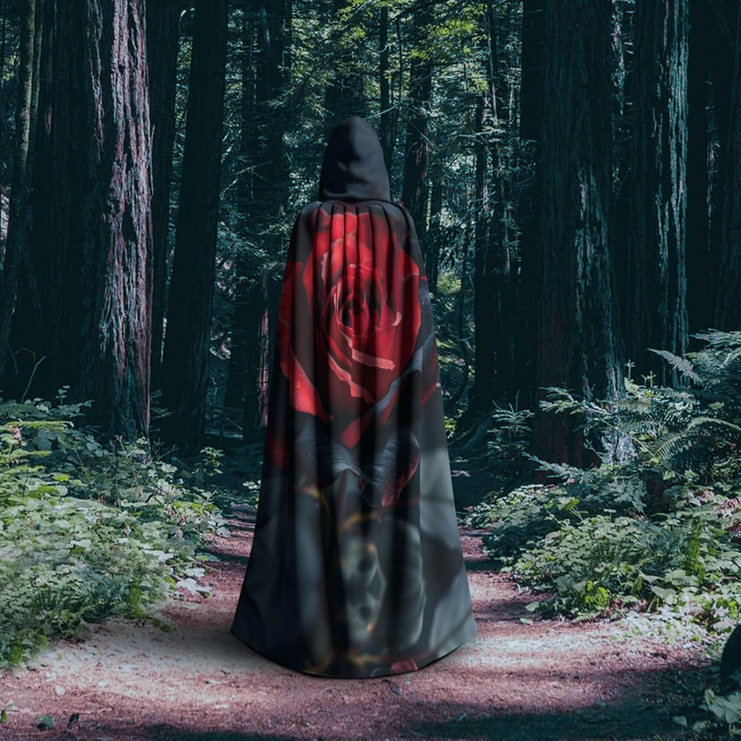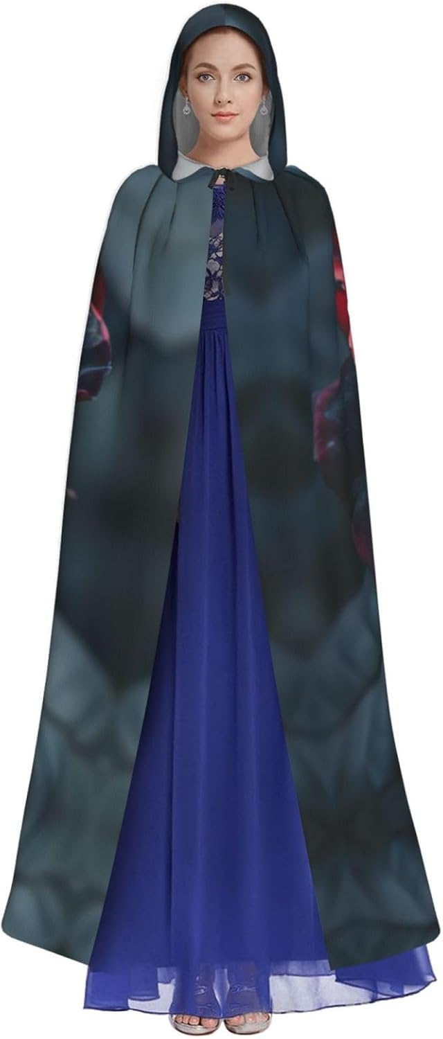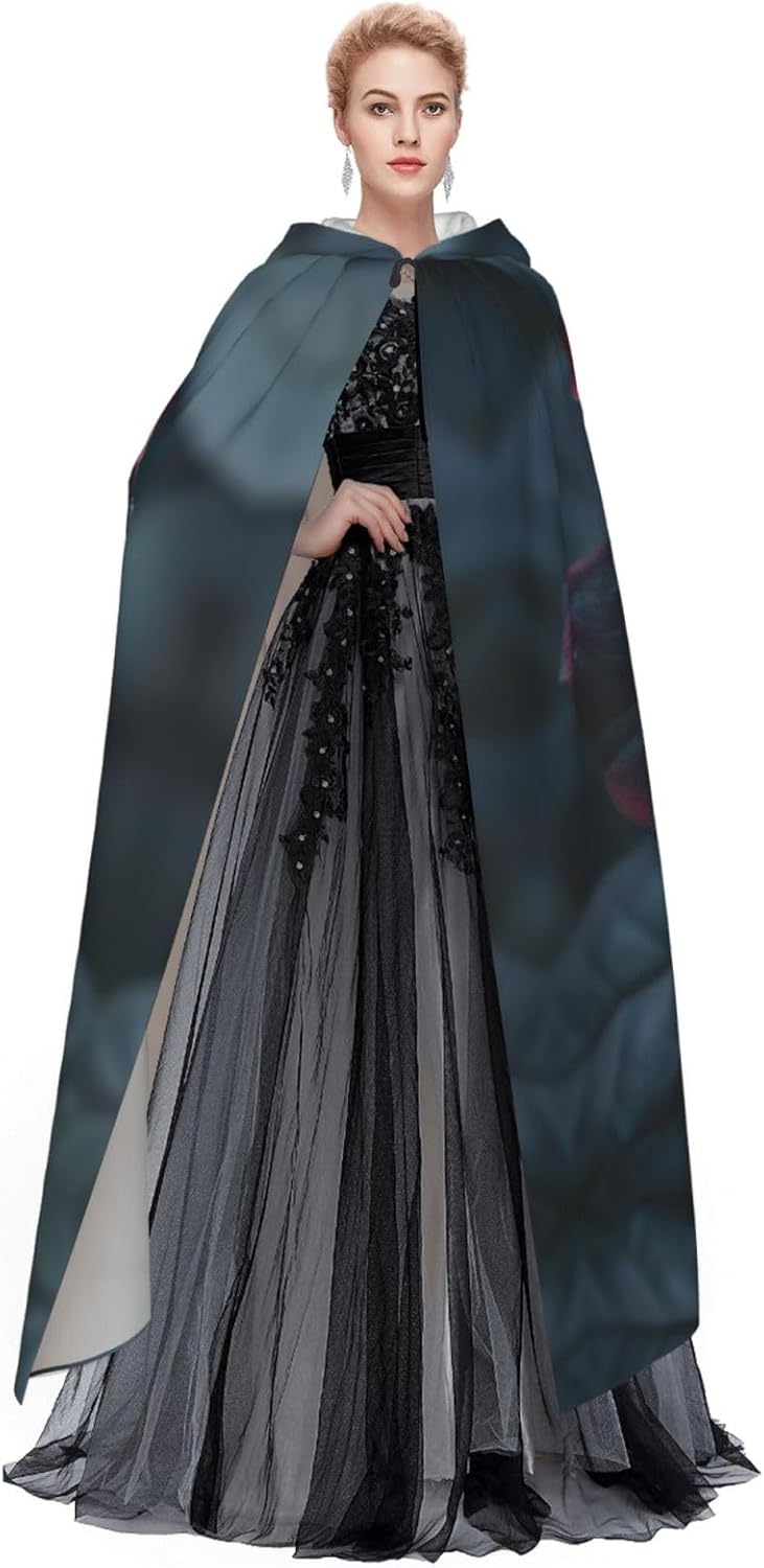 Rosso e nero rosa Stampa Unisex Con Cappuccio Cape per Adulti Halloween Full Length Mantello Uomo Mantello con Cappuccio Costume