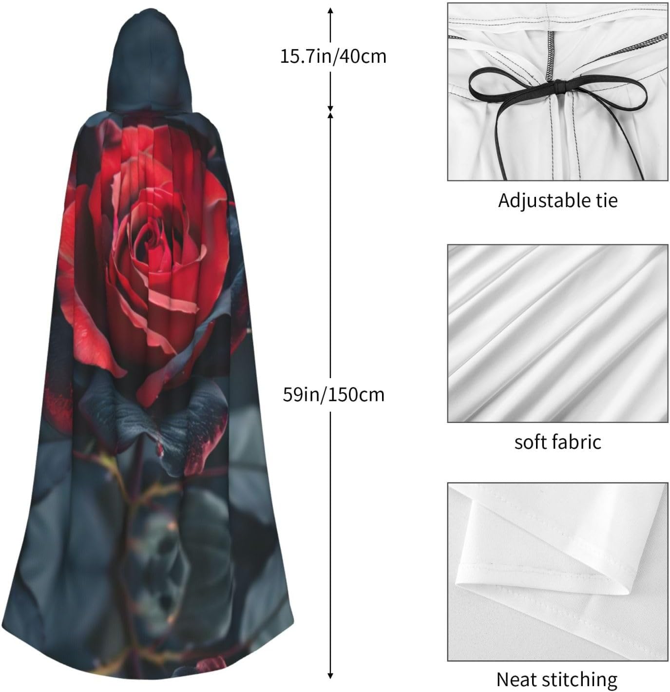 Ideale per eventi speciali, costume da supereroe, riunioni di famiglia, interazione scolastica genitore-figlio, chiesa, vacanze, serate tra ragazze; gite, feste, cosplay, spettacoli, spettacoli di magia e altri eventi. Il cappuccio oversize è abbastanza grande e profondo da coprire la testa e il viso. Facile da pulire e asciugare rapidamente.