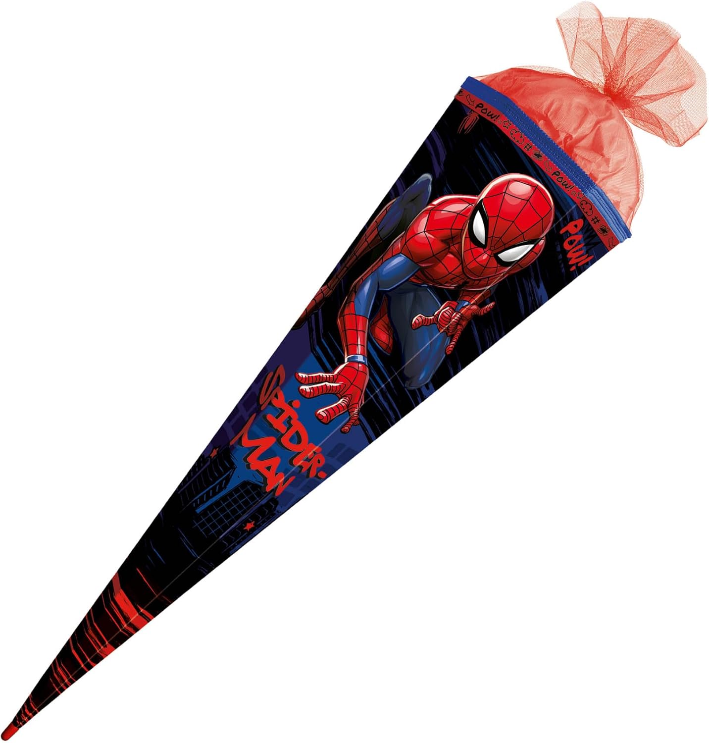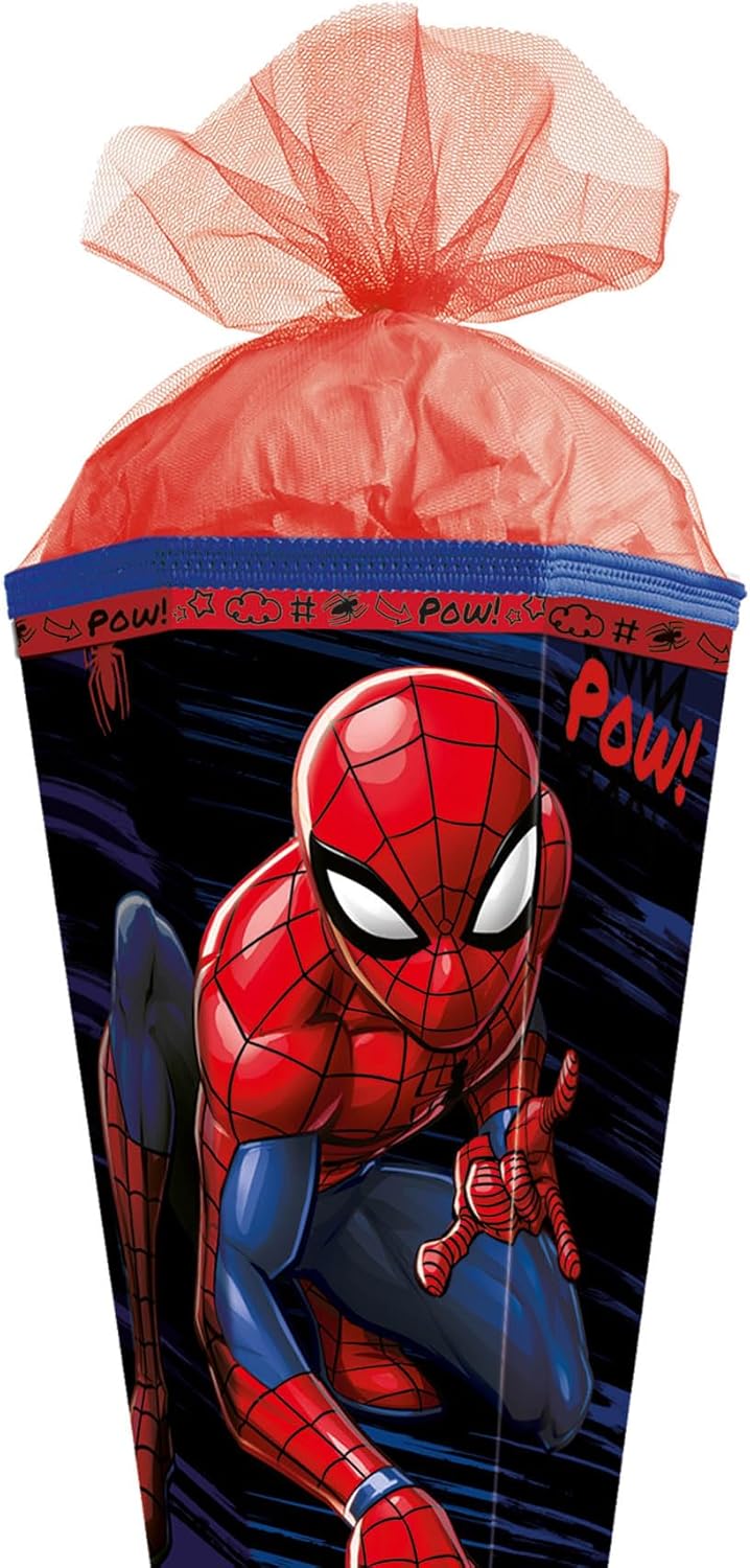 Cono scolastico di alta qualità con motivo Marvel Spider-Man. Il cono scuola è alto 85 cm, esagonale, ROSSO (H) - pizzo. La chiusura è in tulle rosso con un bordo speciale nel fantastico design coordinato di Spider-Man per tutti i fan dei supereroi