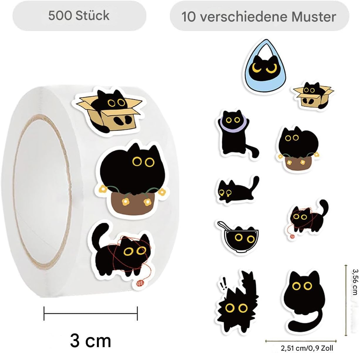 Adorabili disegni di gattini neri: ogni adesivo presenta un giocoso gatto nero cartone animato con pose espressive ed emozioni divertenti. Ideale per gli amanti dei gatti, i bambini e chiunque ami la cancelleria stravagante. Enorme rotolo da 500 adesivi: con 500 adesivi in ogni rotolo, avrai più che sufficienti facce di gatti carini per decorare diari, agende, buste, album di ritagli e altro ancora. Ottimo rapporto qualità-prezzo per l'uso quotidiano o per la condivisione con gli amici. Comodità di stacca e incolla: questi adesivi sono disponibili in un pratico formato in rotolo e sono facili da staccare e applicare. Il forte adesivo garantisce che aderiscano bene alla carta, al metallo e alla maggior parte delle superfici lisce. Decorazione multiuso: usali per sigillare buste, decorare bottiglie d'acqua, laptop, quaderni, custodie per telefoni, biglietti di auguri o lavori artigianali. Aggiunge un tocco divertente e felino a tutto ciò su cui li attacchi. Estetici ed eleganti: con un tema trendy in bianco e nero e uno stile cartoon, questi adesivi si adattano perfettamente a diari e album minimalisti o a tema, aggiungendo personalità senza ingombri.