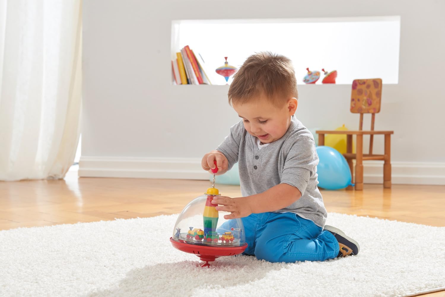 TOP GIOCO CON FERROVIA: top per bambini ideale per bambini dai 18 mesi in su. Nella trottola elettrica, il treno viaggia lungo uno splendido paesaggio mentre ruota ed emette rumori di treno. L'apertura della barriera si apre e si chiude. BATTERIE INCLUSE NELLA CONSEGNA: Nella trottola per bambini e neonati sono incluse due batterie AA. Basta inserirlo e il tuo piccolo potrà far muovere il treno. OTTIMO PER LA COORDINAZIONE OCCHIO-MANO: la trottola promuove le capacità motorie. Guidando la trottola per bambini con movimenti delle mani e seguendo il treno con gli occhi, i bambini allenano la coordinazione delle mani e degli occhi DESIGN AMOREVOLE: il panorama che attraversa il treno nella trottola è colorato e vario e progettato con attenzione ai dettagli GRANDE IDEA REGALO PER BAMBINI: Un bel regalo per i bambini che piacerà sia alle ragazze che ai ragazzi. Perfetto per un compleanno, Natale o semplicemente come sorpresa per il tuo piccolo