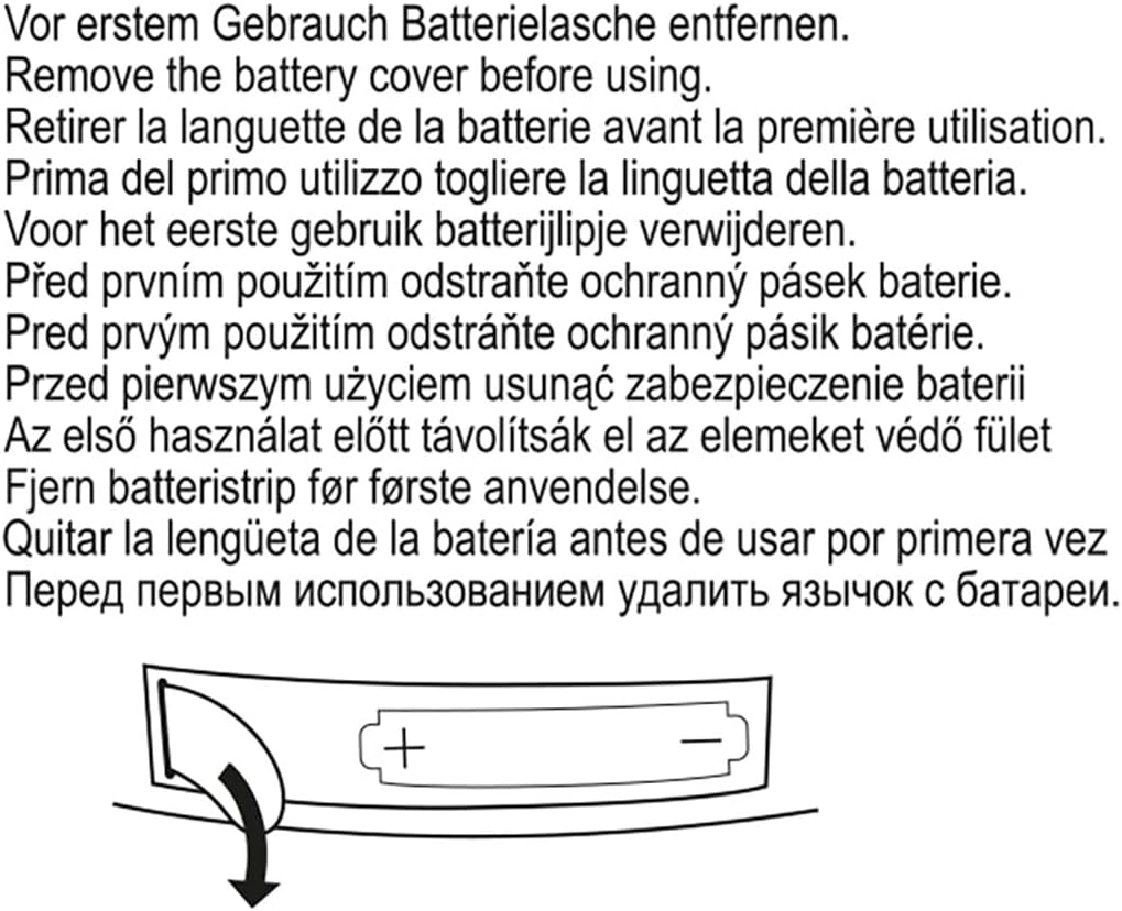 | Batterien | 2 AA Batterien erforderlich (enthalten). |